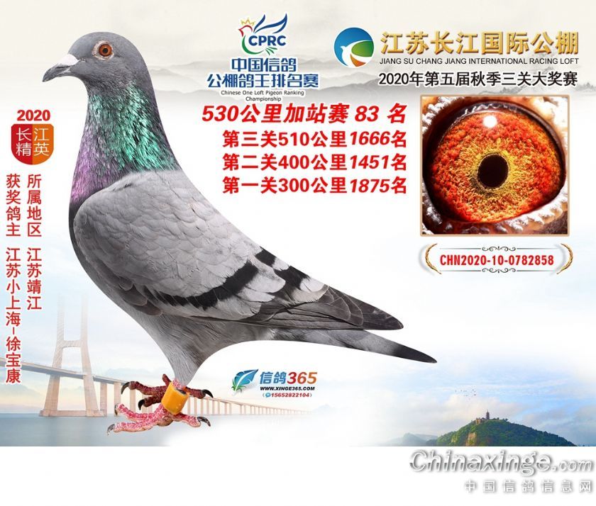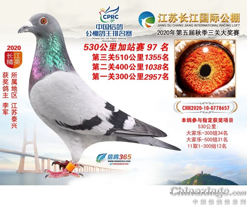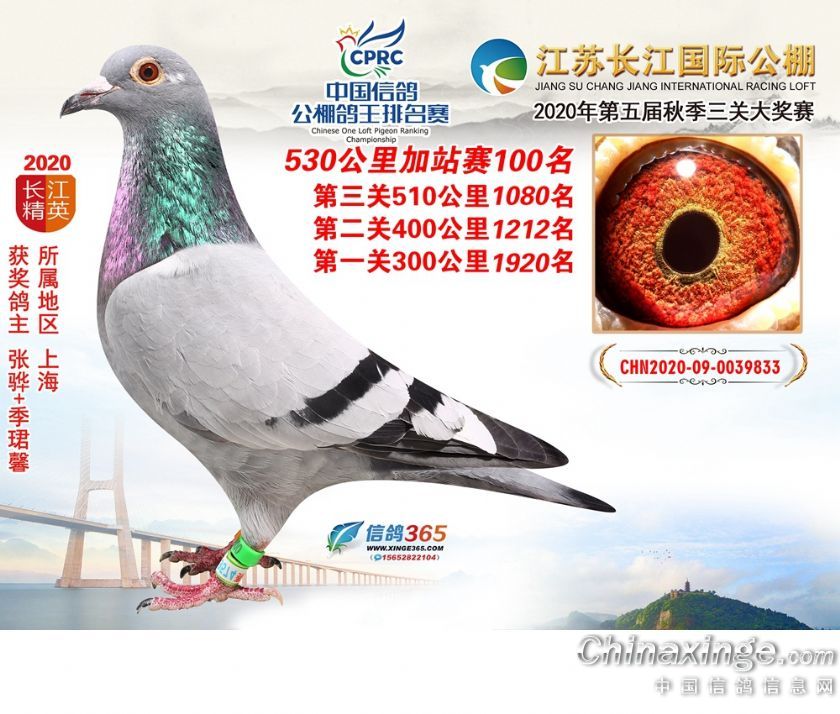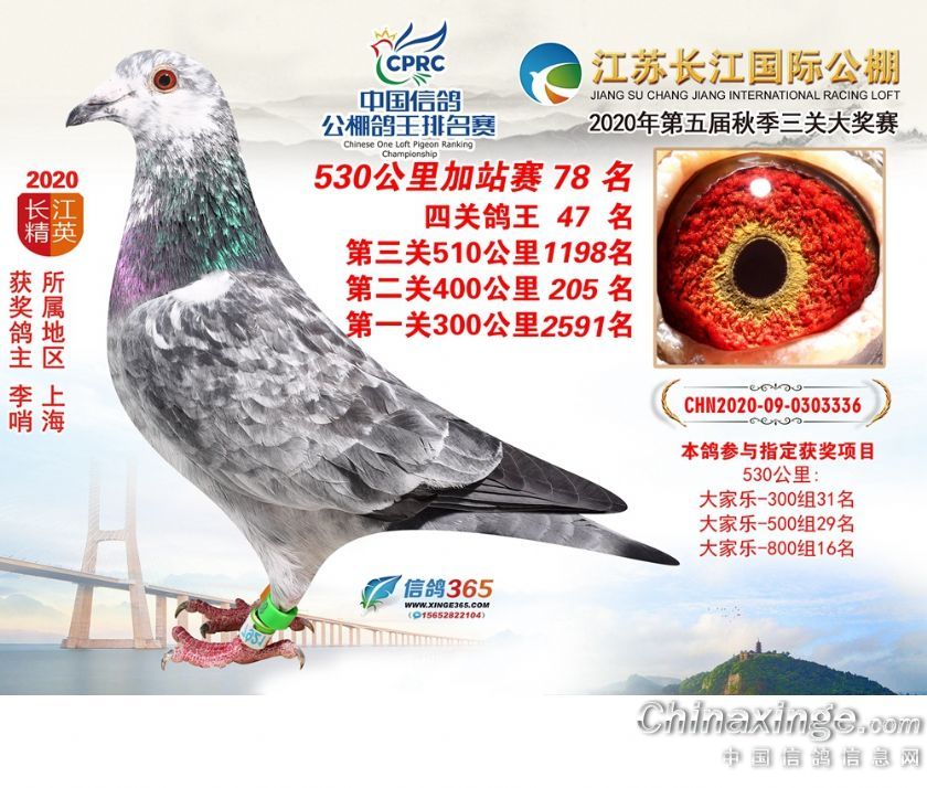 作品说明: 江苏长江公棚2020年530公里加站赛获奖鸽欣赏76-100名