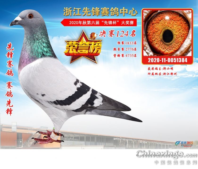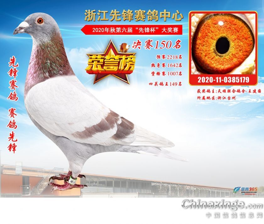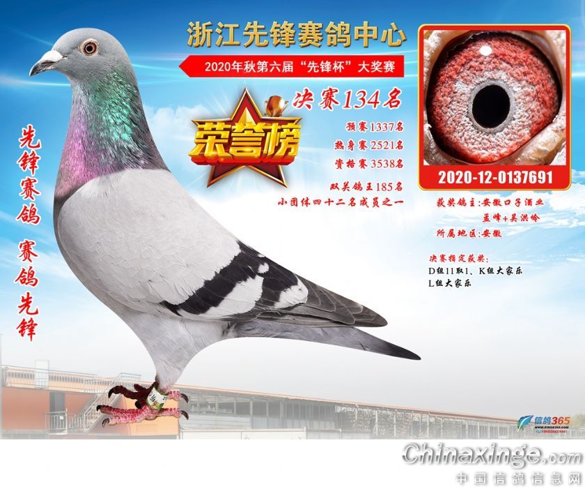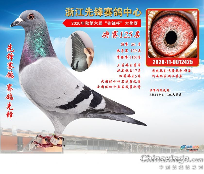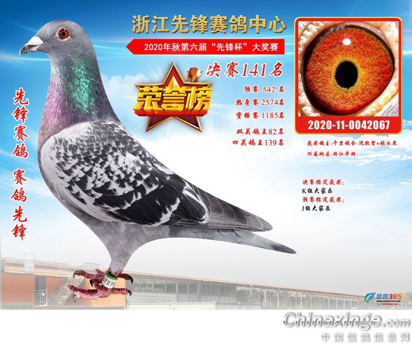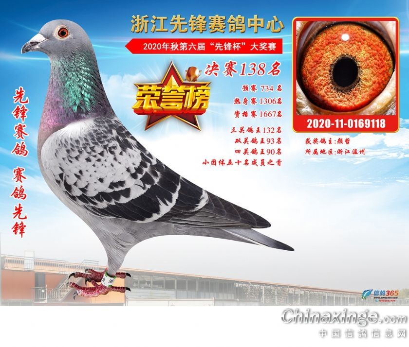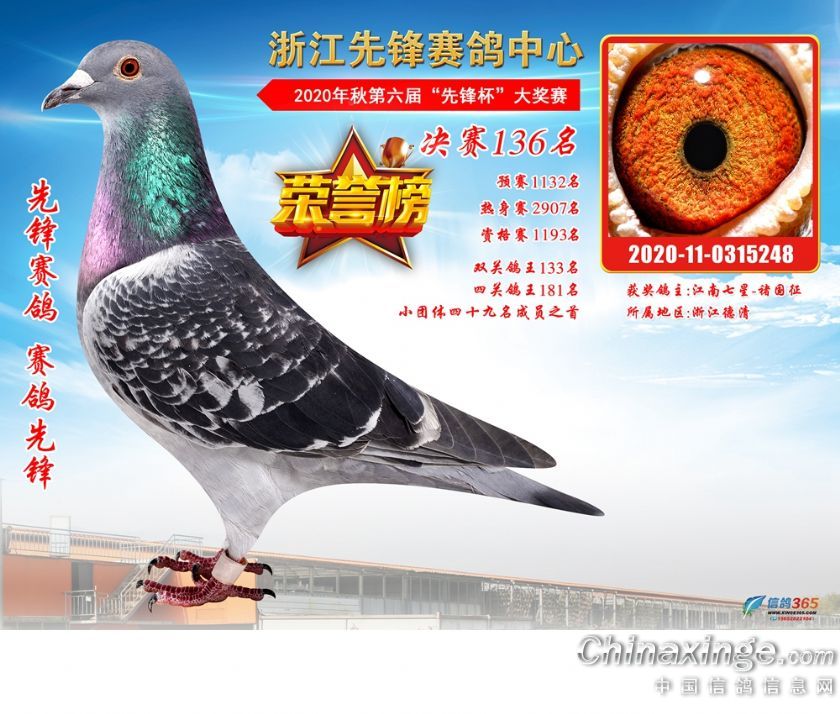 浙江先锋赛鸽中心2020年第六届决赛获奖鸽121-150名