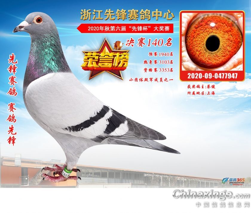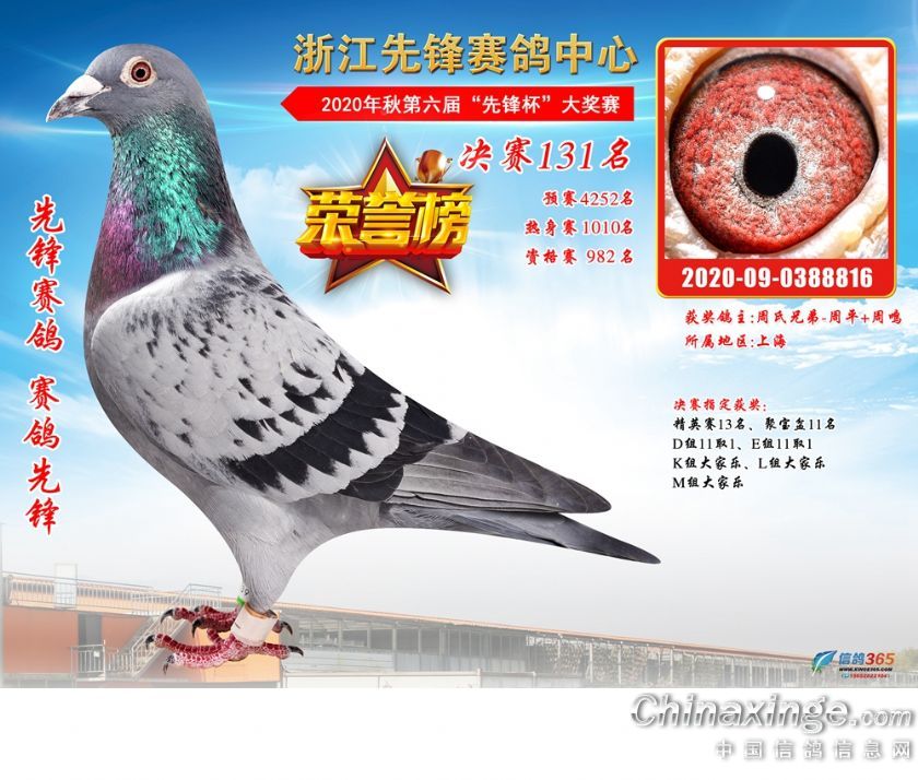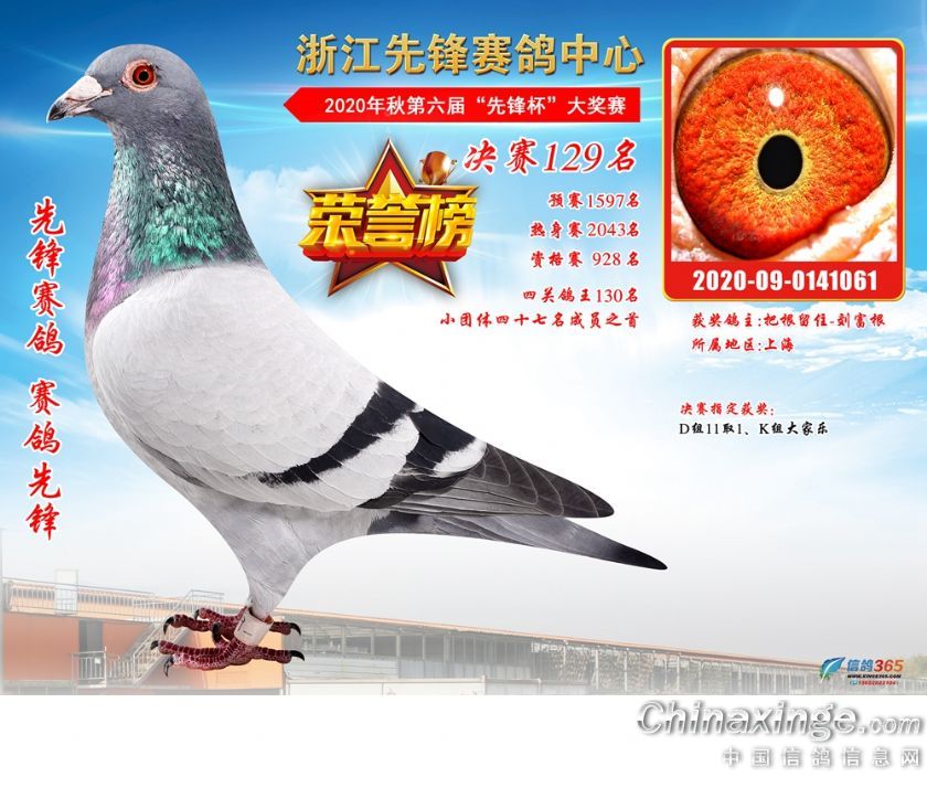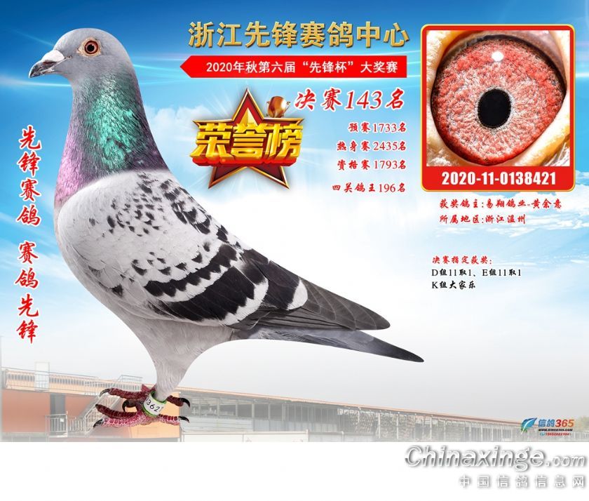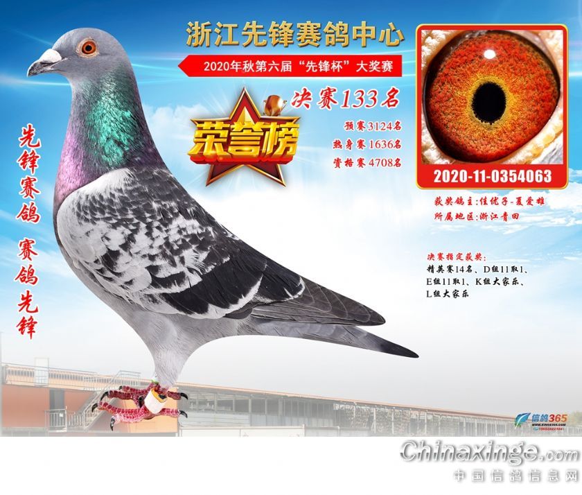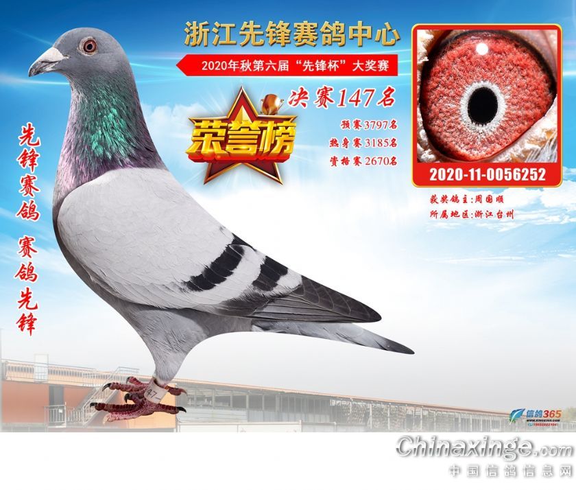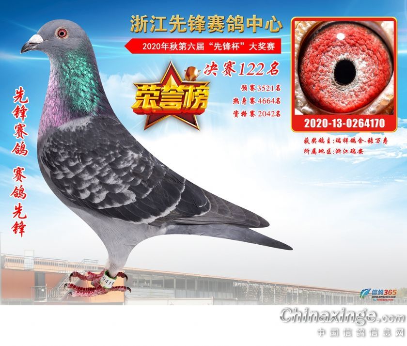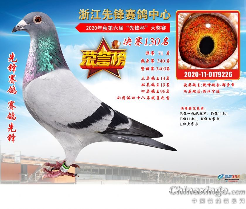 浙江先锋赛鸽中心2020年第六届决赛获奖鸽121-150名