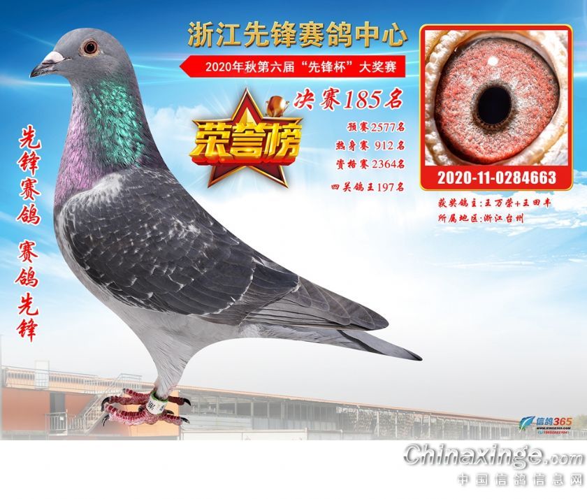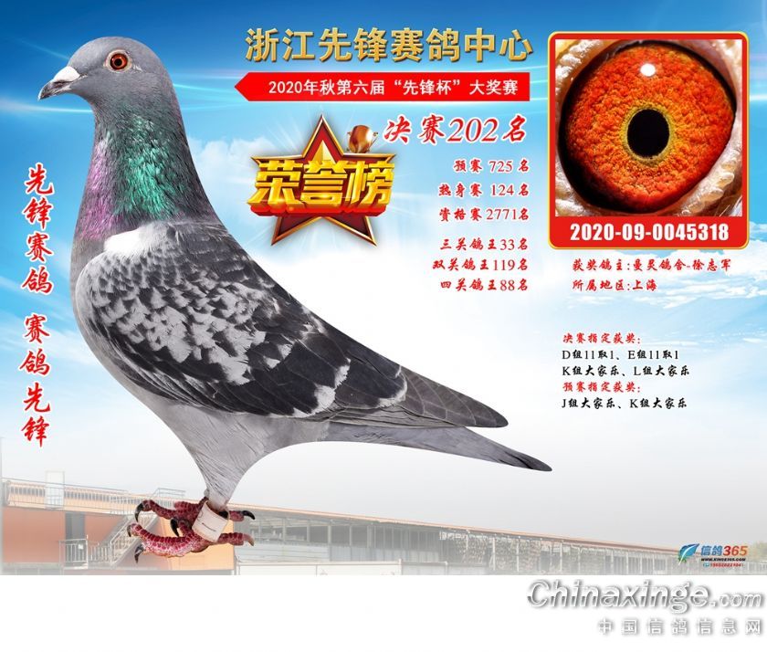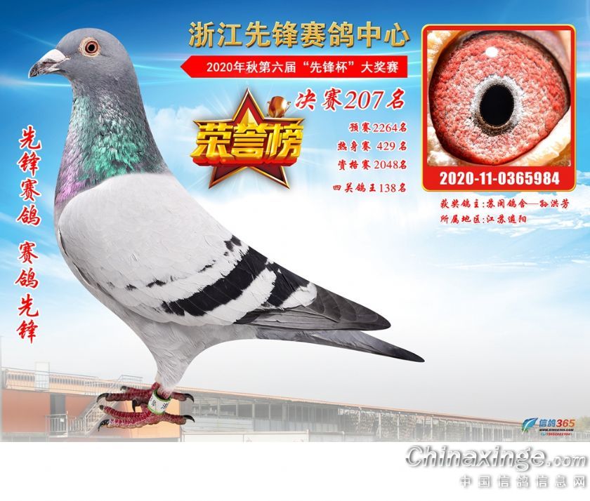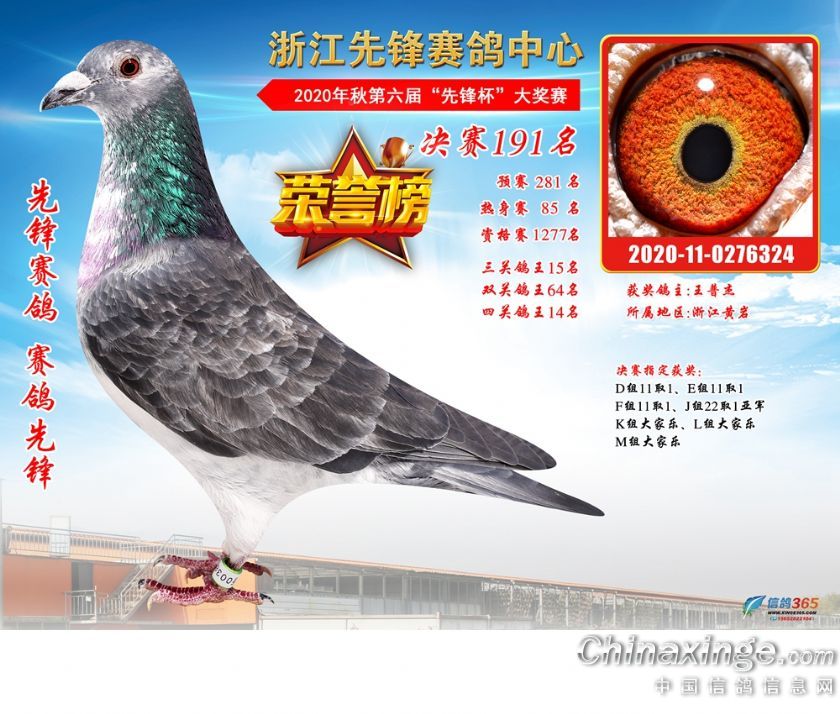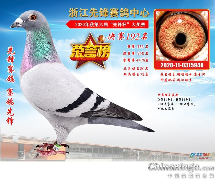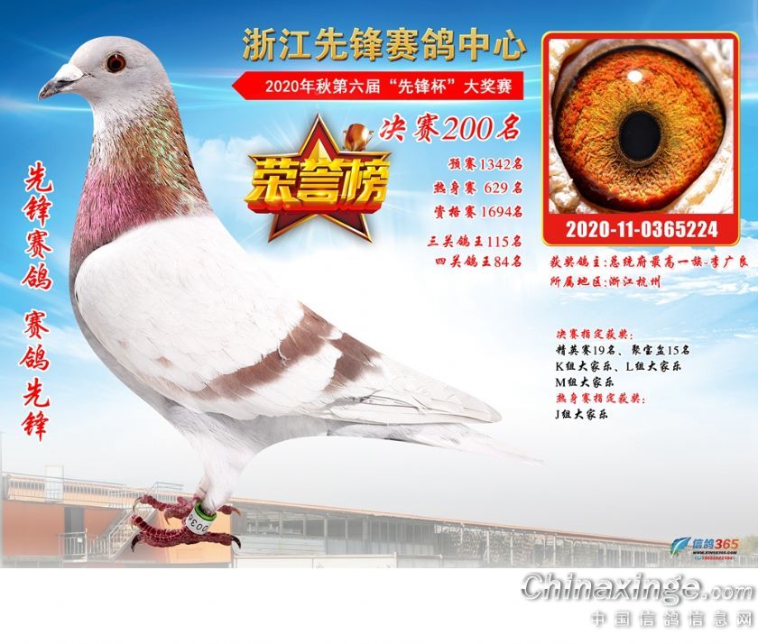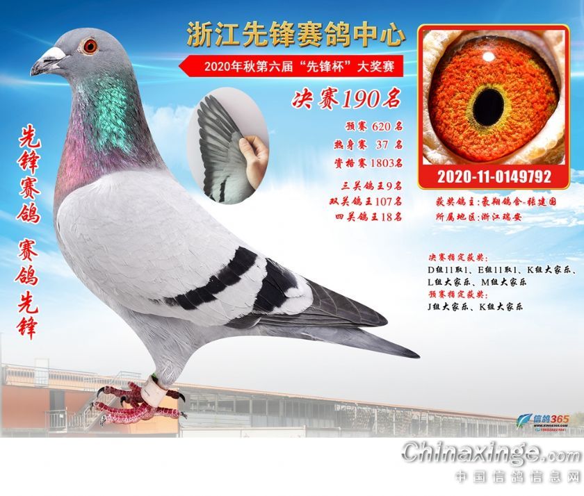 浙江先锋赛鸽中心2020年第六届决赛获奖鸽181-210名
