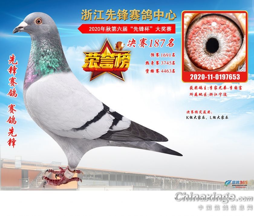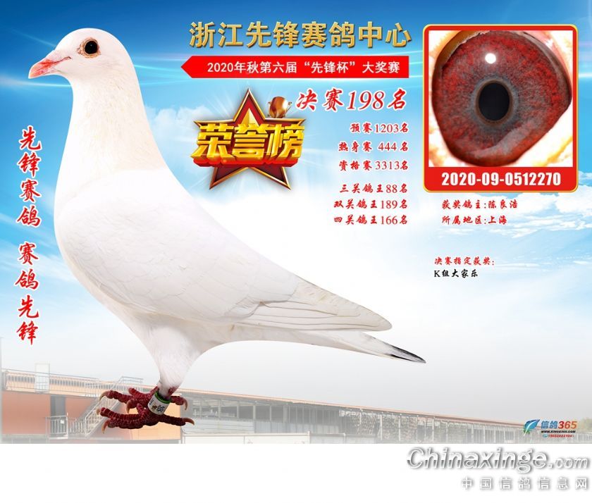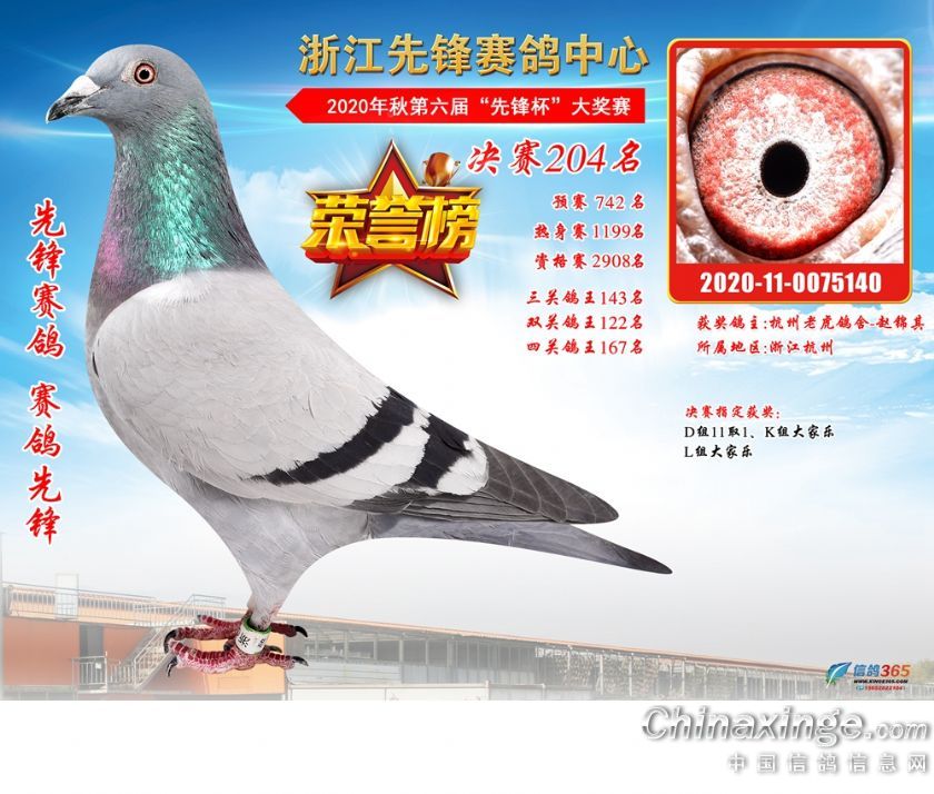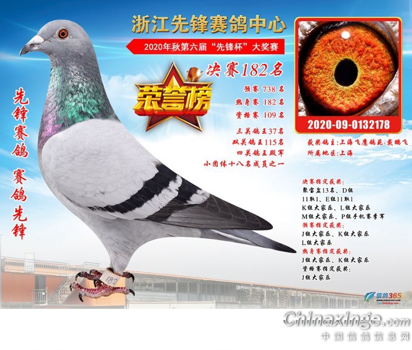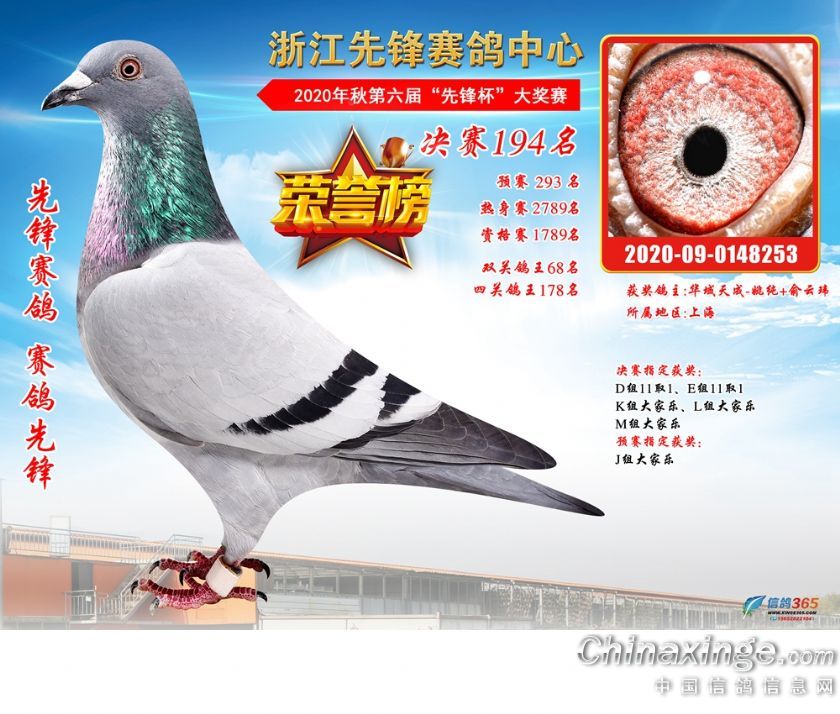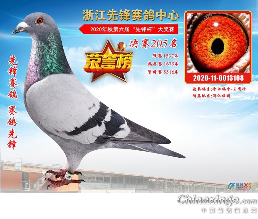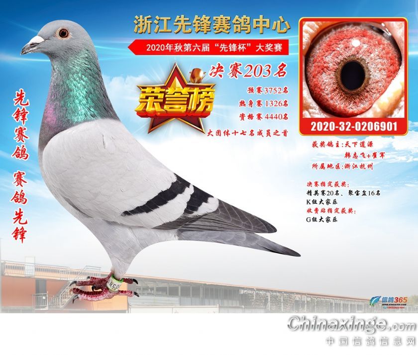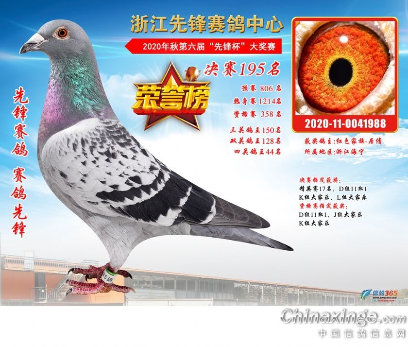 浙江先锋赛鸽中心2020年第六届决赛获奖鸽181-210名
