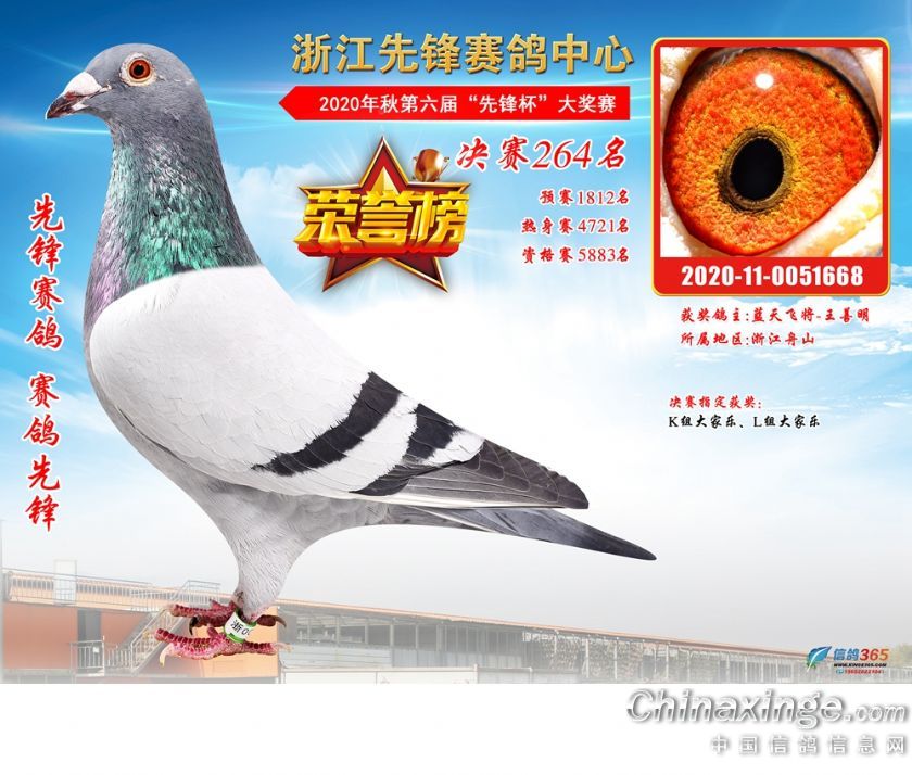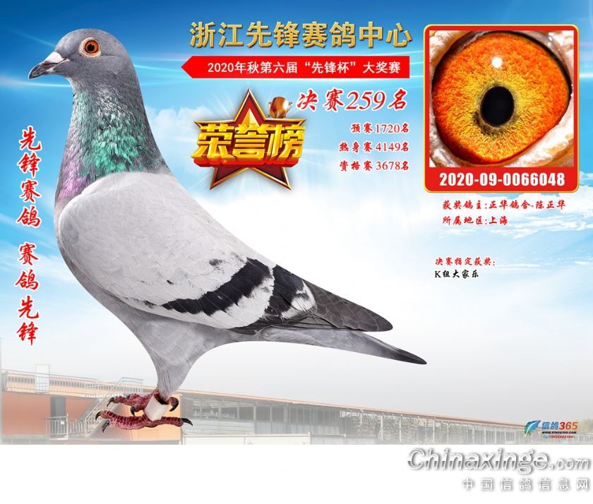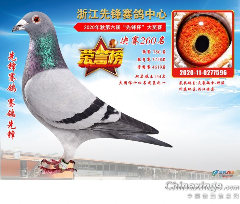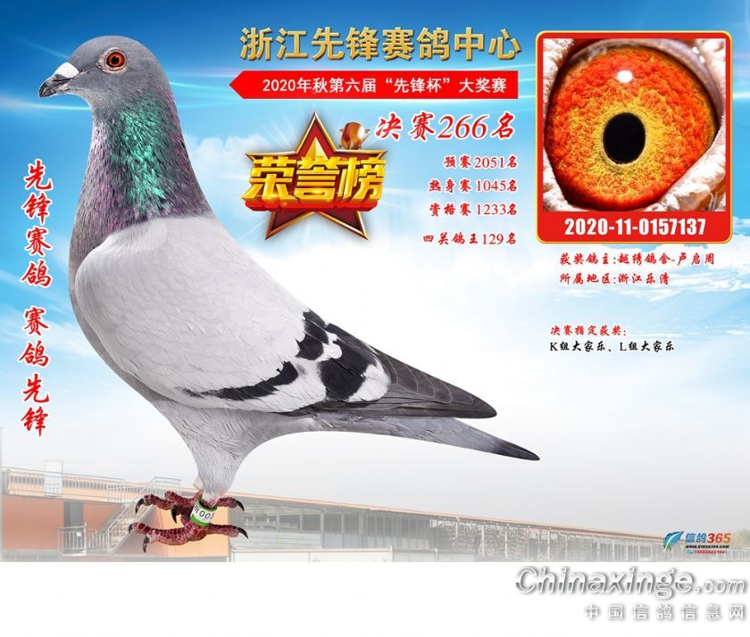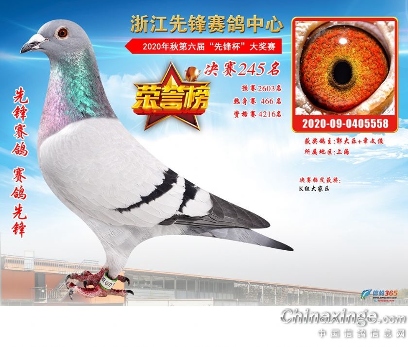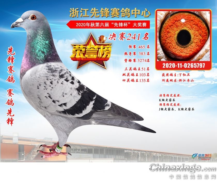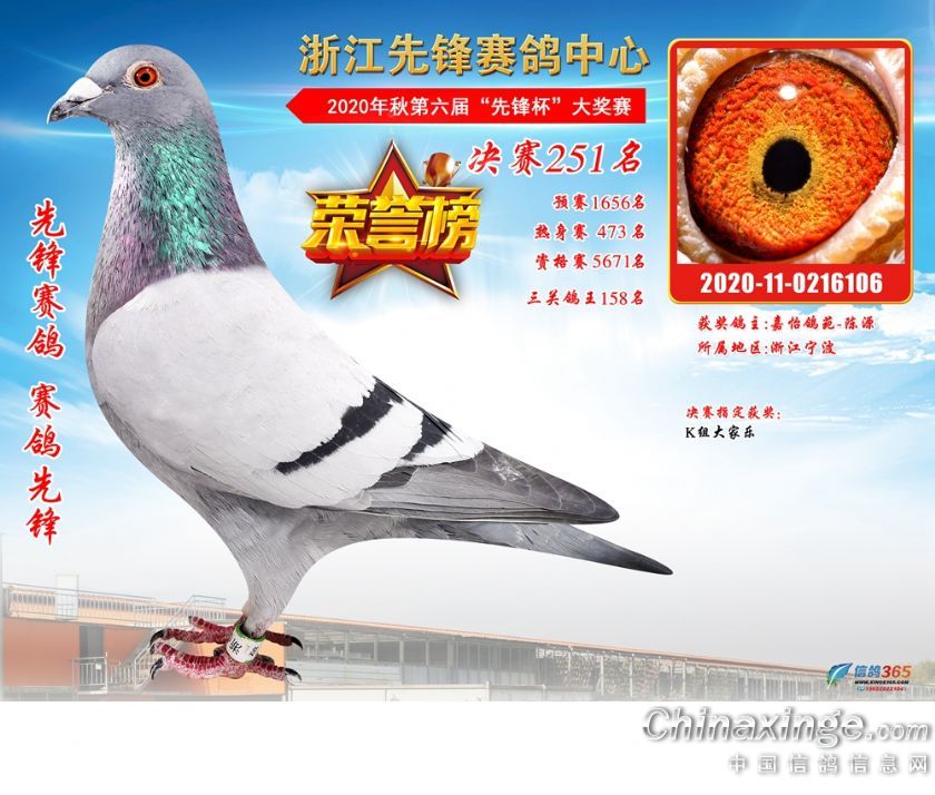 浙江先锋赛鸽中心2020年第六届决赛获奖鸽241-270名