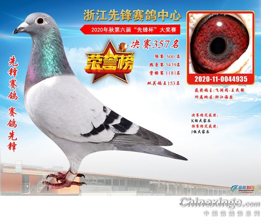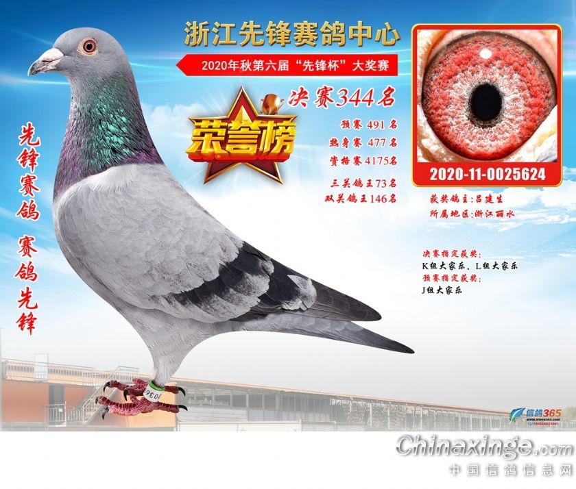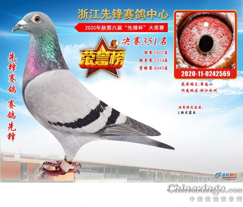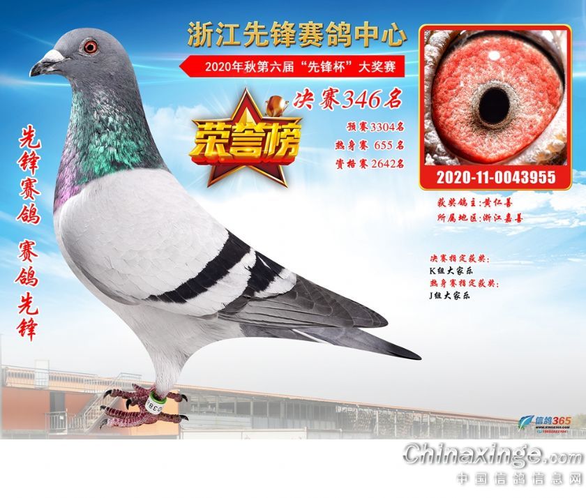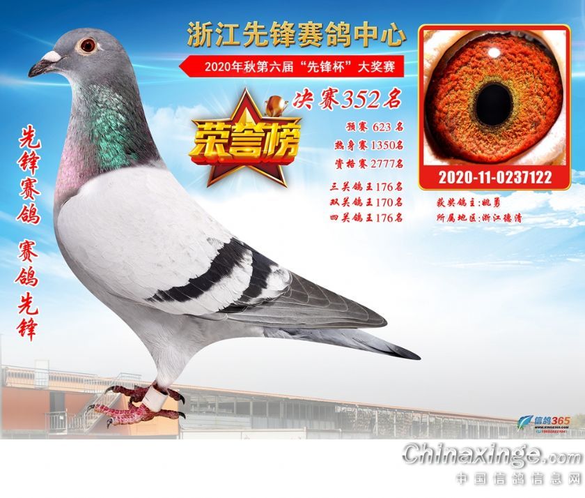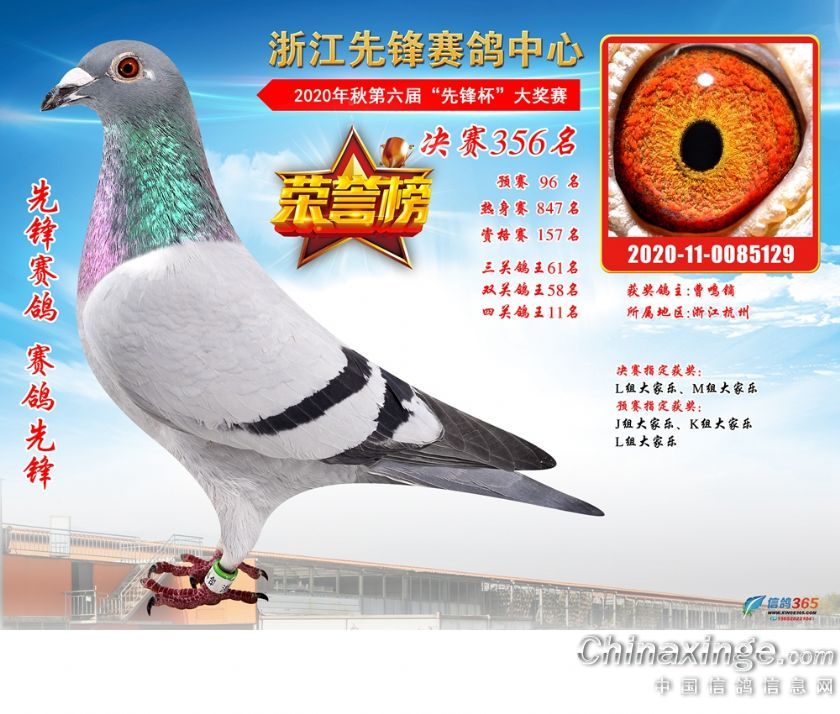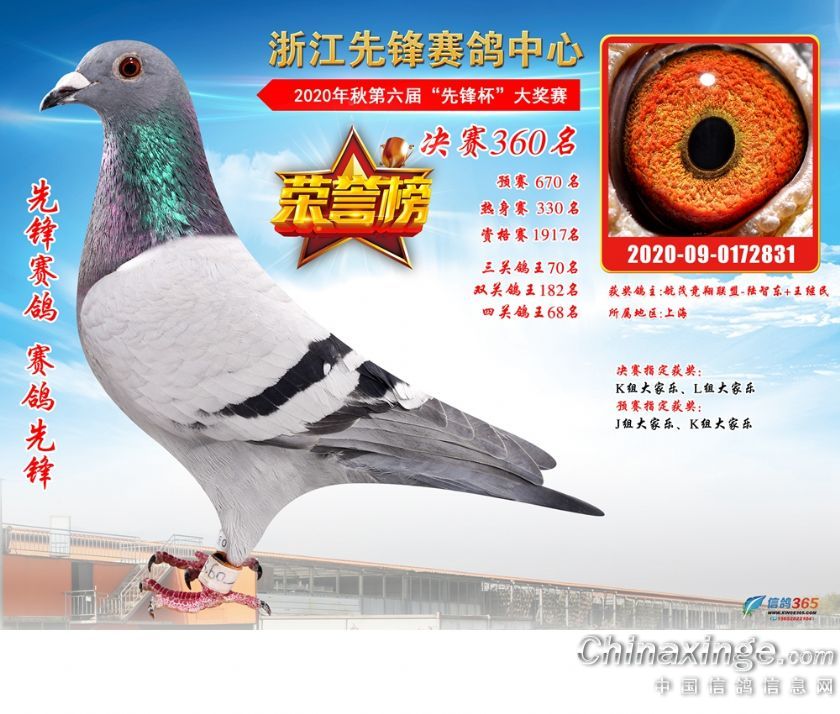 浙江先锋赛鸽中心2020年第六届决赛获奖鸽331-360名