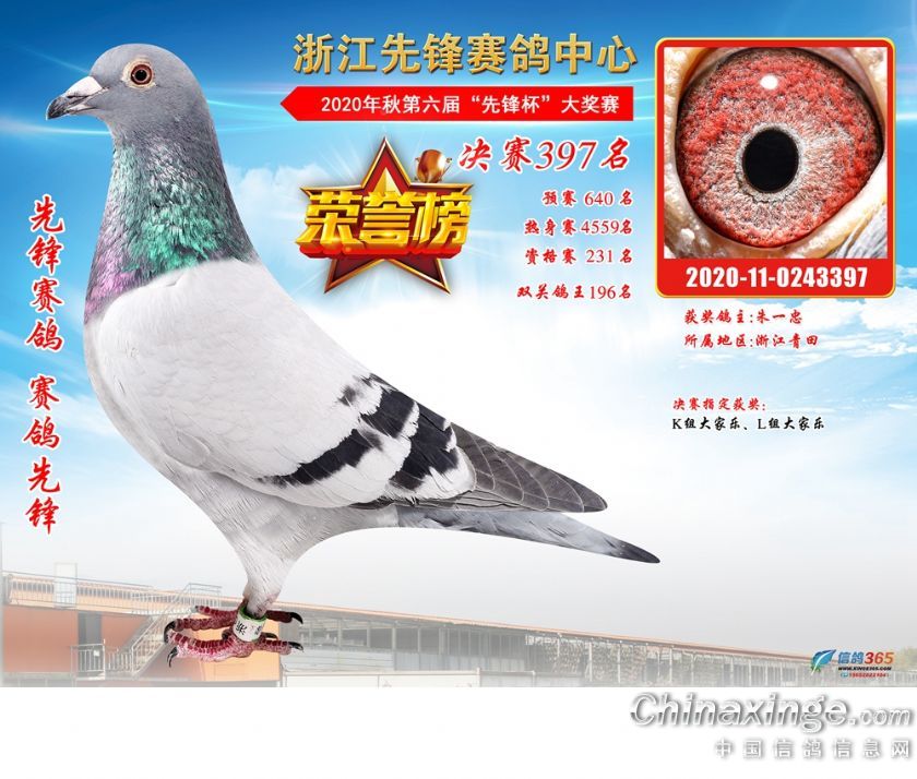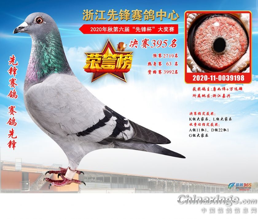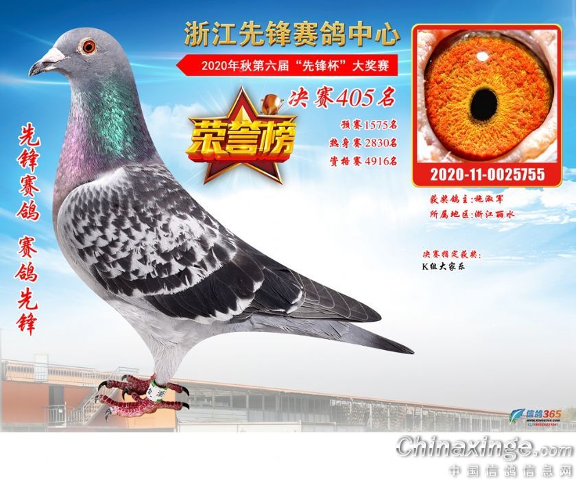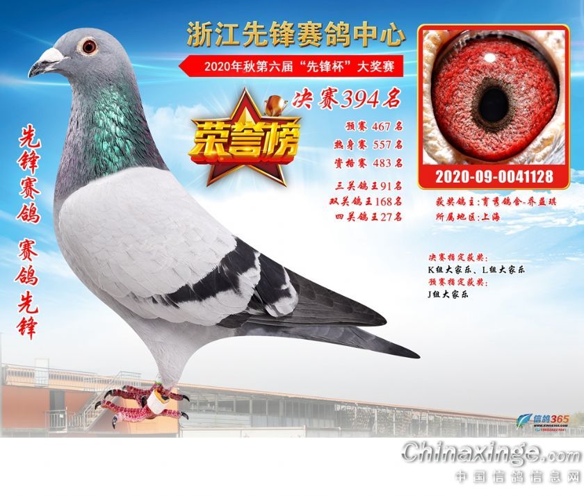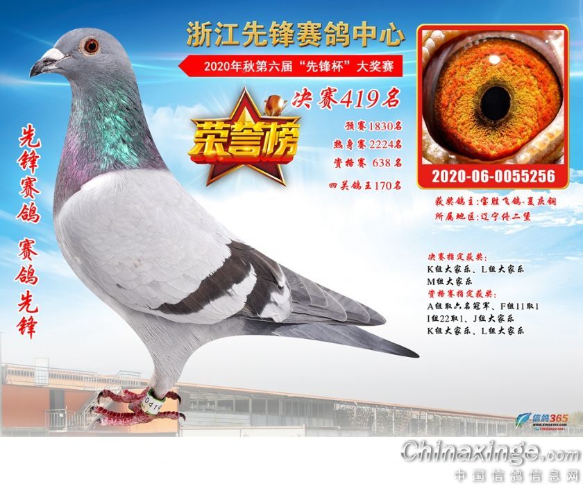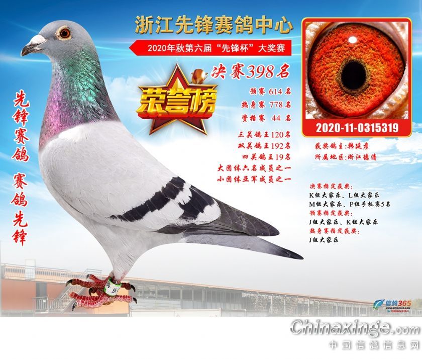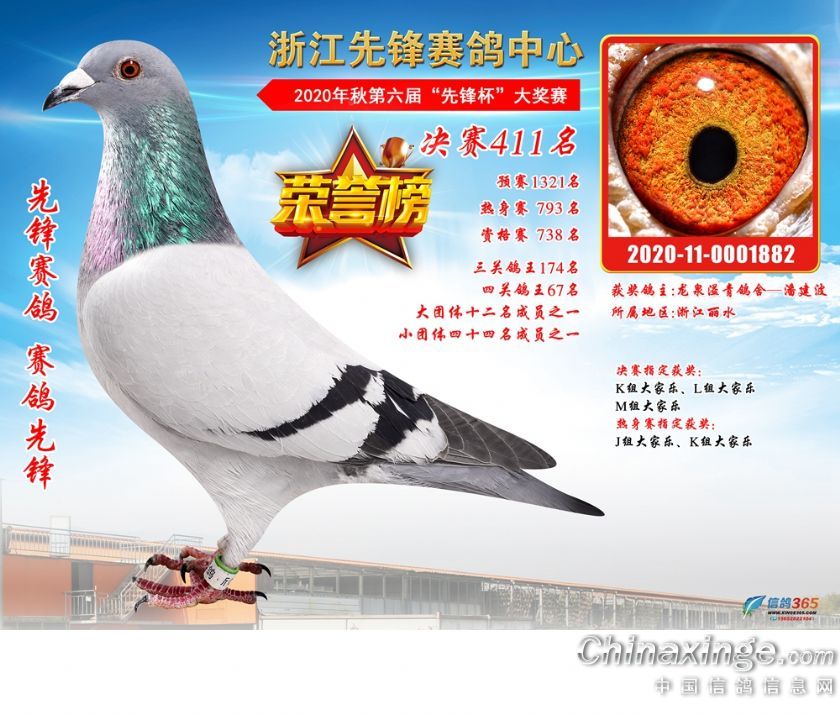 浙江先锋赛鸽中心2020年第六届决赛获奖鸽391-420名