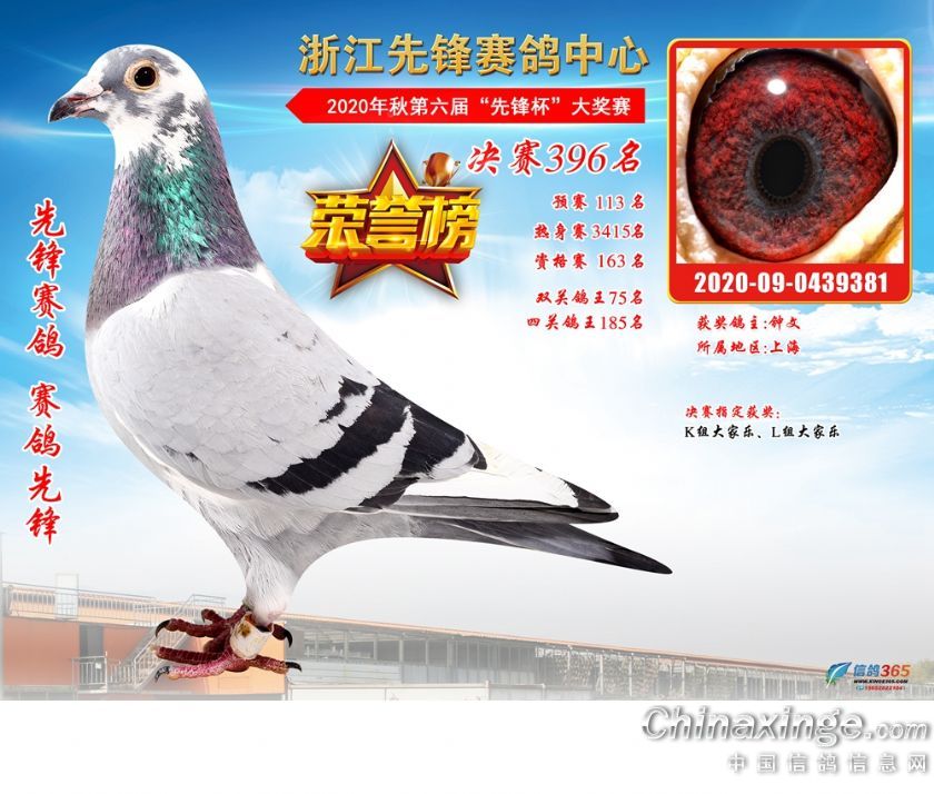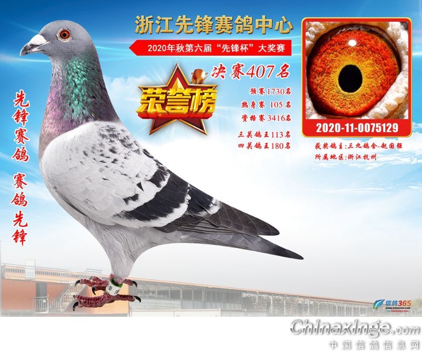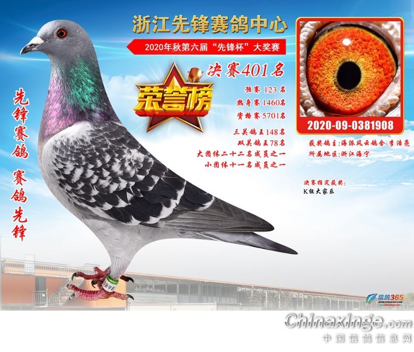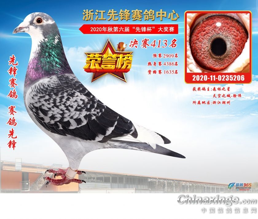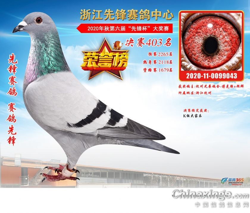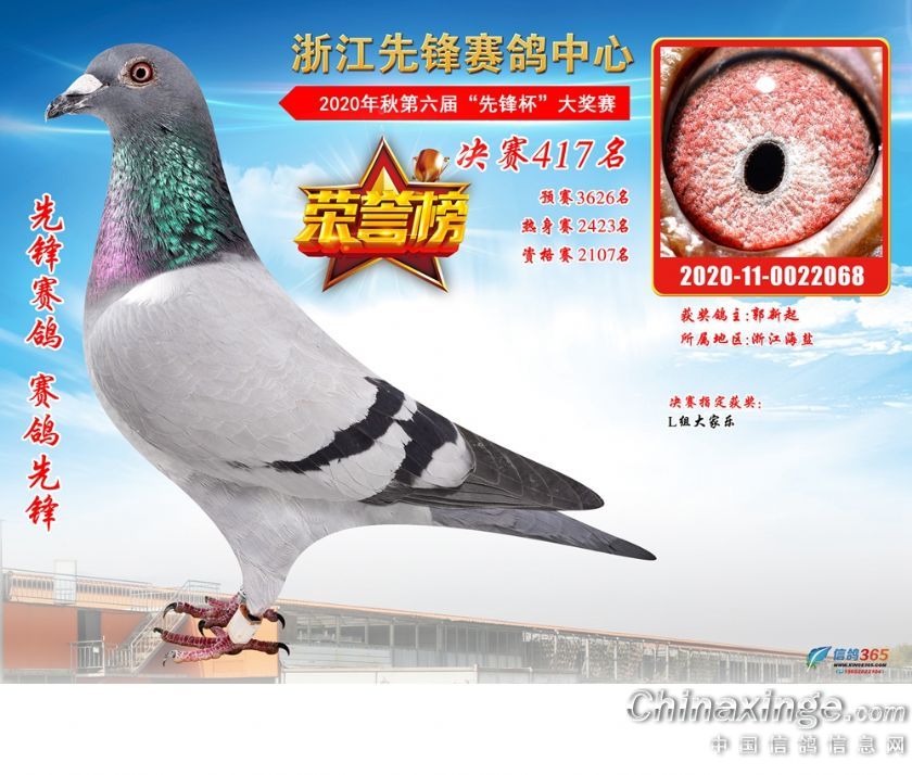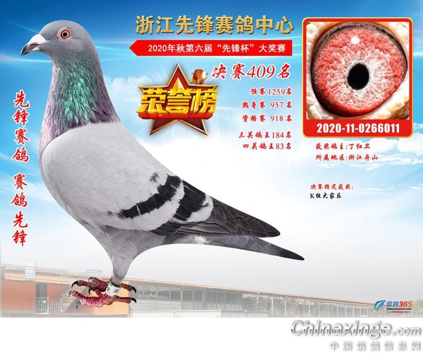 浙江先锋赛鸽中心2020年第六届决赛获奖鸽391-420名