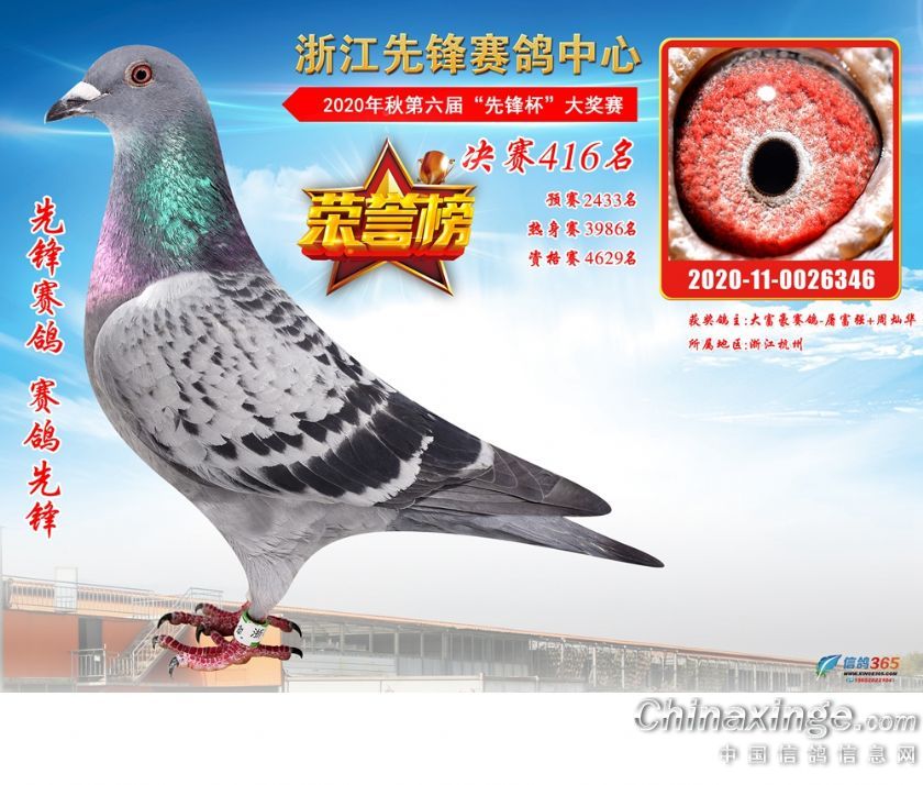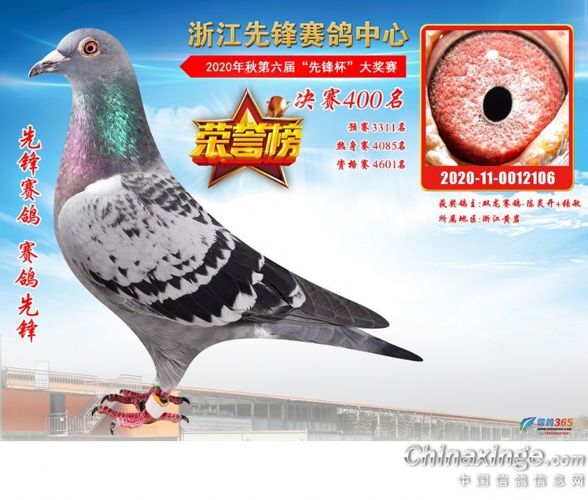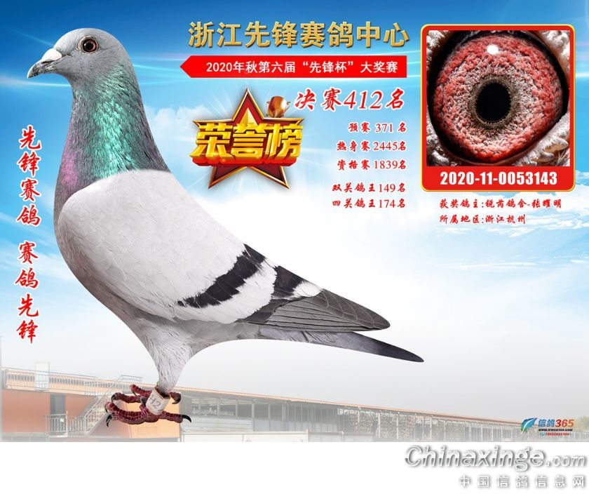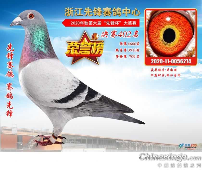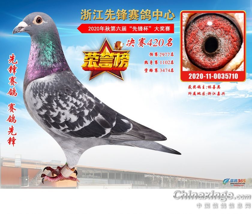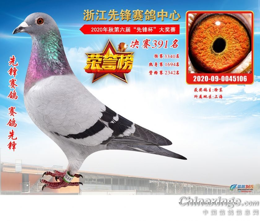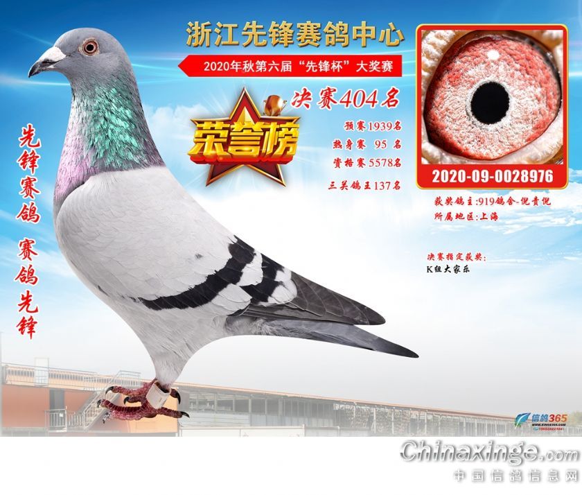 浙江先锋赛鸽中心2020年第六届决赛获奖鸽391-420名