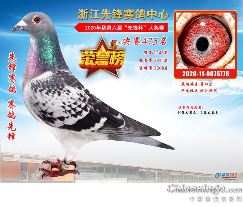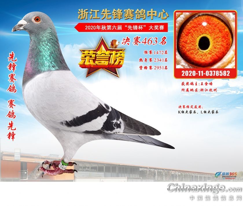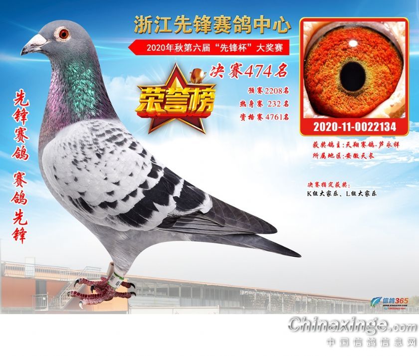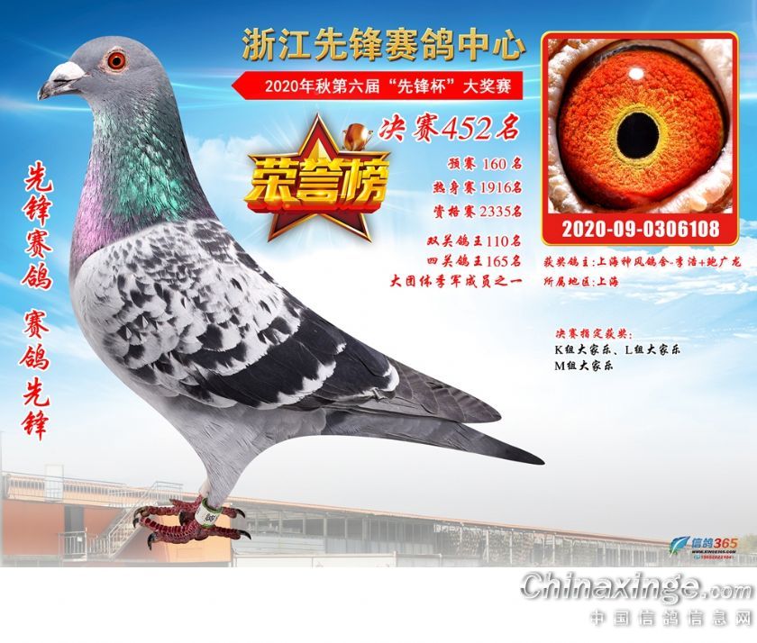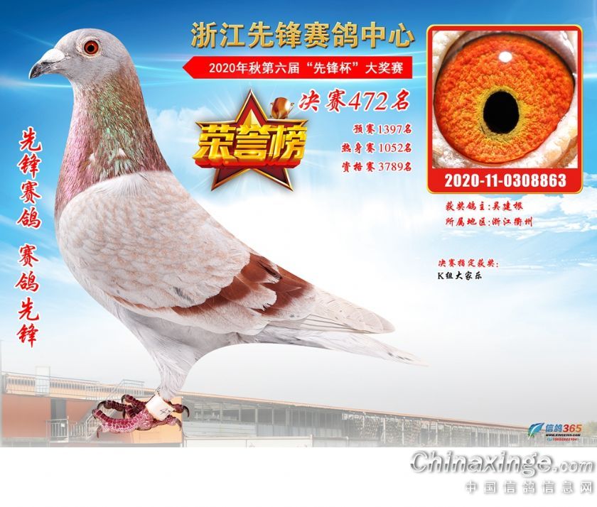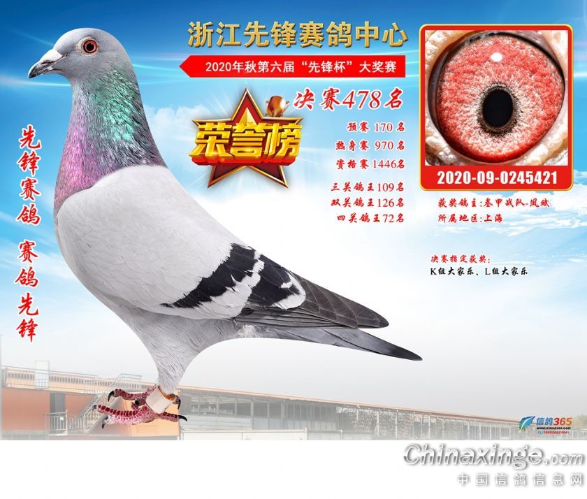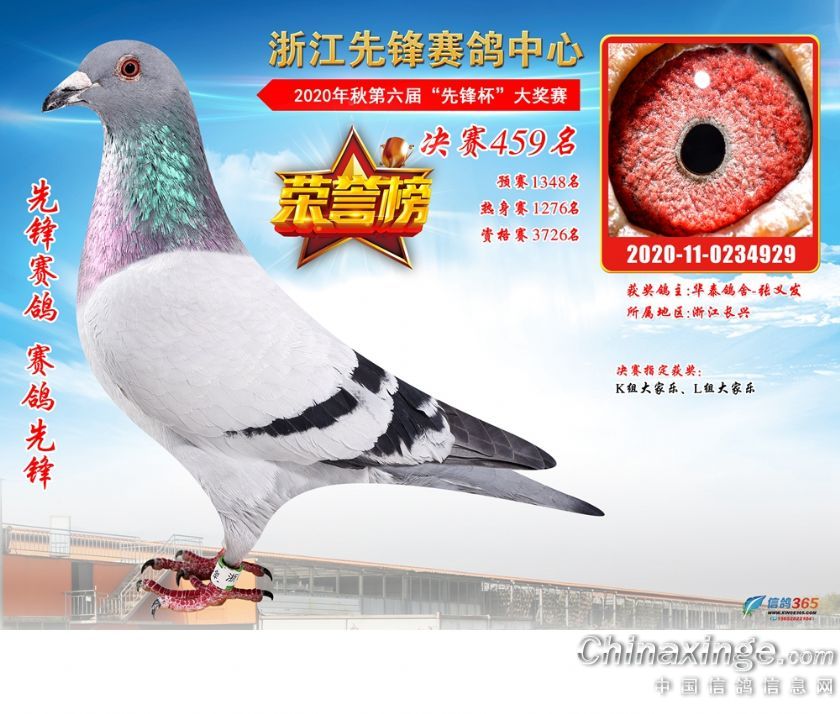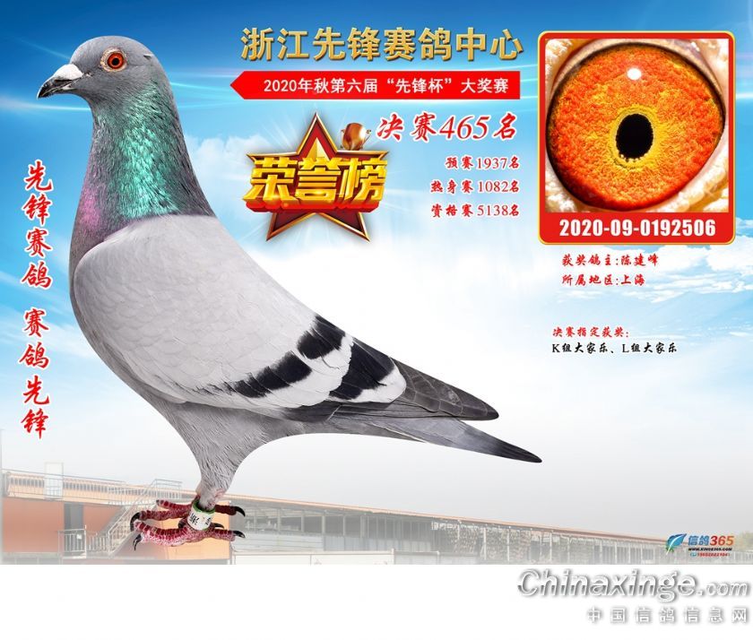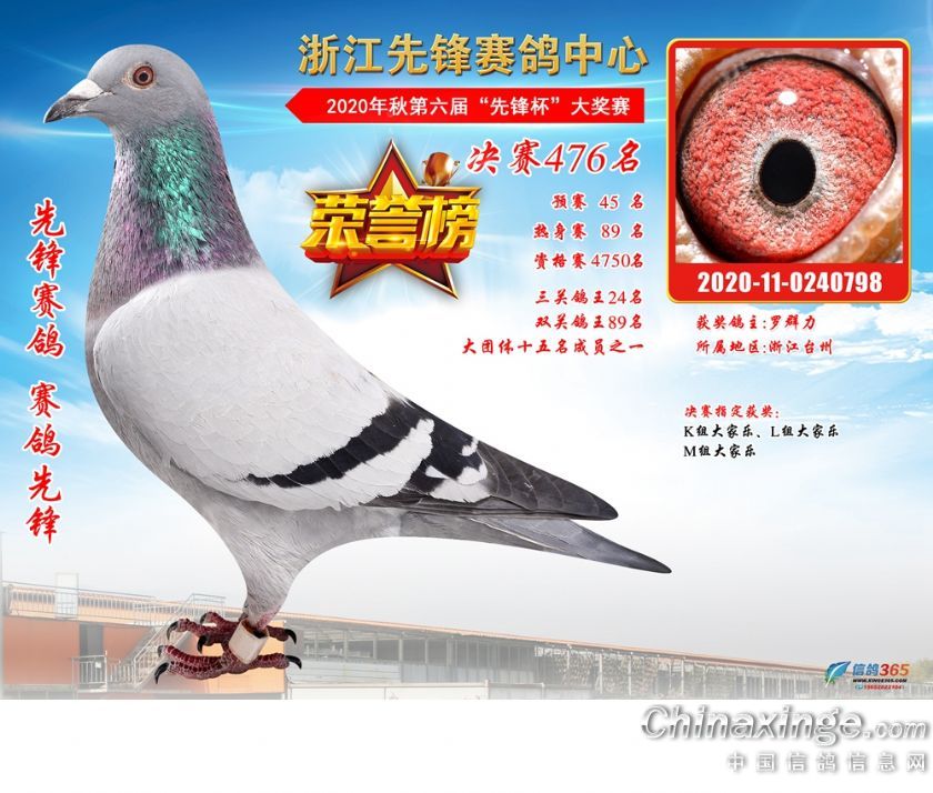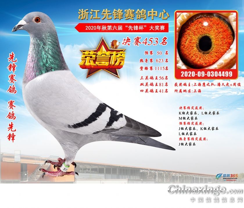 浙江先锋赛鸽中心2020年第六届决赛获奖鸽451-480名