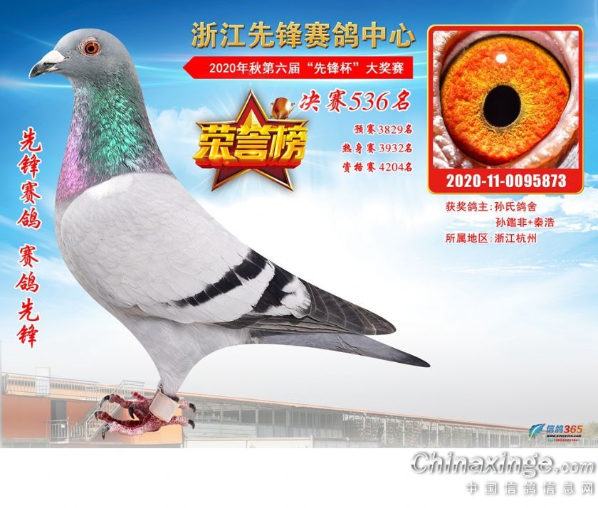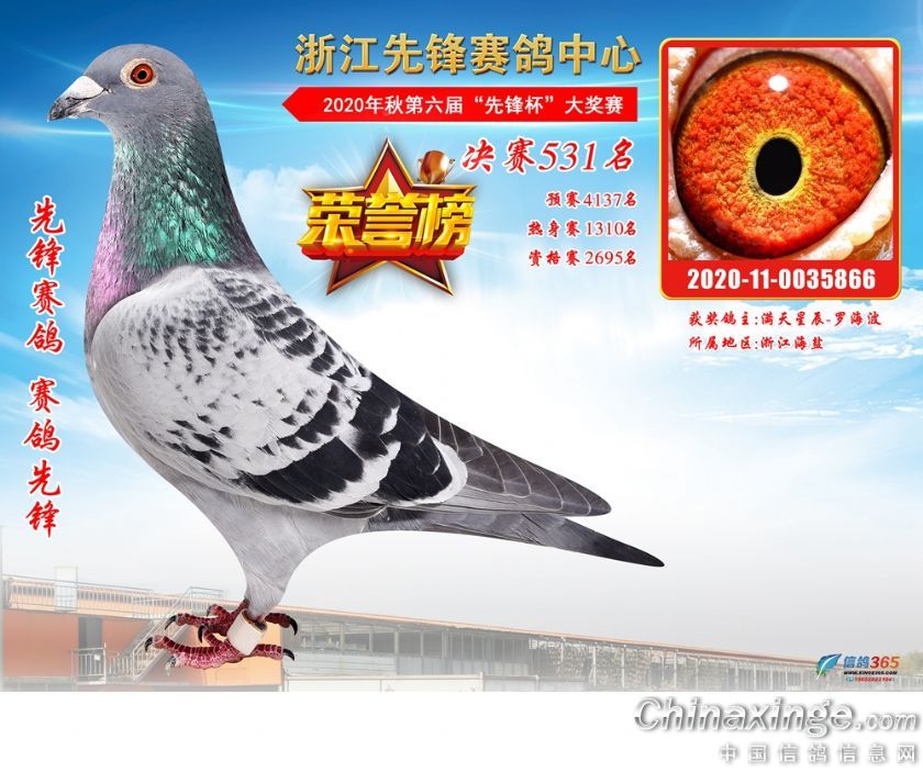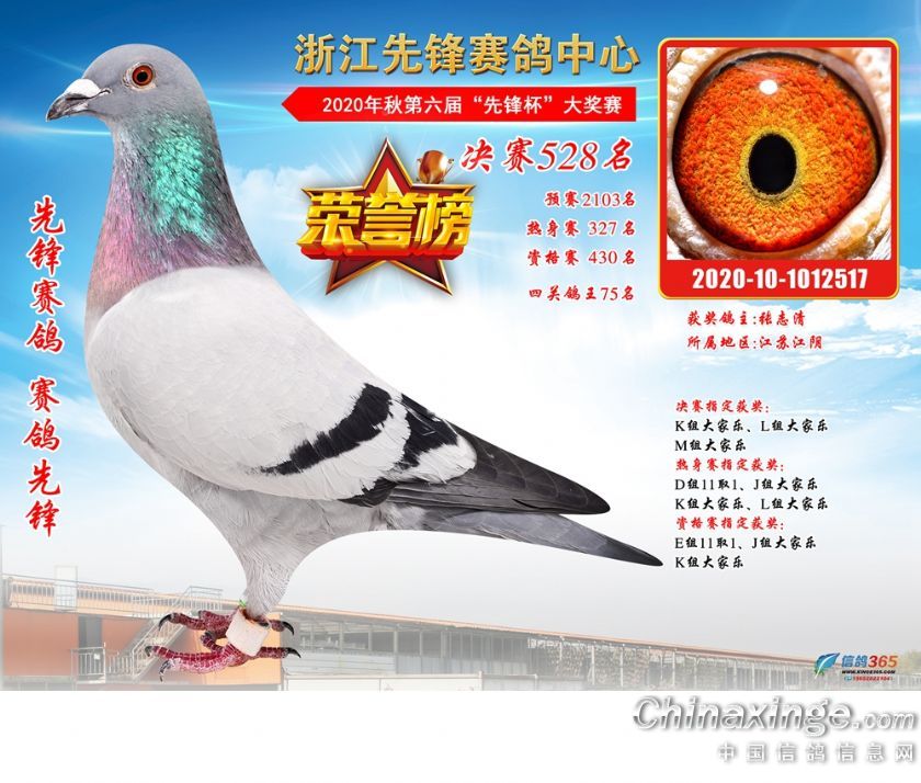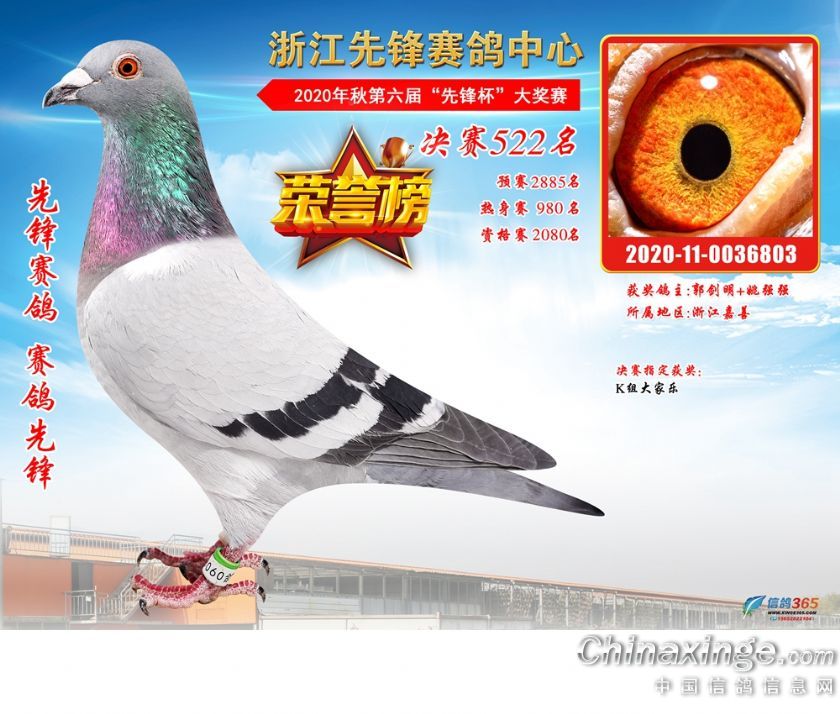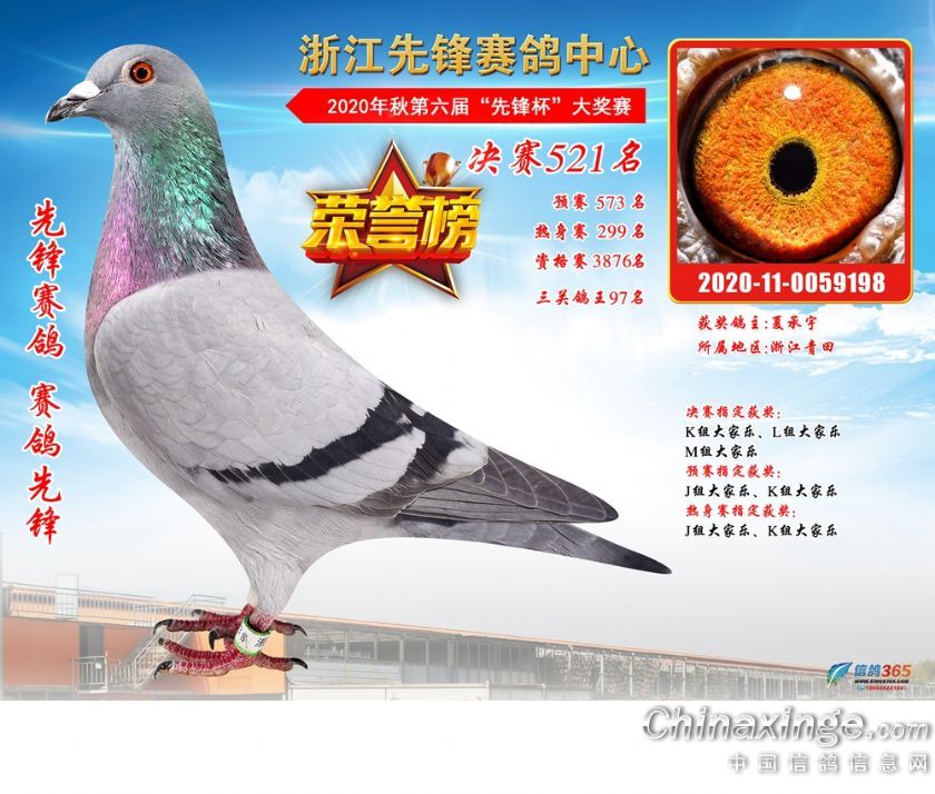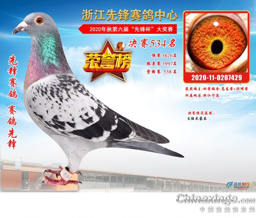 浙江先锋赛鸽中心2020年第六届决赛获奖鸽511-540名