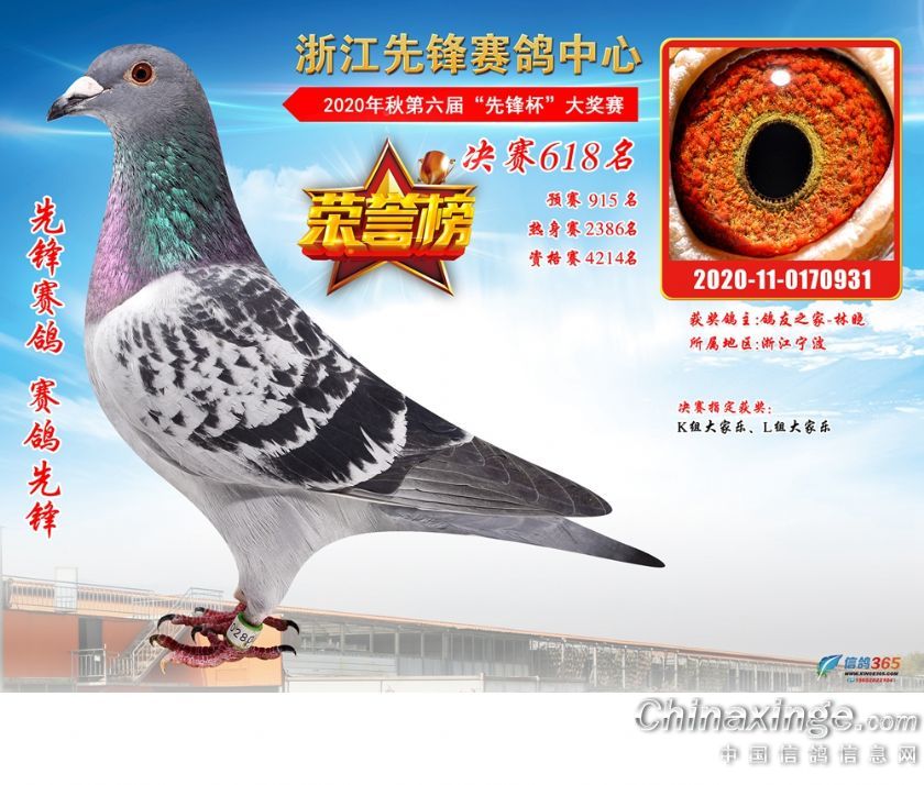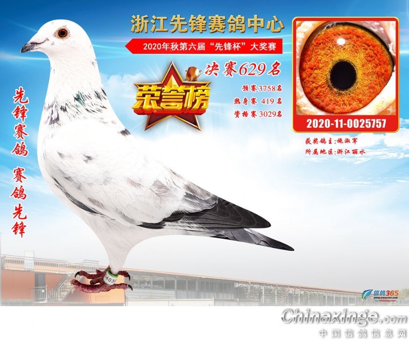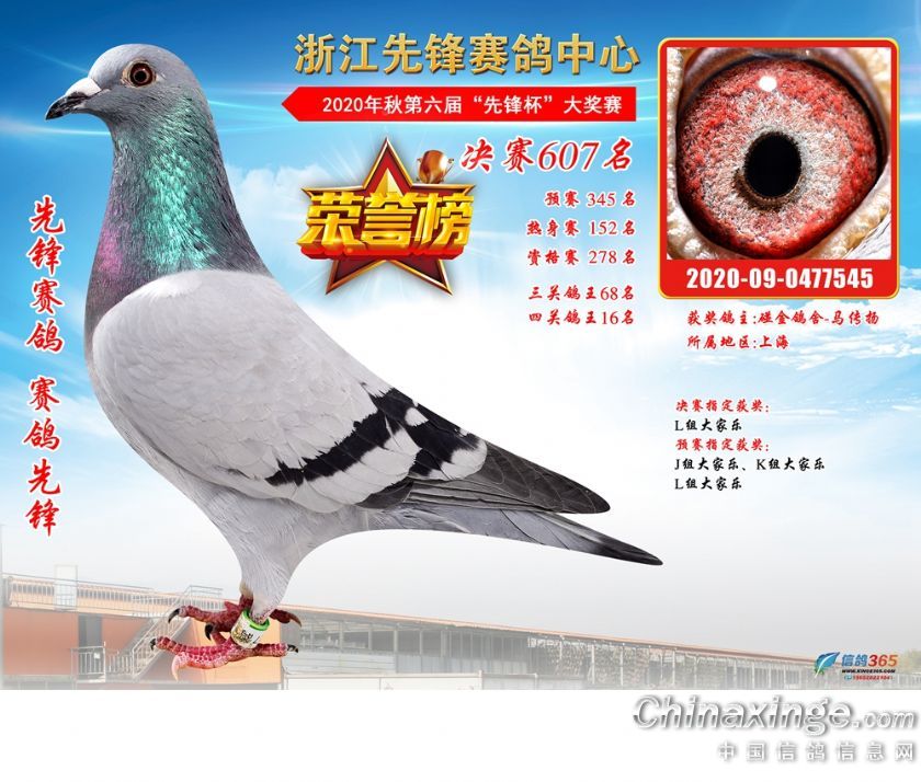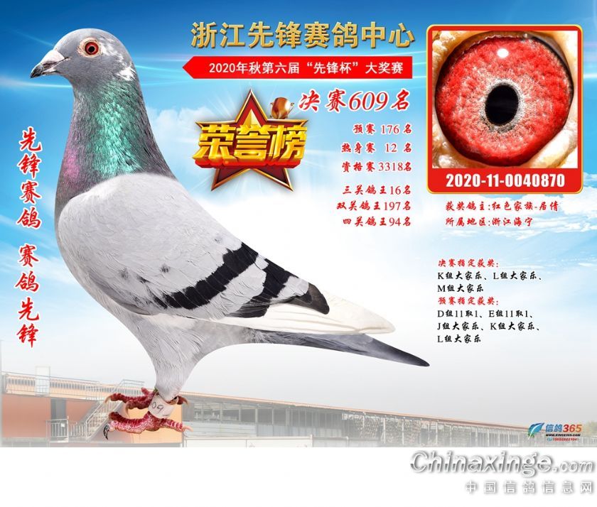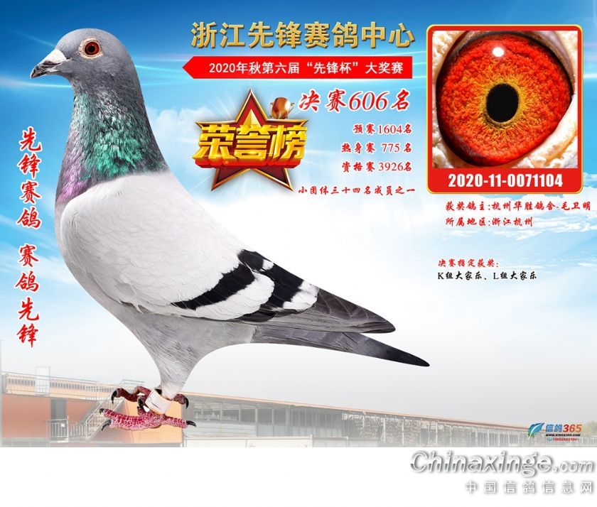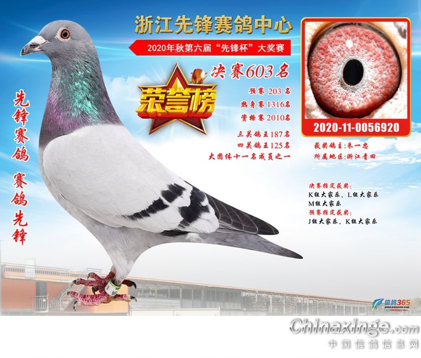 浙江先锋赛鸽中心2020年第六届决赛获奖鸽601-630名
