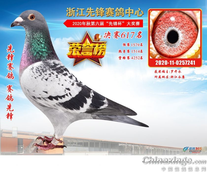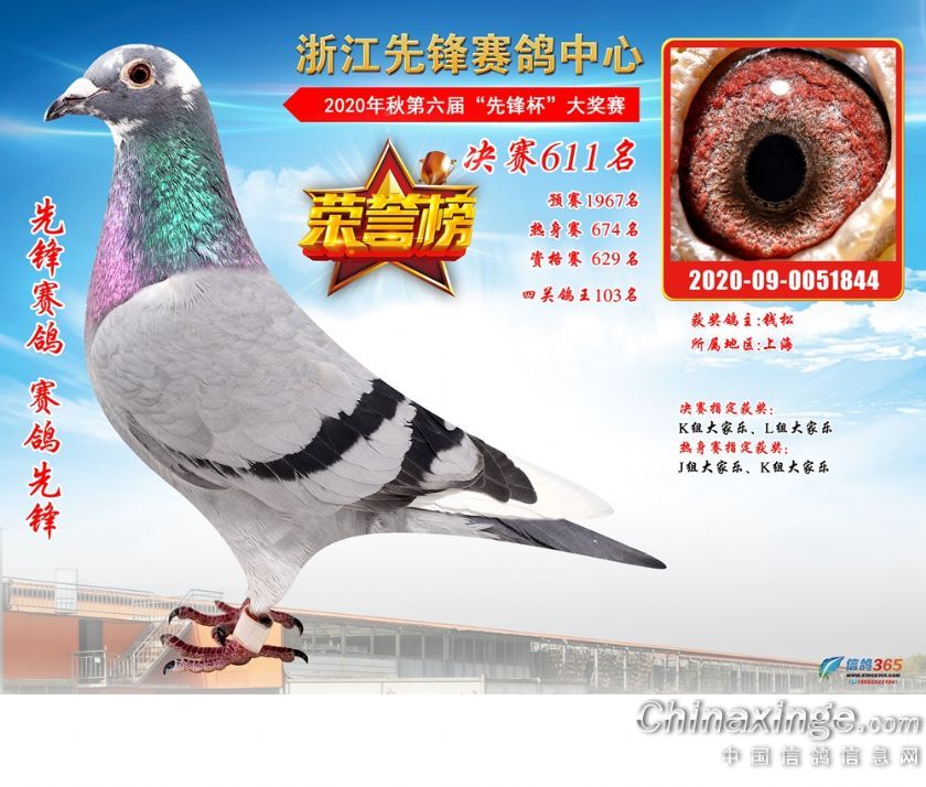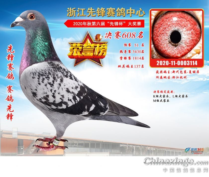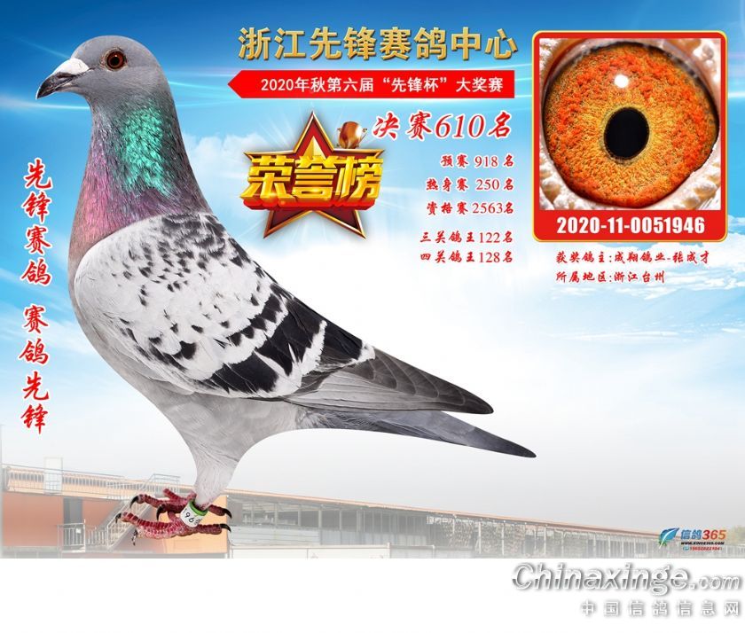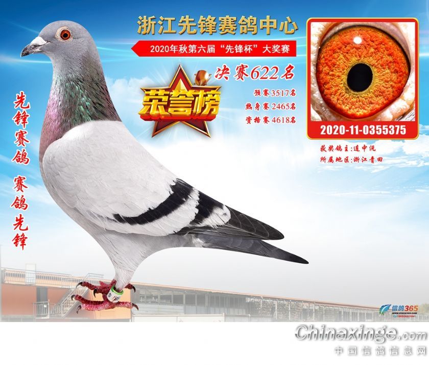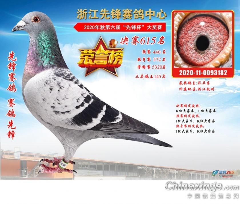 浙江先锋赛鸽中心2020年第六届决赛获奖鸽601-630名