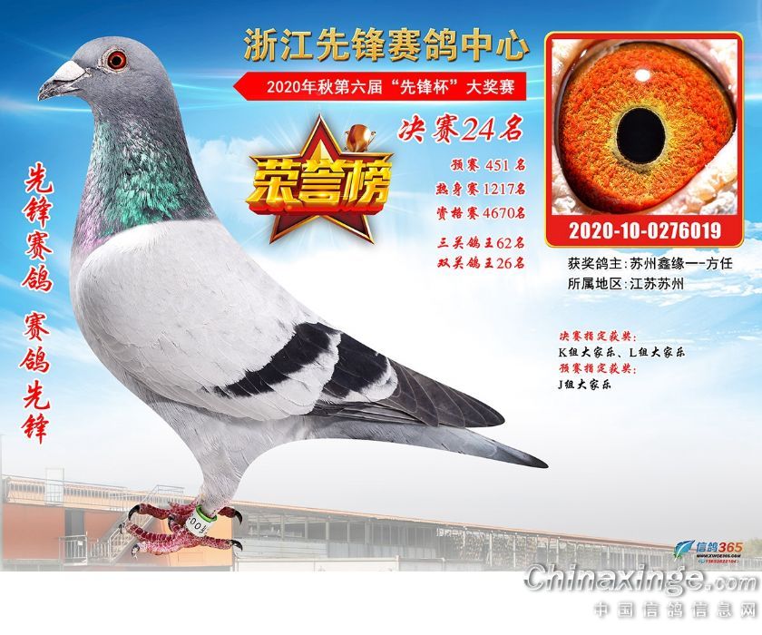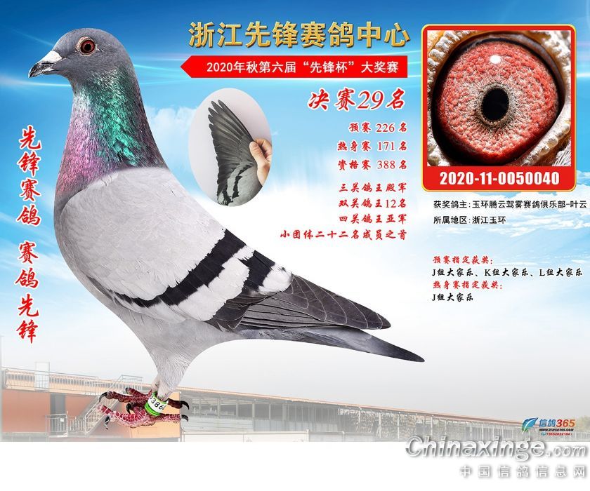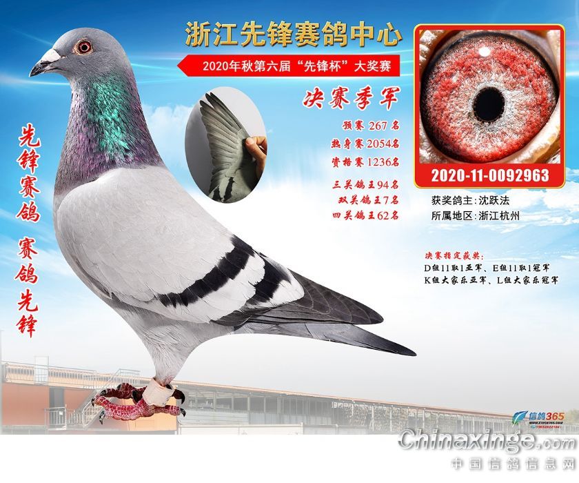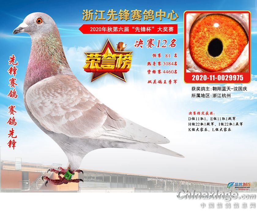 浙江先锋赛鸽中心2020年第六届决赛获奖鸽1-30名