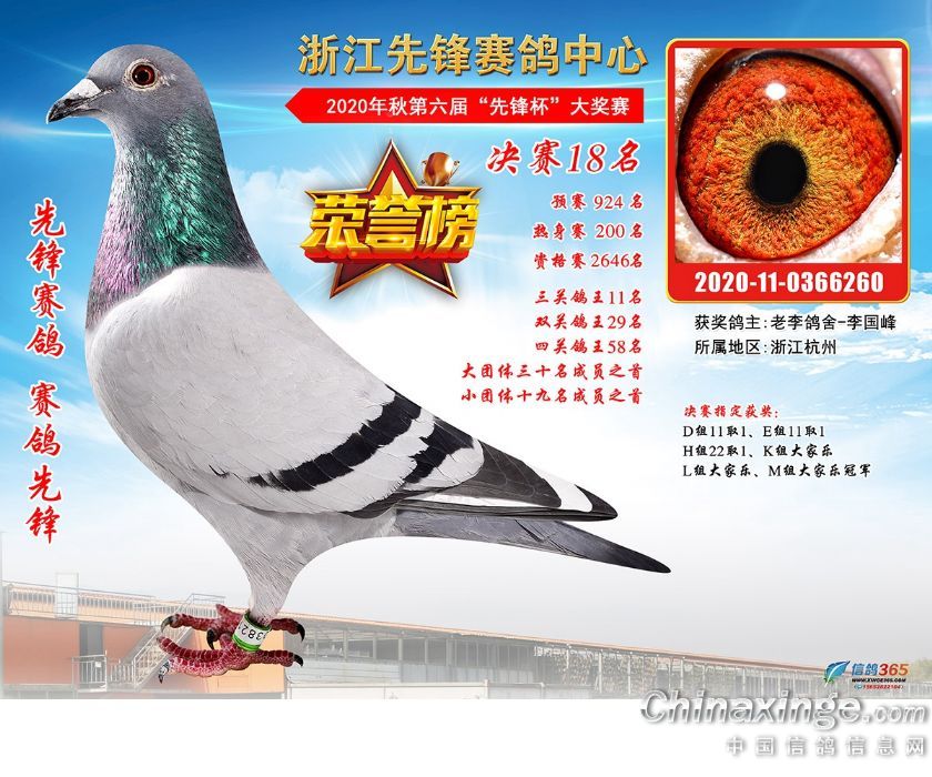 作品说明: 浙江先锋赛鸽中心2020年第六届决赛获奖鸽1-30名