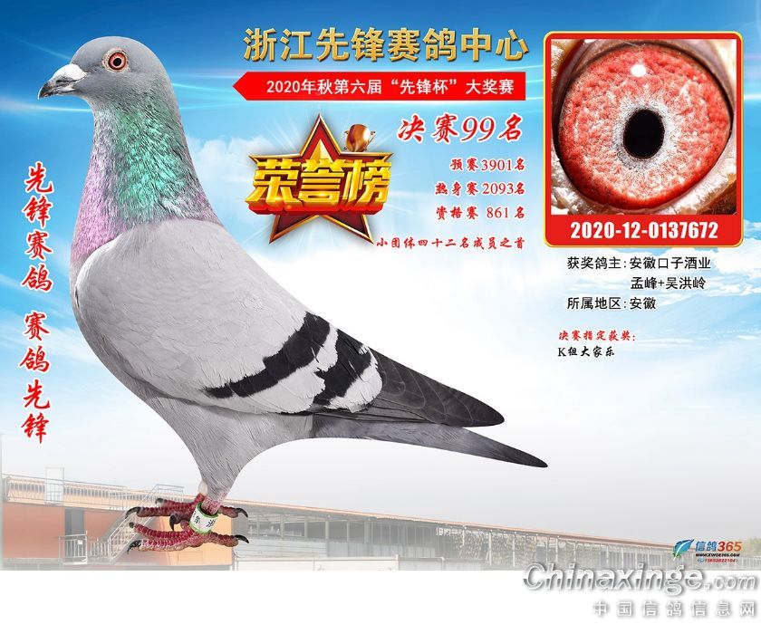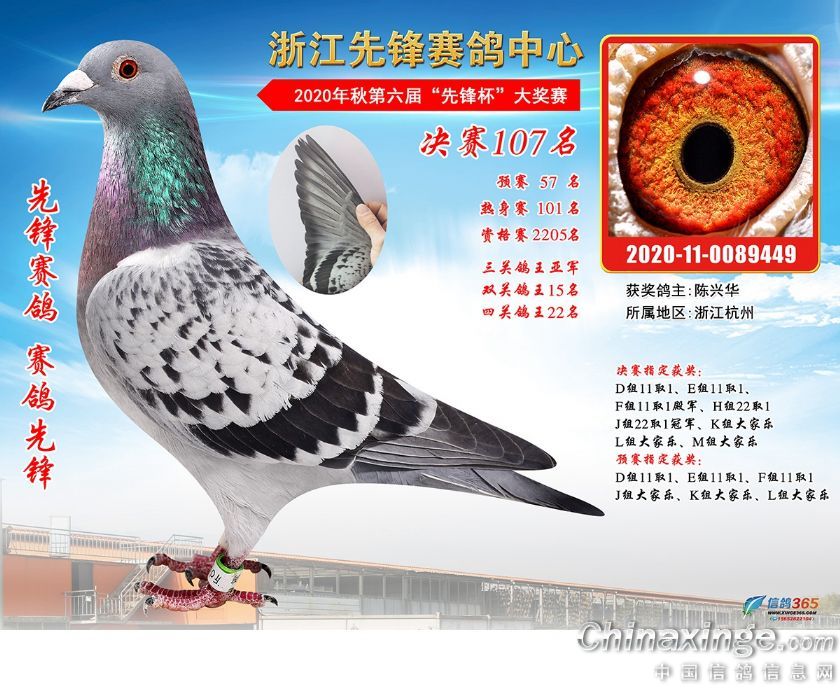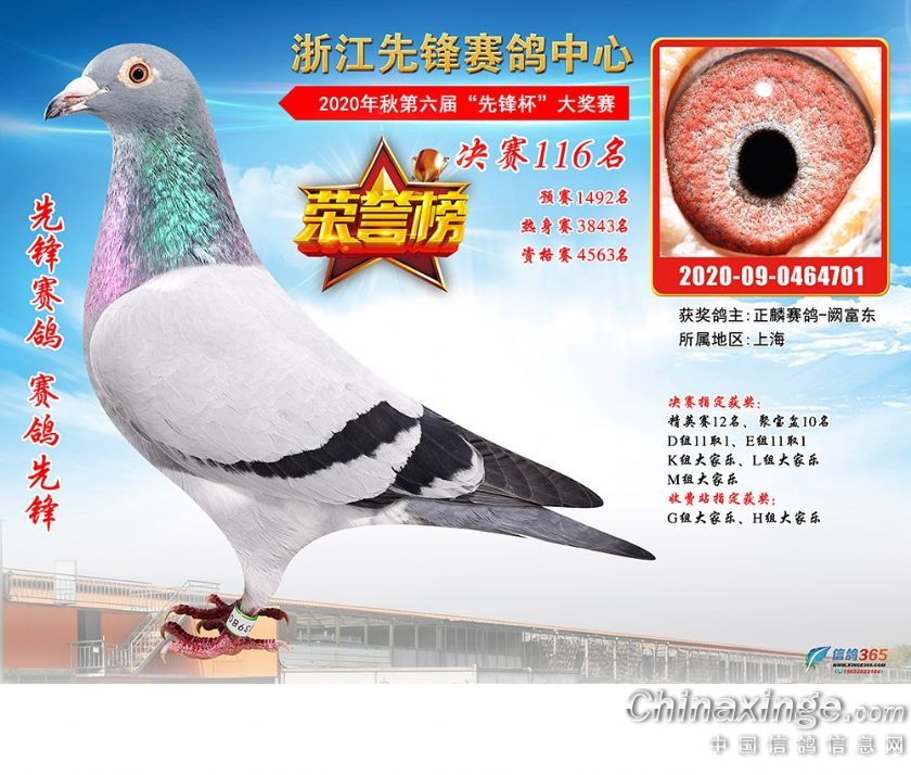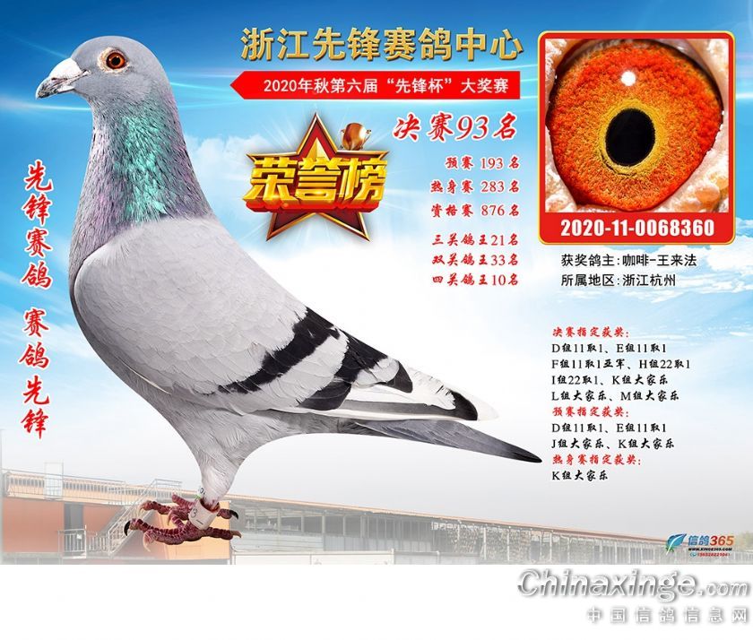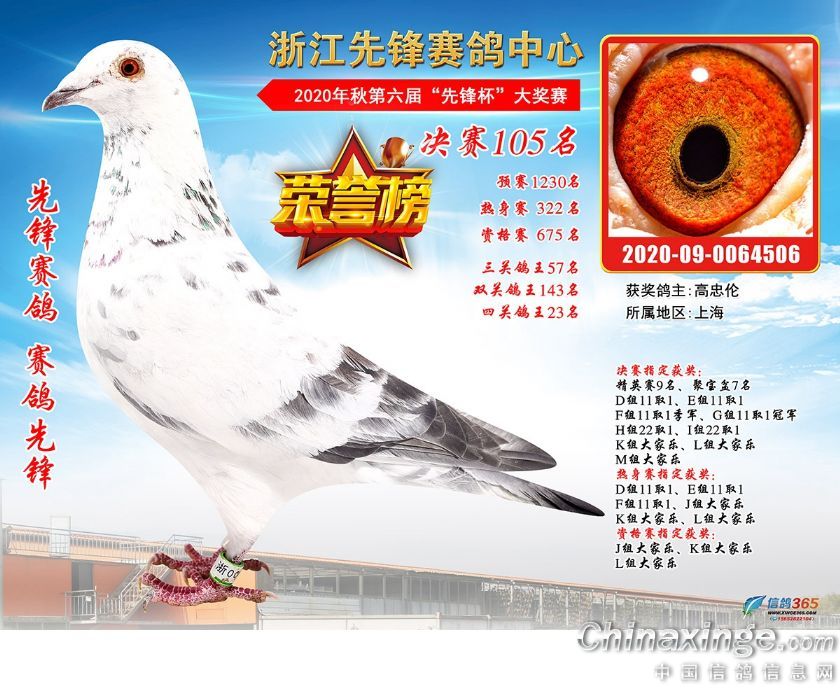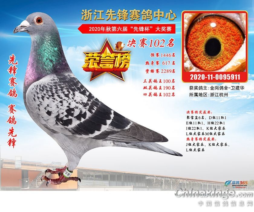 浙江先锋赛鸽中心2020年第六届决赛获奖鸽91-120名