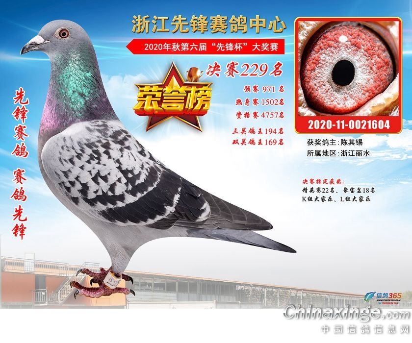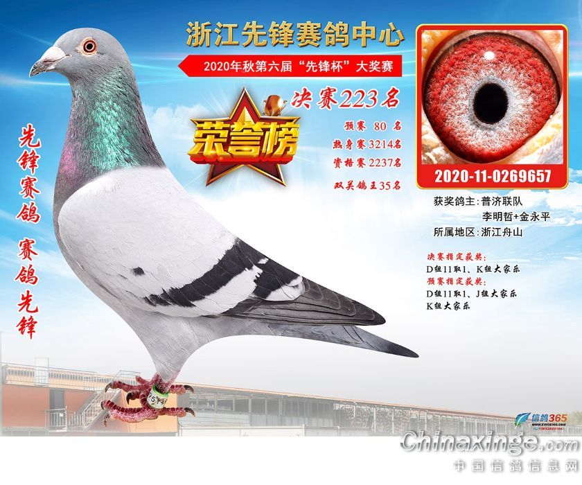 浙江先锋赛鸽中心2020年第六届决赛获奖鸽211-240名