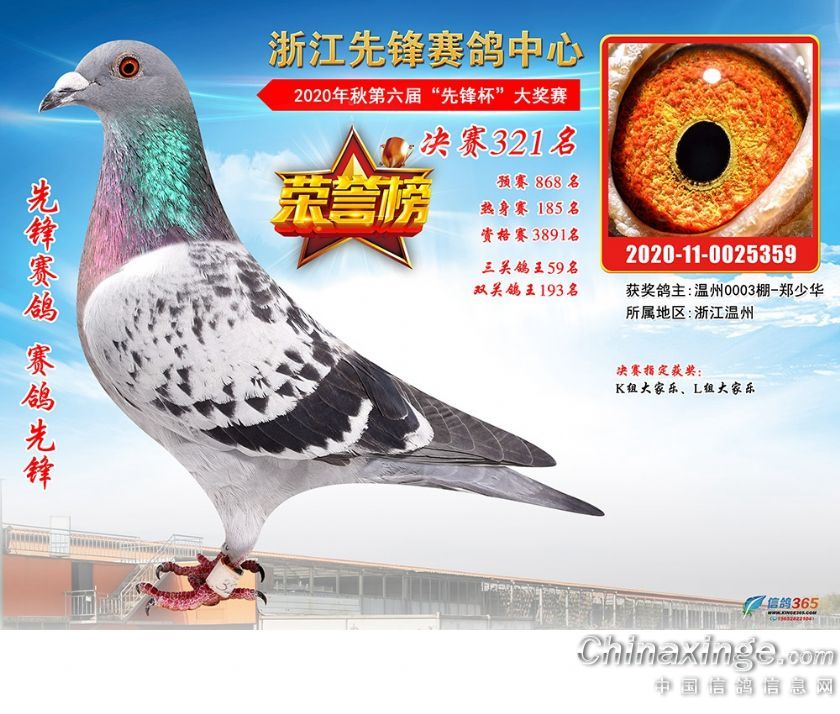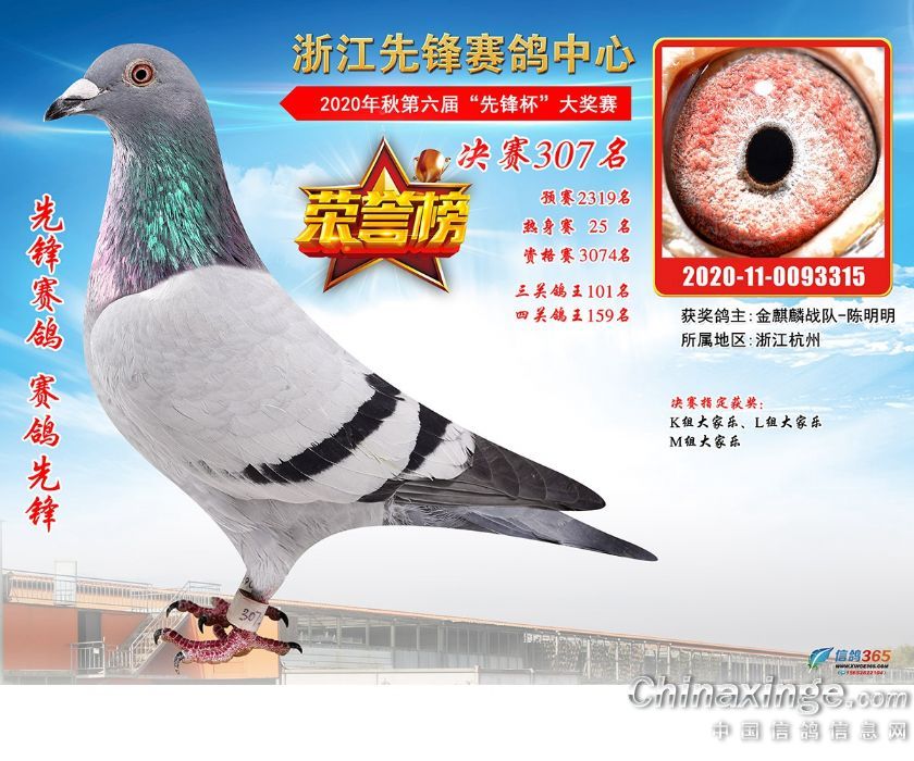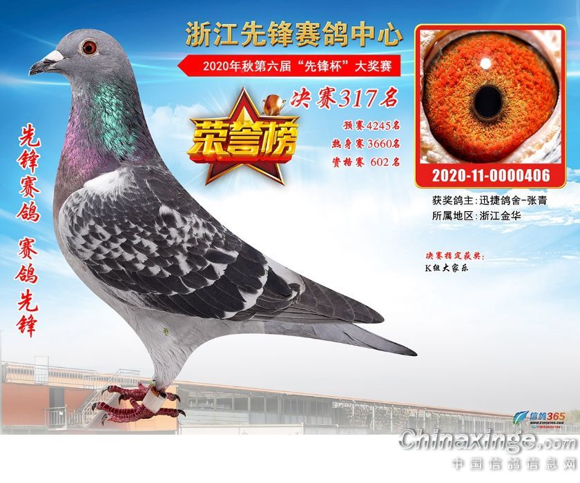 浙江先锋赛鸽中心2020年第六届决赛获奖鸽301-330名