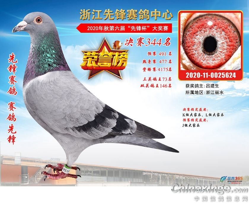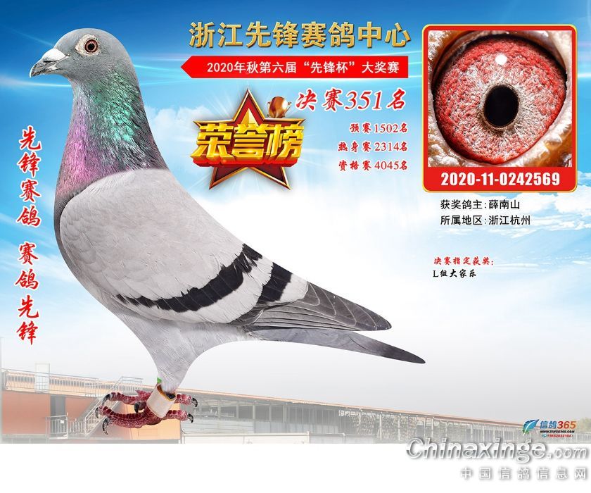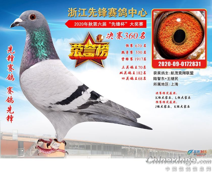 浙江先锋赛鸽中心2020年第六届决赛获奖鸽331-360名