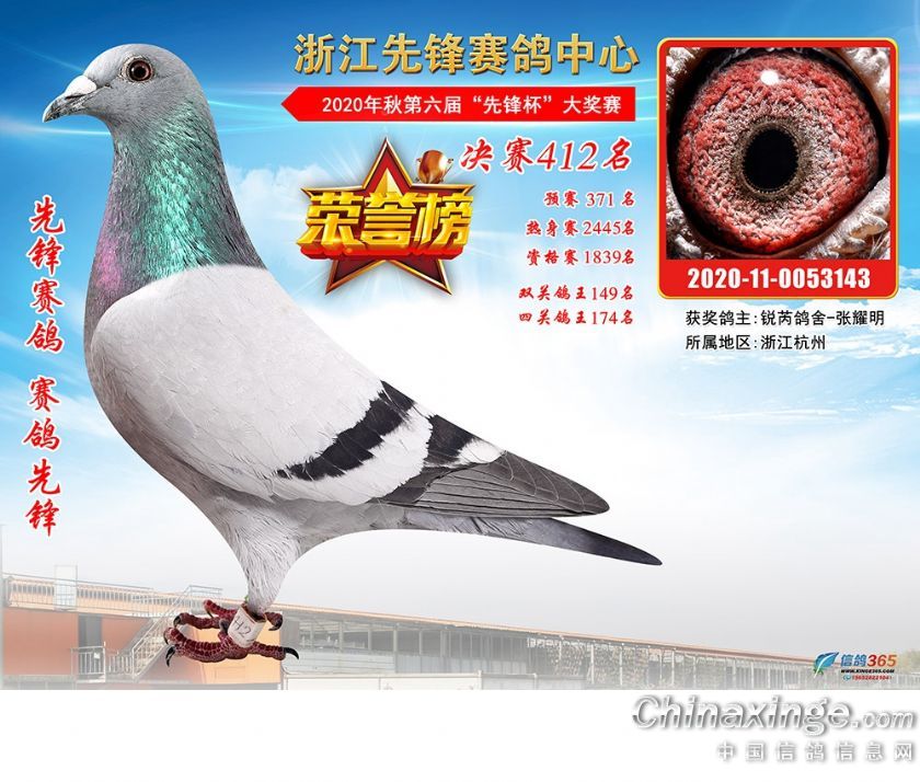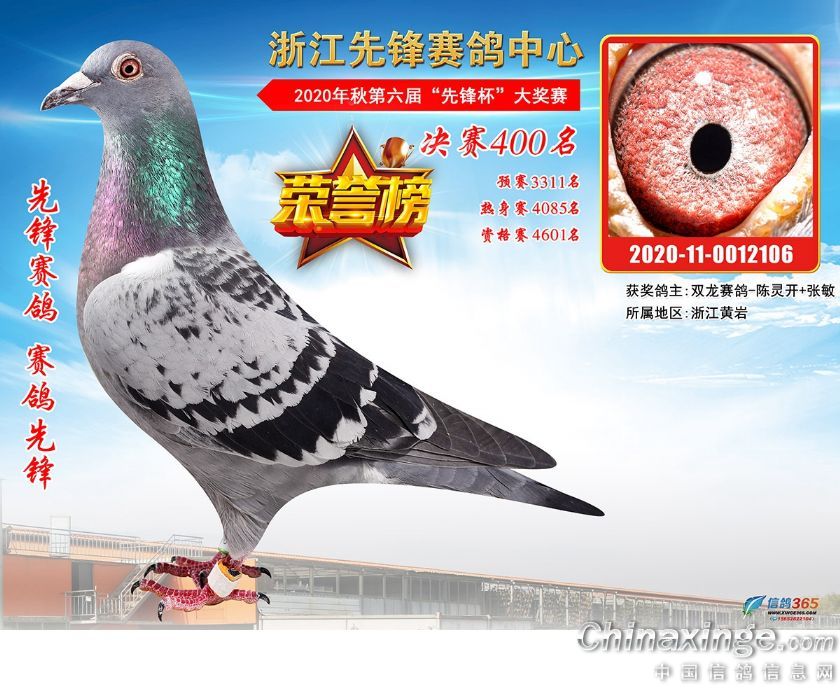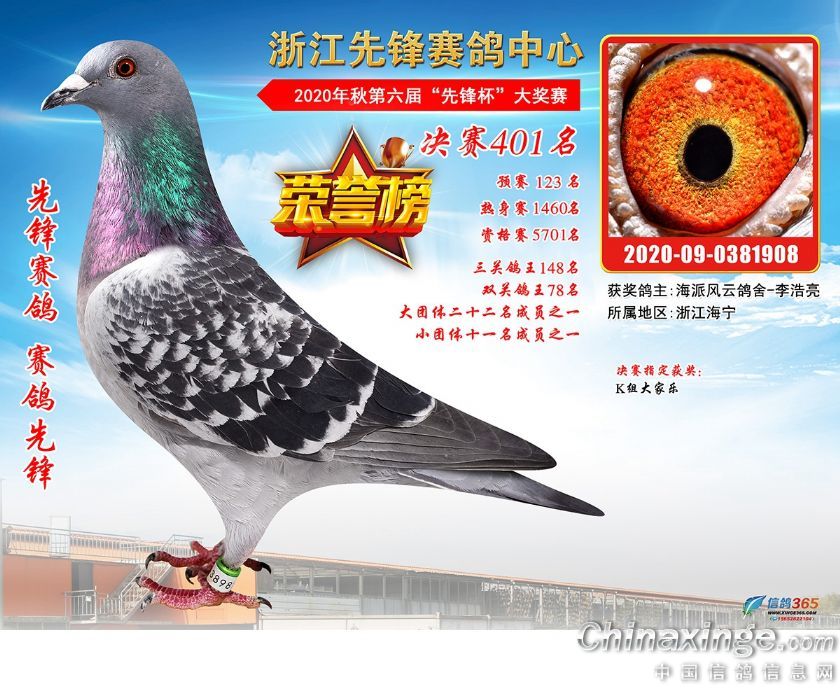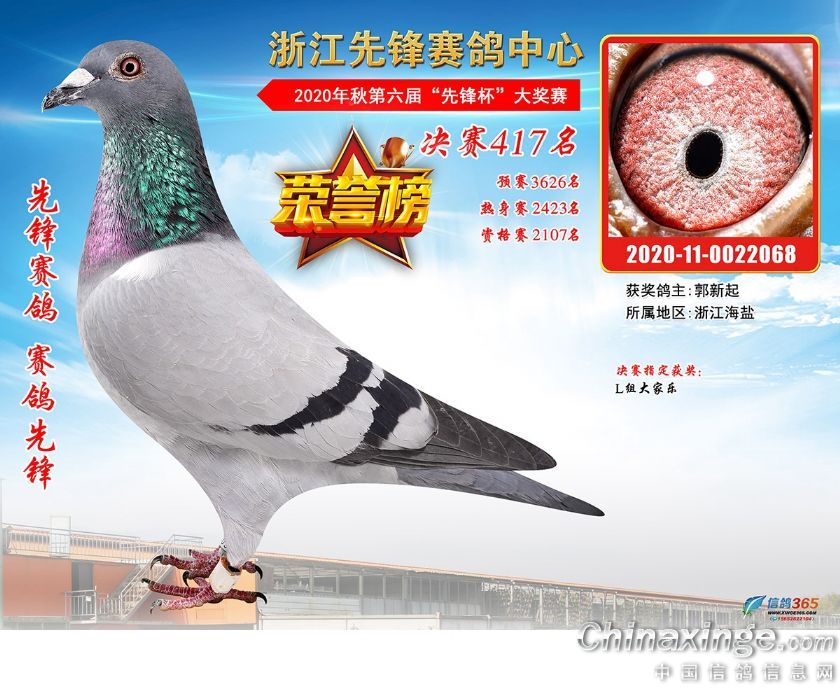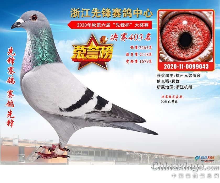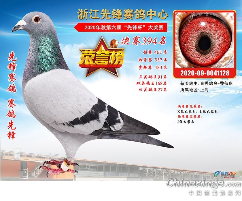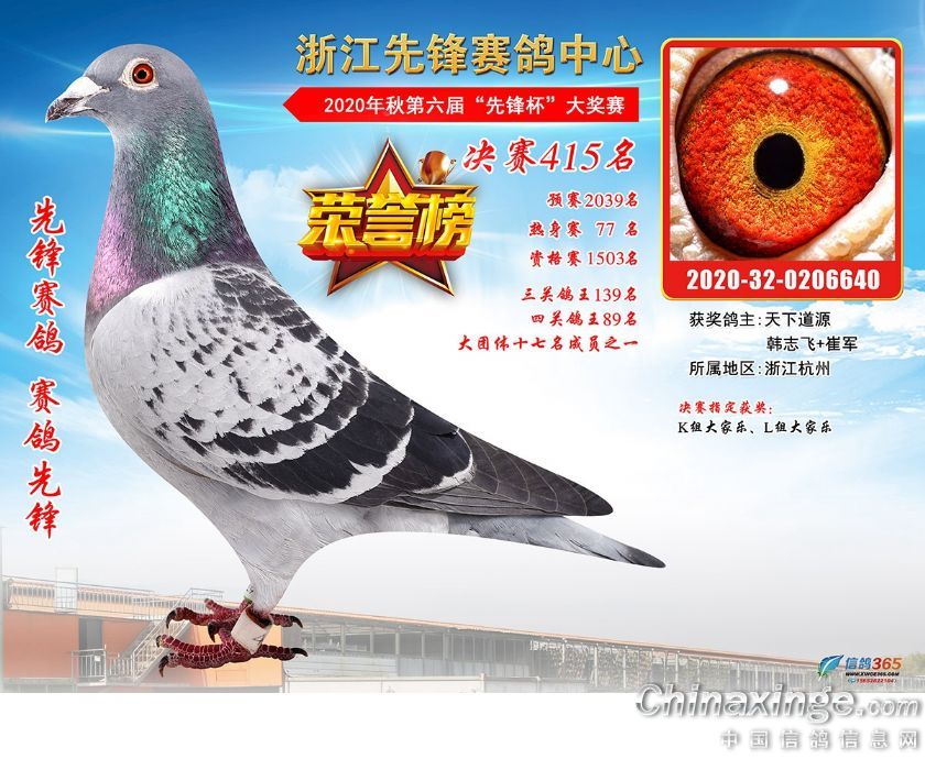 浙江先锋赛鸽中心2020年第六届决赛获奖鸽391-420名