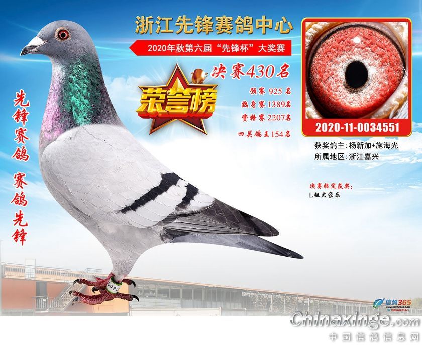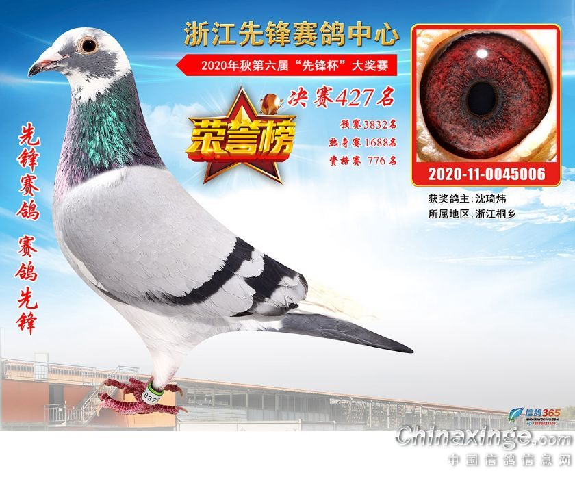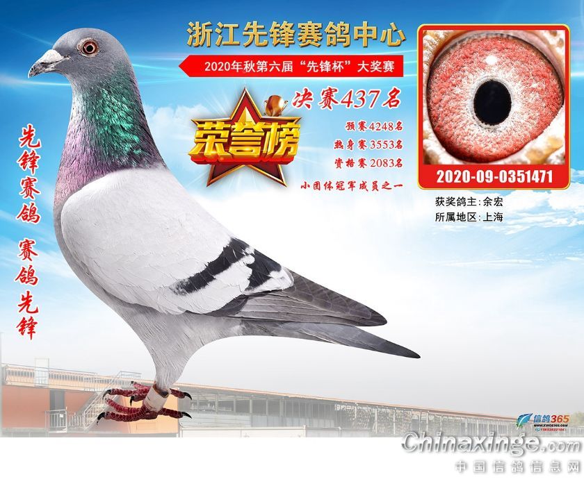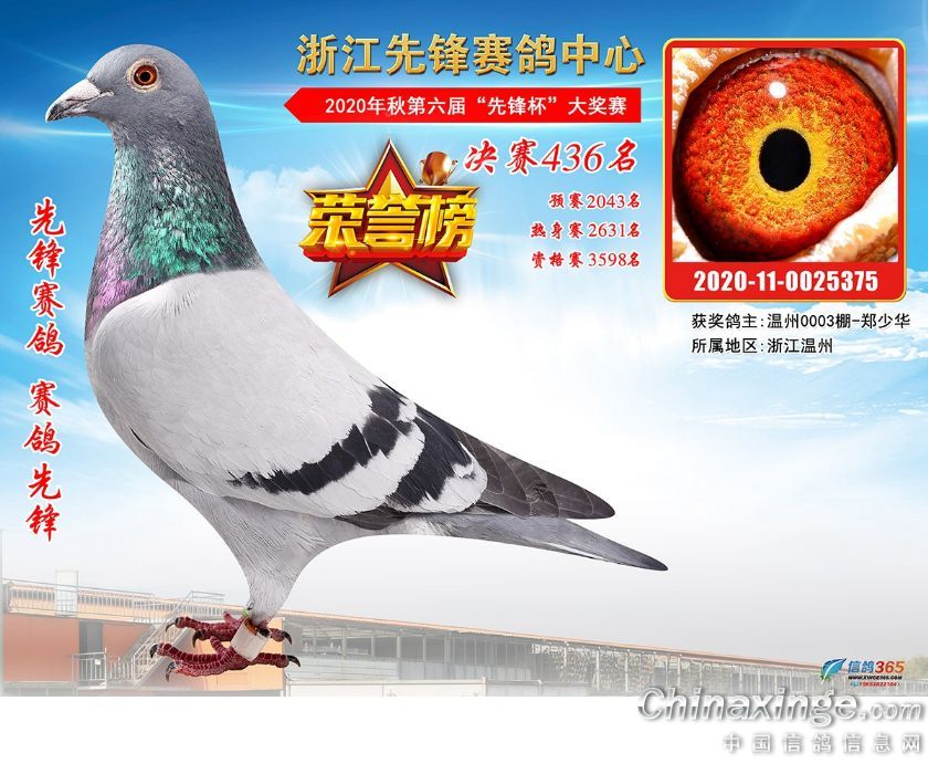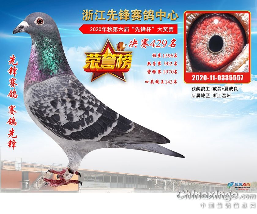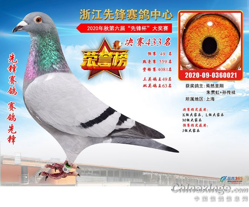 浙江先锋赛鸽中心2020年第六届决赛获奖鸽421-450名