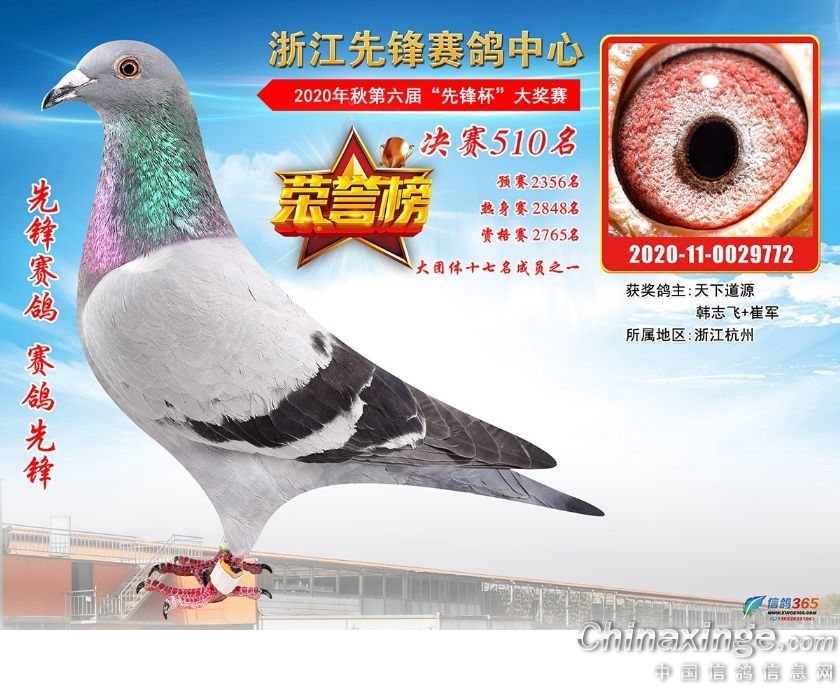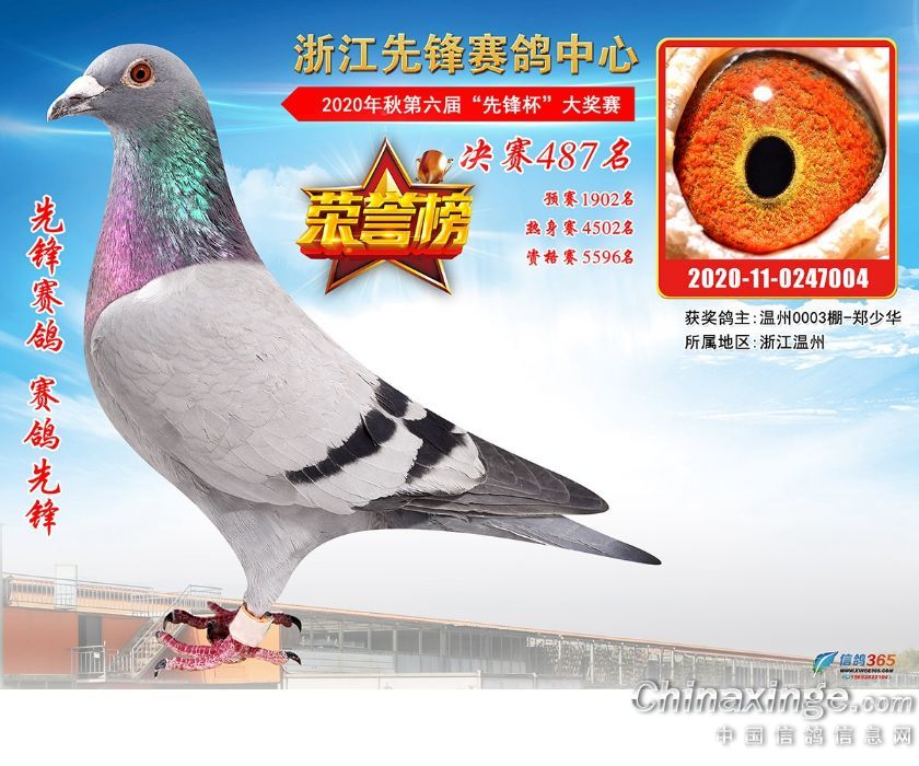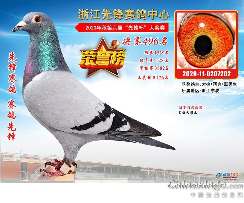 浙江先锋赛鸽中心2020年第六届决赛获奖鸽481-510名