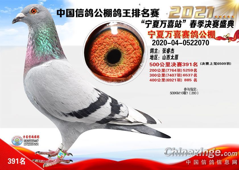 2021年春季宁夏万喜赛鸽公棚决赛获奖鸽391-420