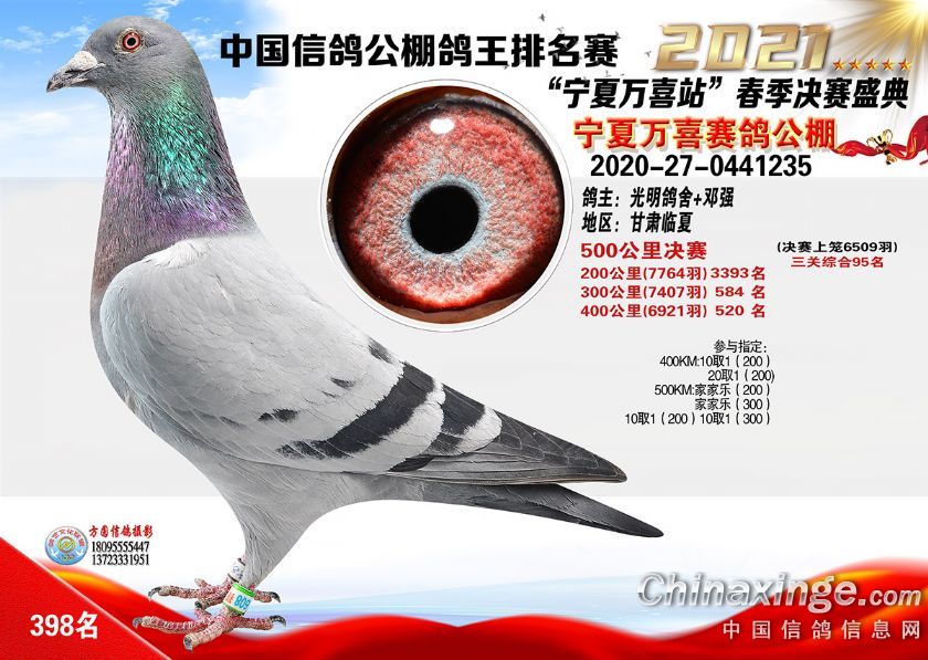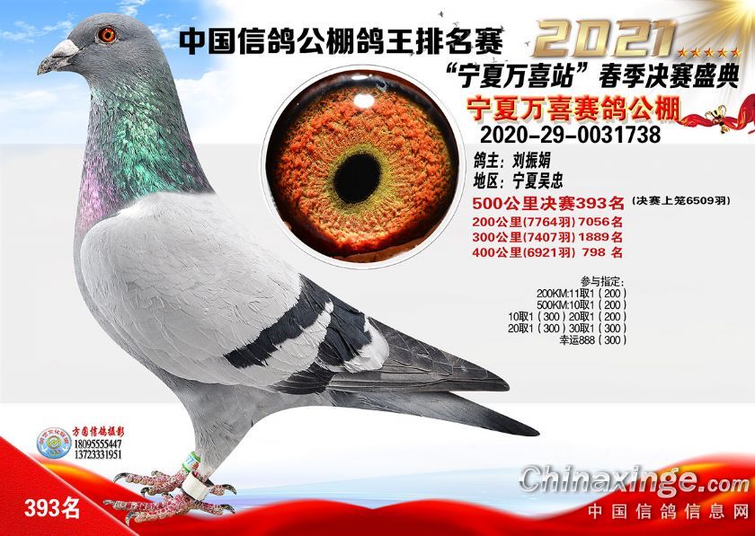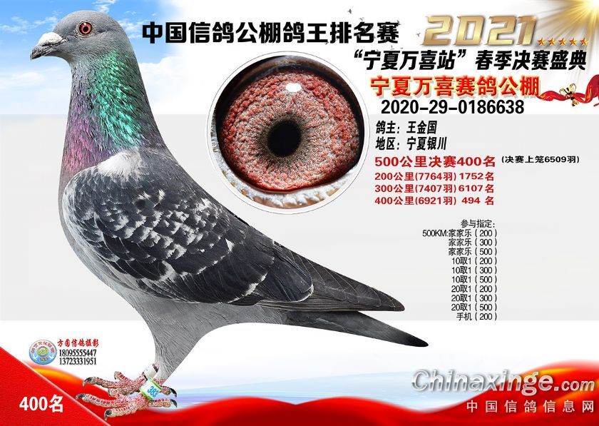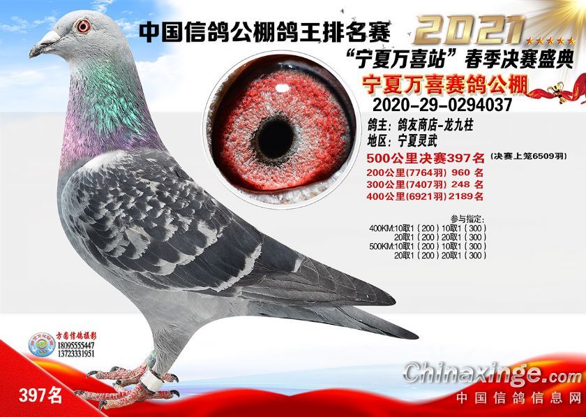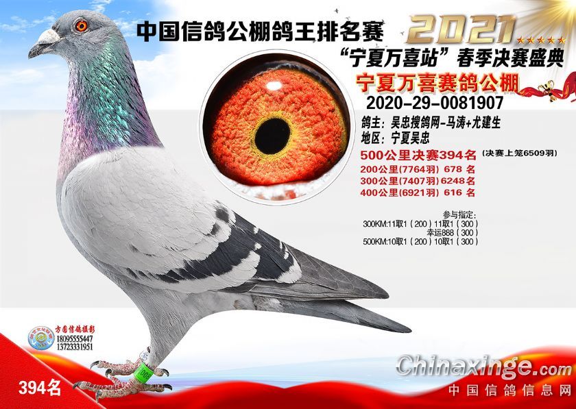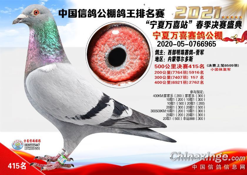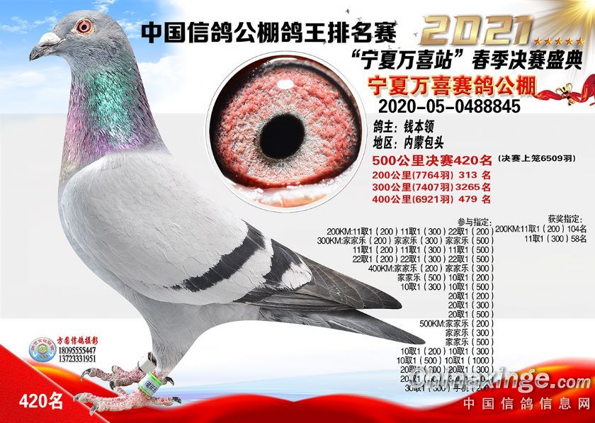 作品说明: 2021年春季宁夏万喜赛鸽公棚决赛获奖鸽391-420