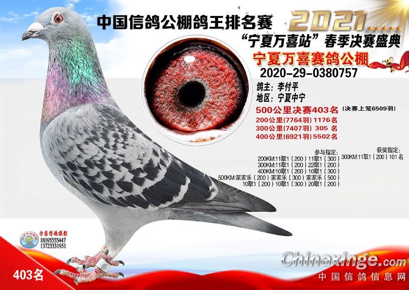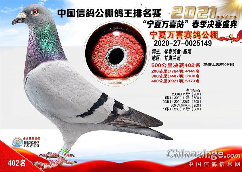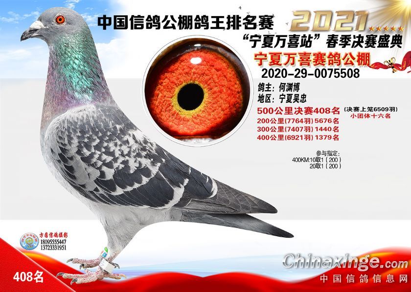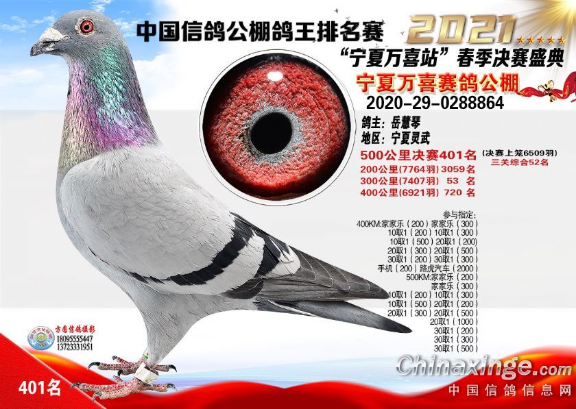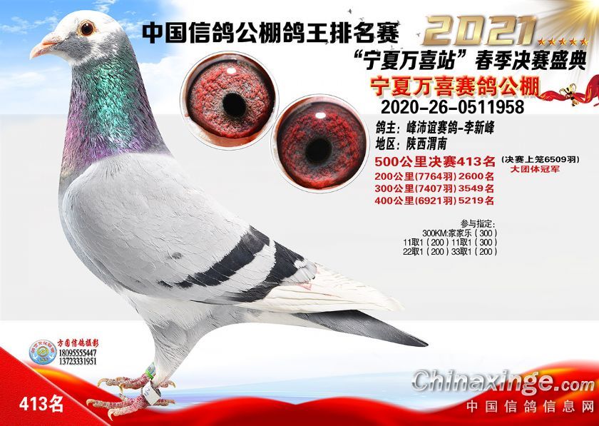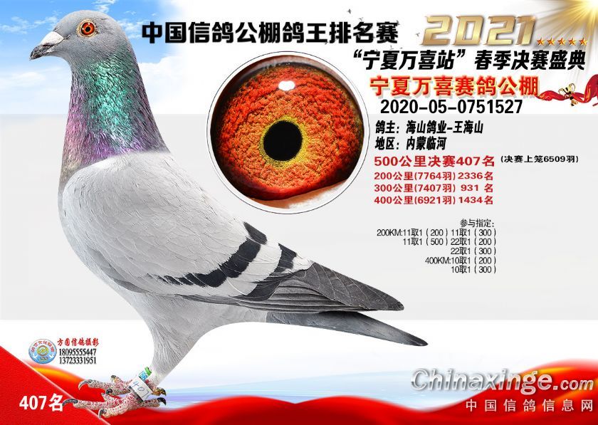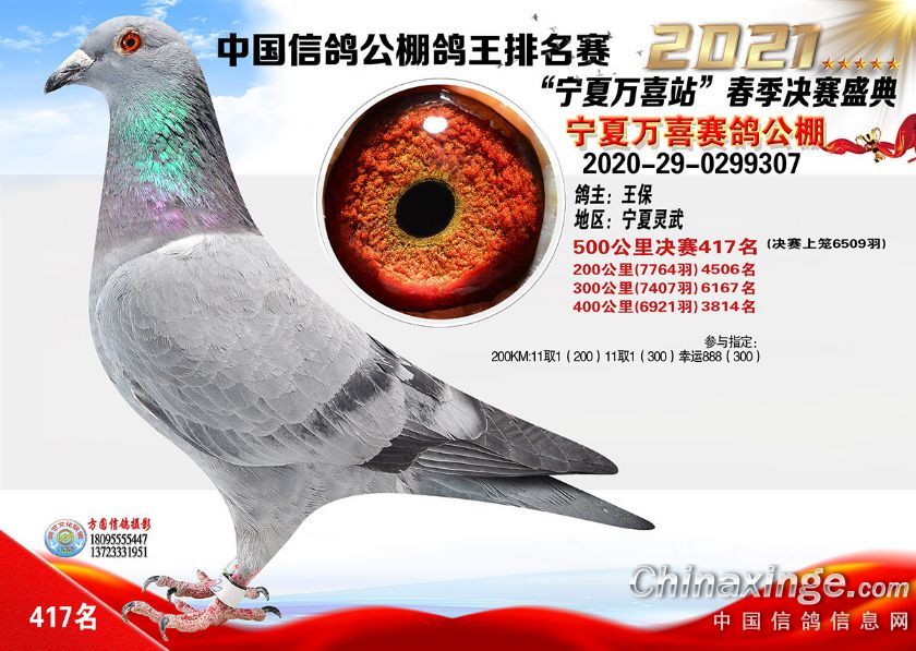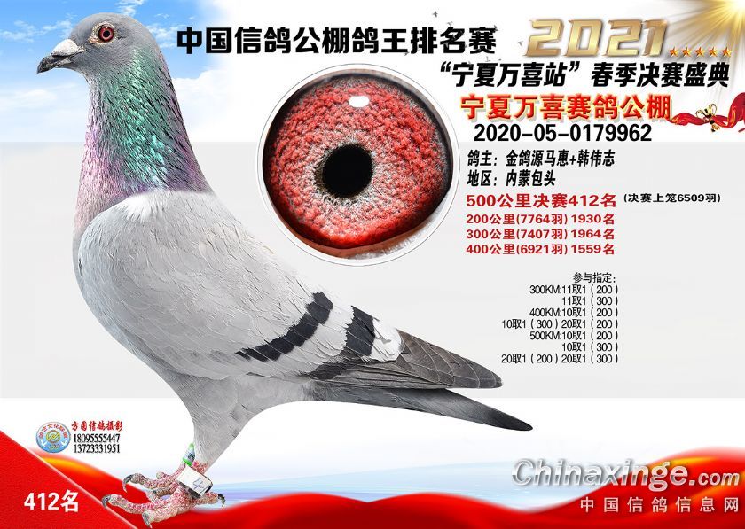 作品说明: 2021年春季宁夏万喜赛鸽公棚决赛获奖鸽391-420