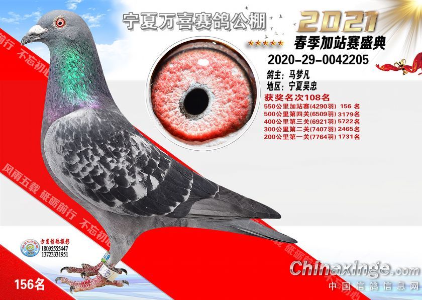 2021年春季宁夏万喜赛鸽公棚加站赛获奖鸽151-180