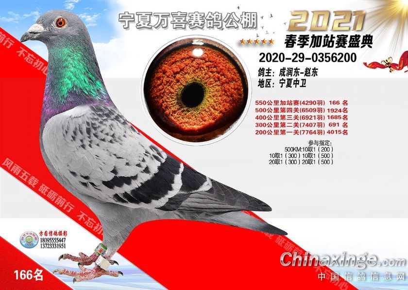 作品说明: 2021年春季宁夏万喜赛鸽公棚加站赛获奖鸽151-180