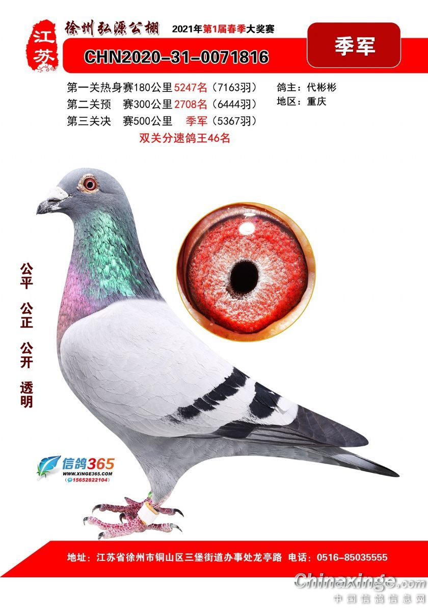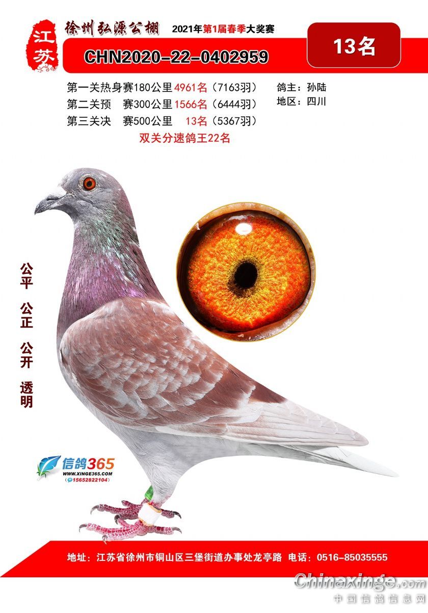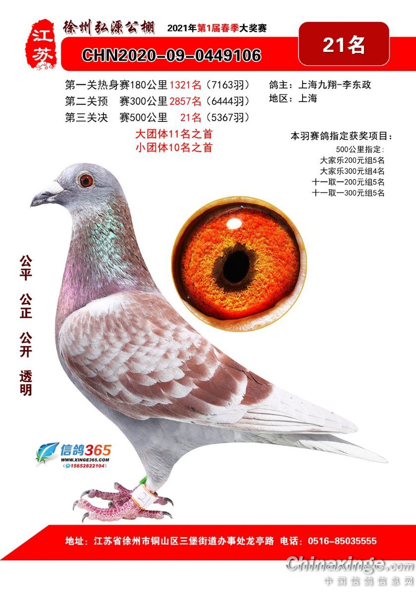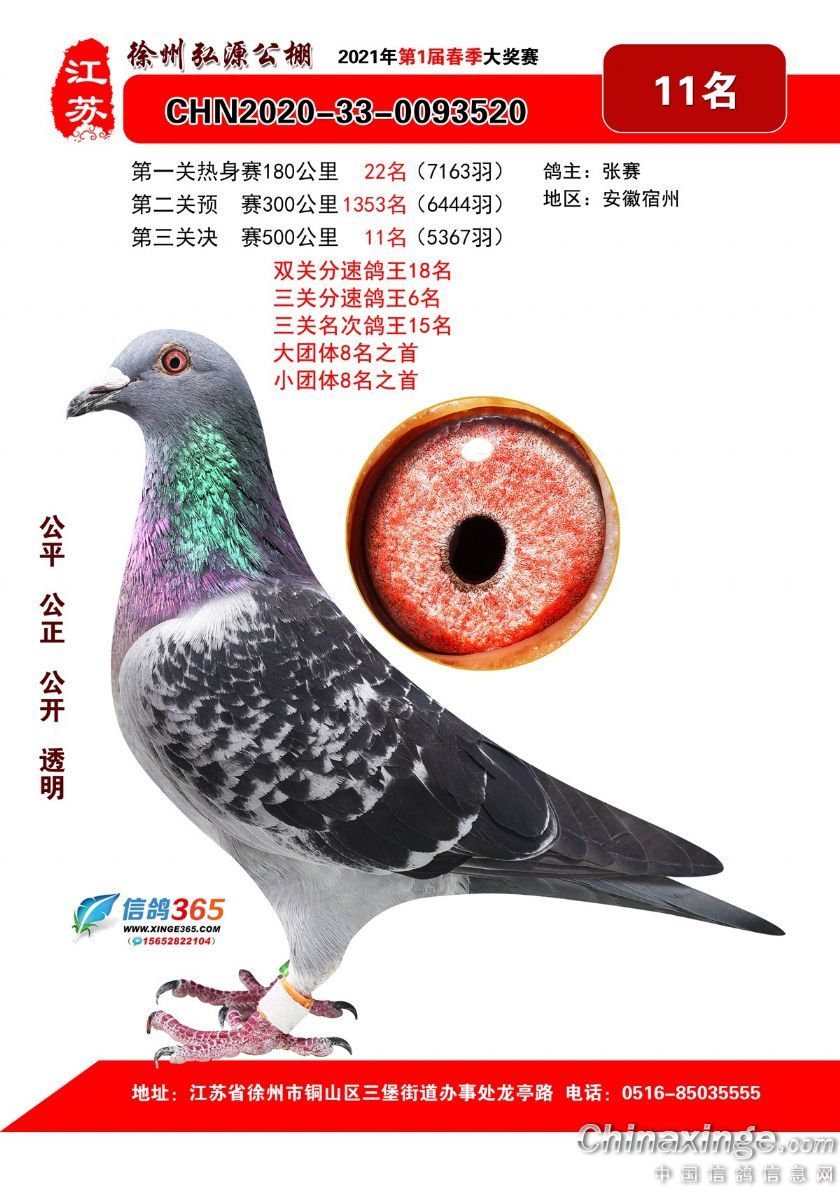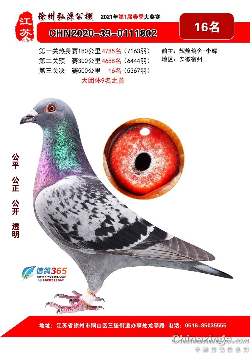 徐州弘源春棚2021年决赛获奖鸽1-25名
