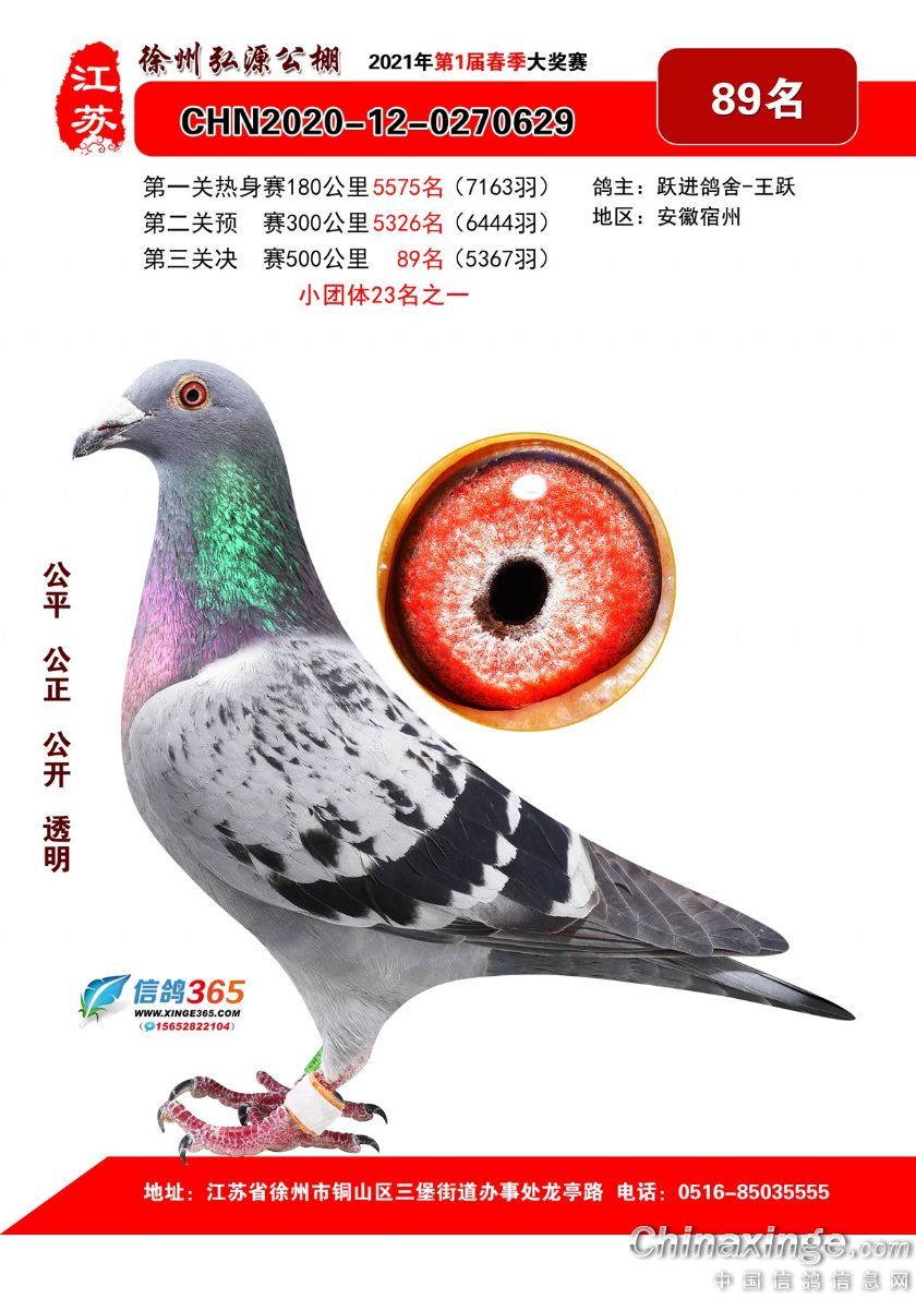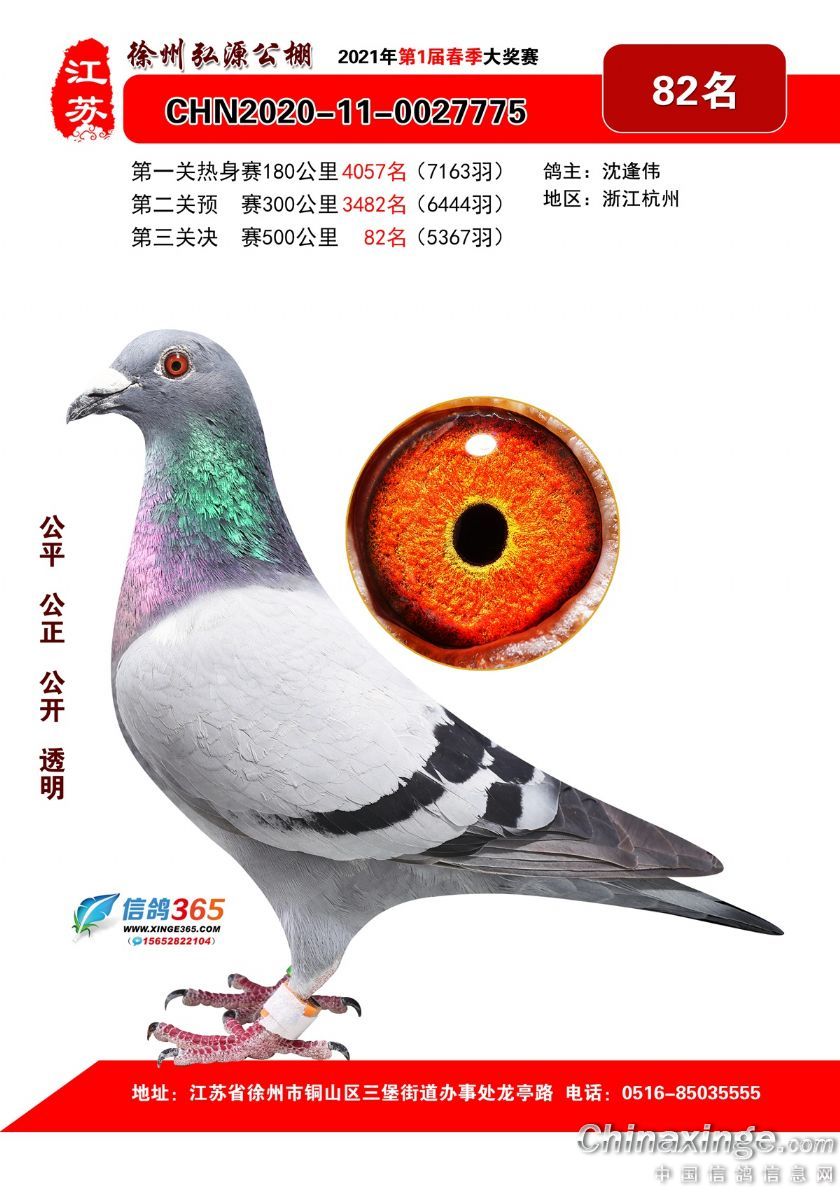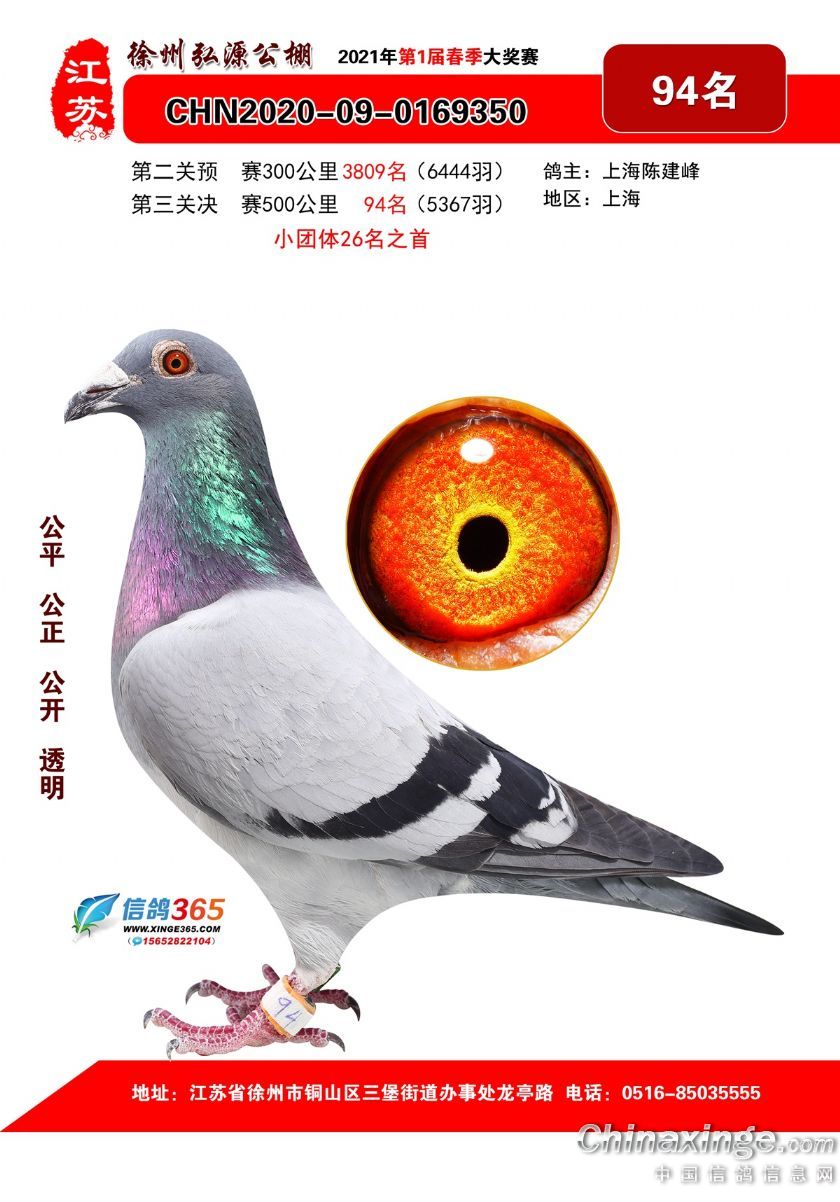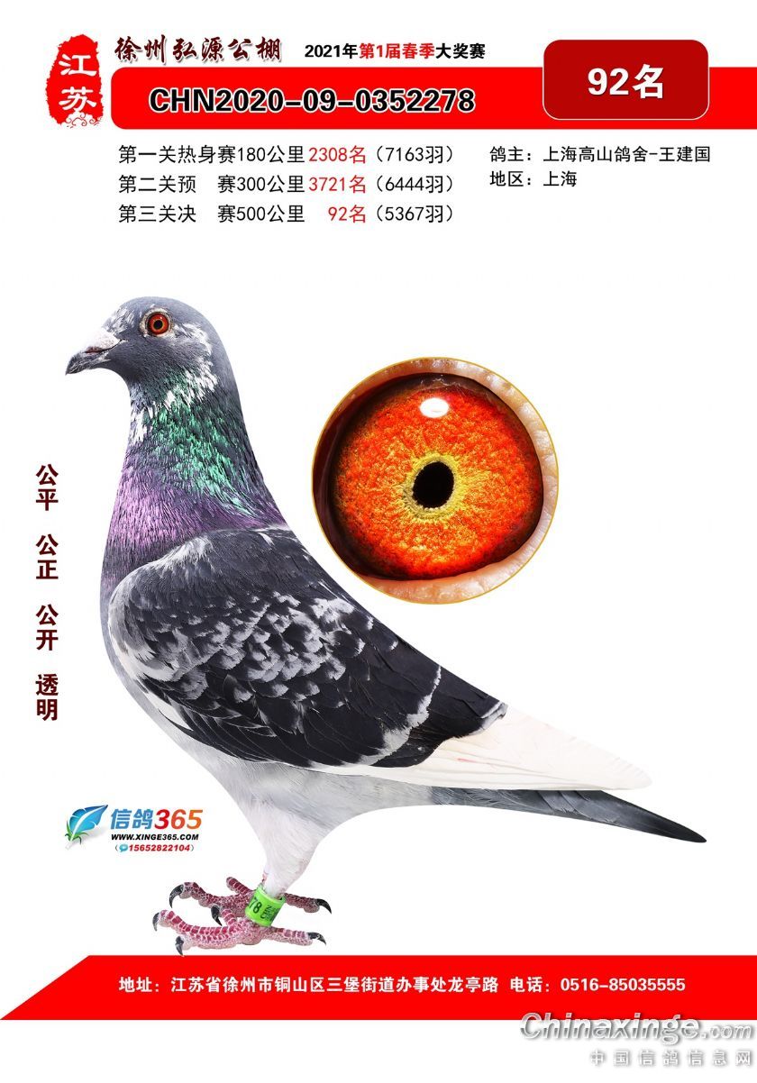作品说明: 徐州弘源春棚2021年决赛获奖鸽76-100名