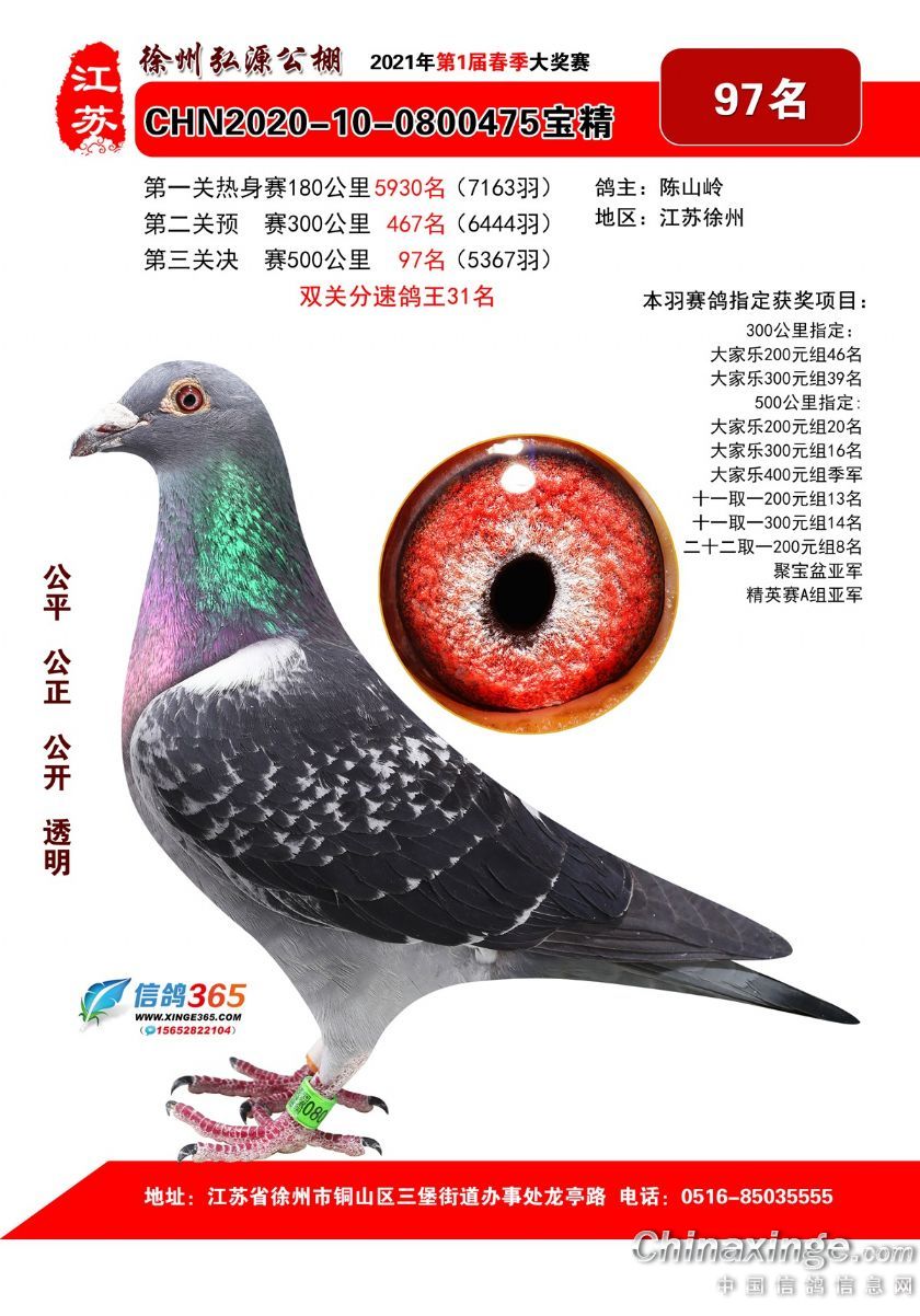 徐州弘源春棚2021年决赛获奖鸽76-100名