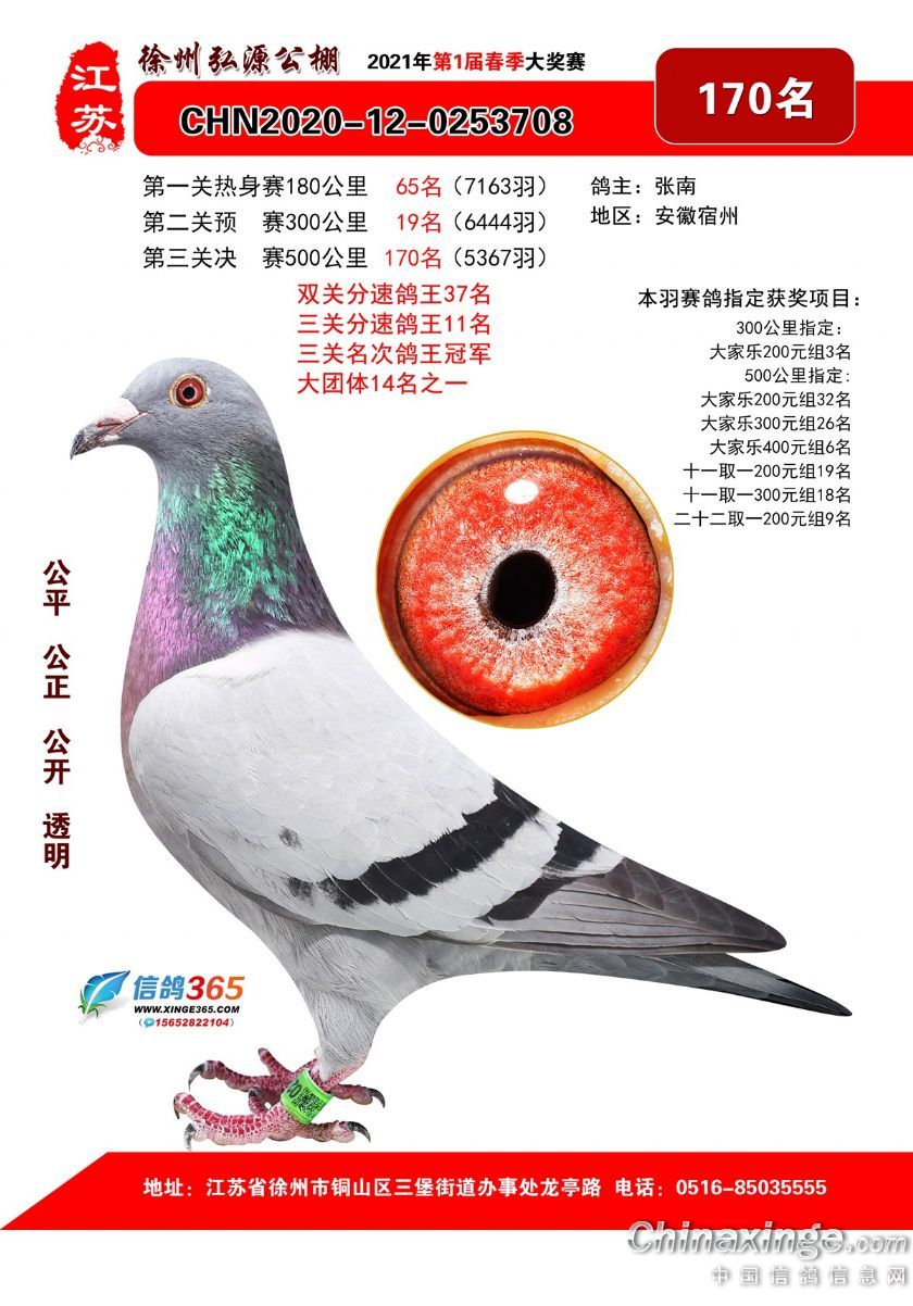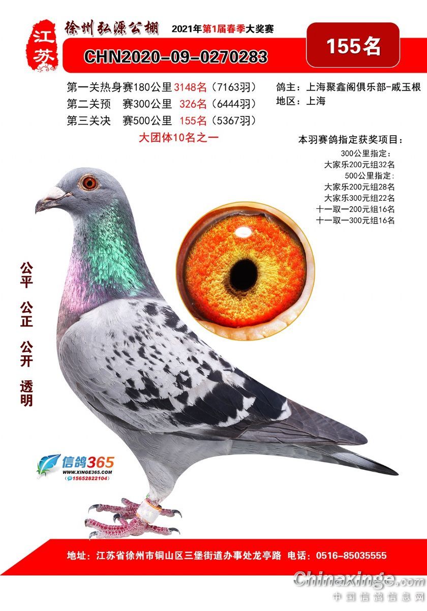 作品说明: 徐州弘源春棚2021年决赛获奖鸽151-175名