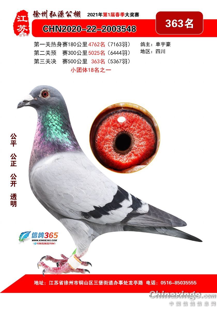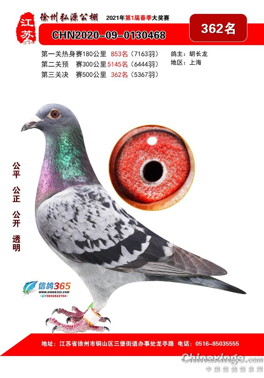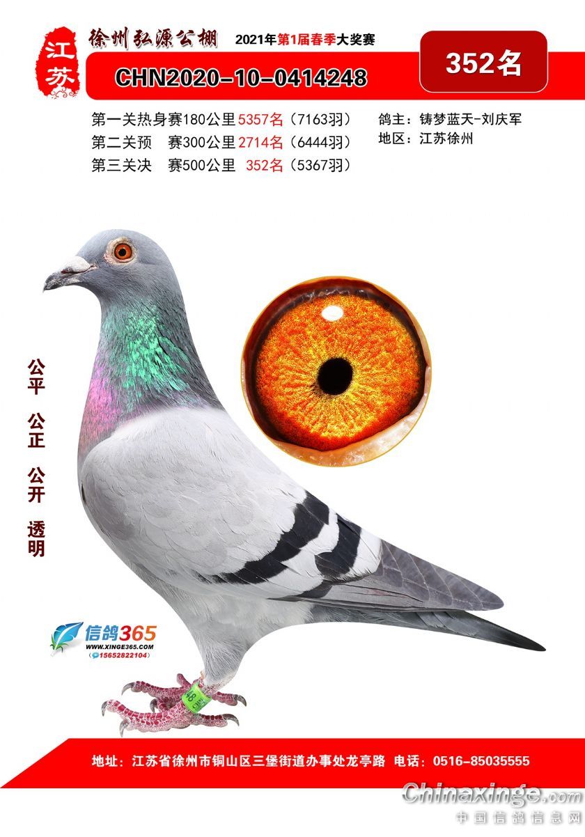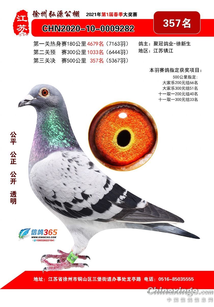 作品说明: 徐州弘源春棚2021年决赛获奖鸽351-375名