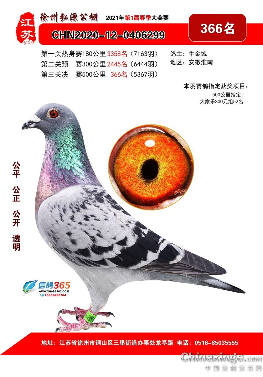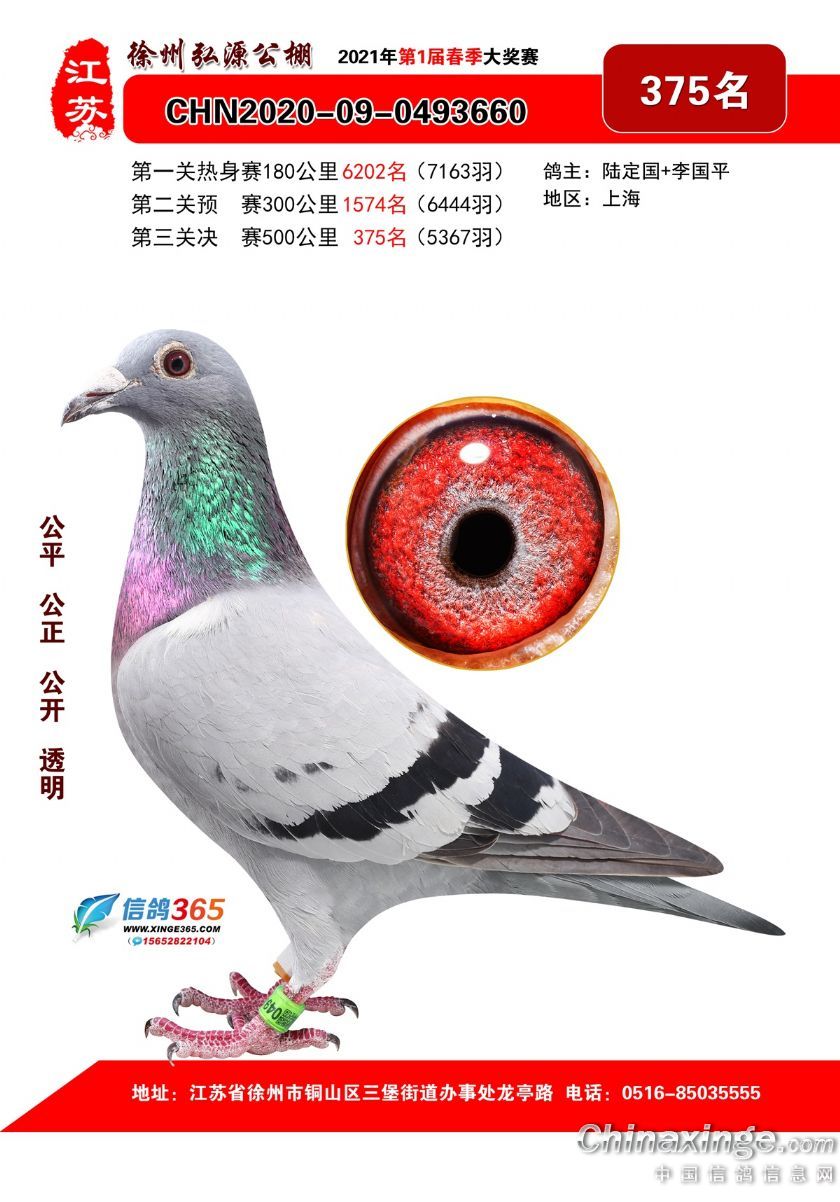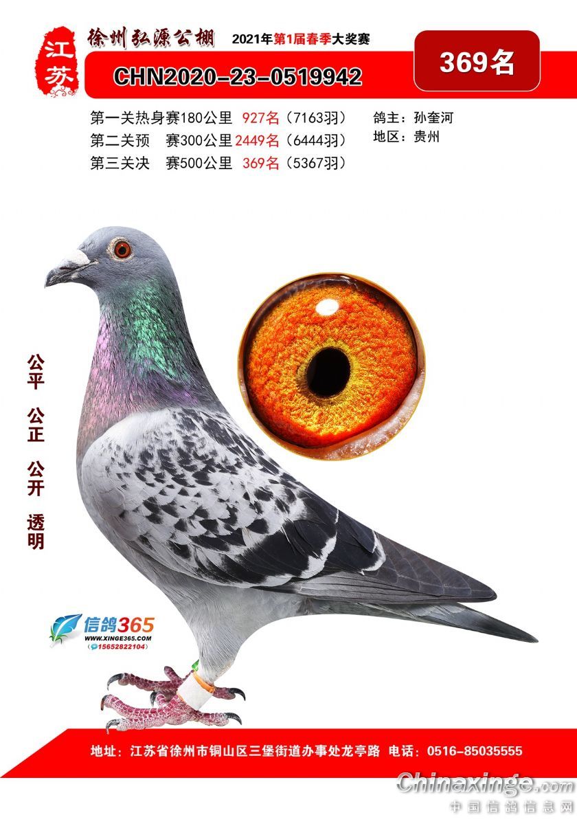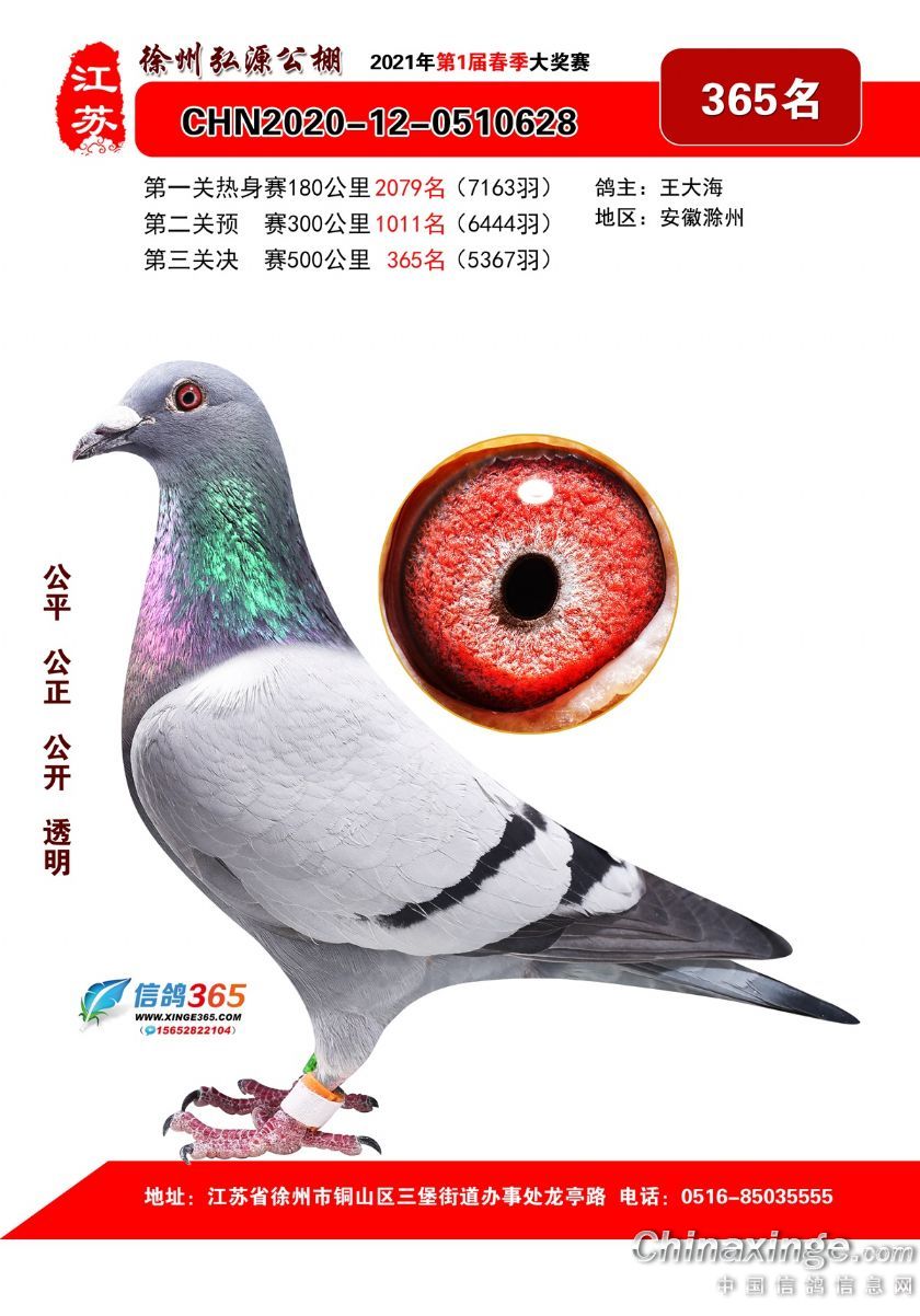 作品说明: 徐州弘源春棚2021年决赛获奖鸽351-375名