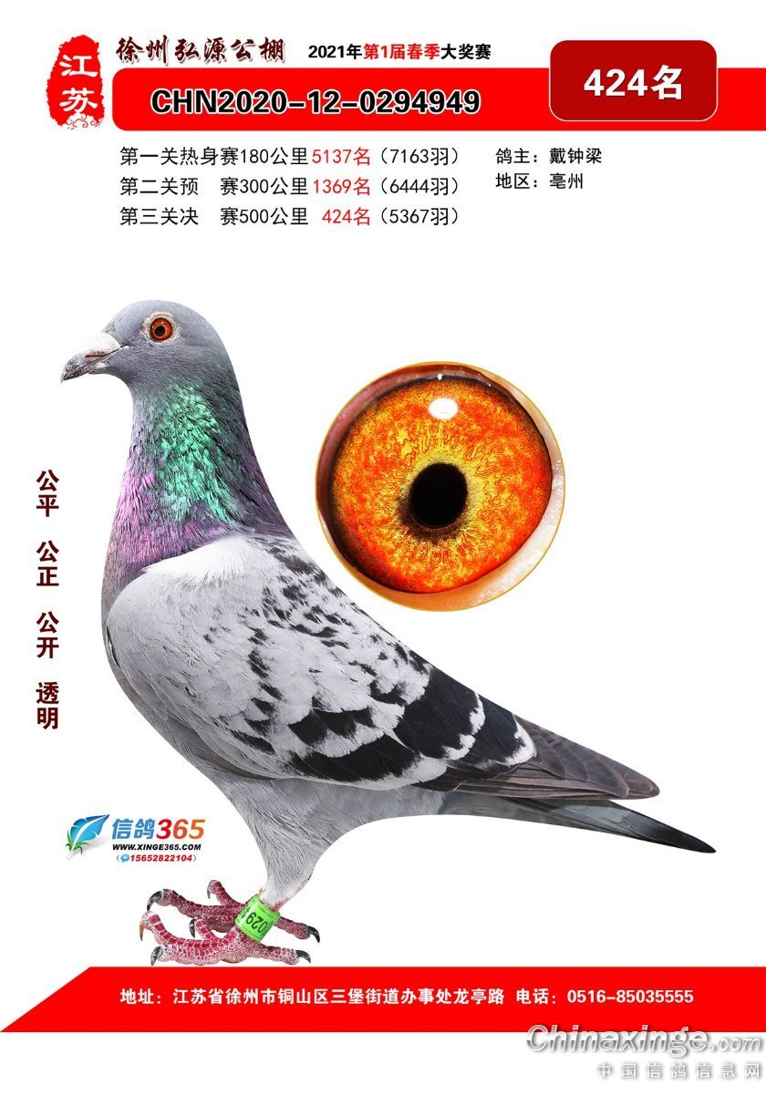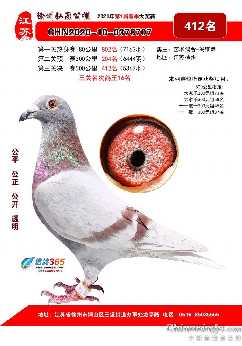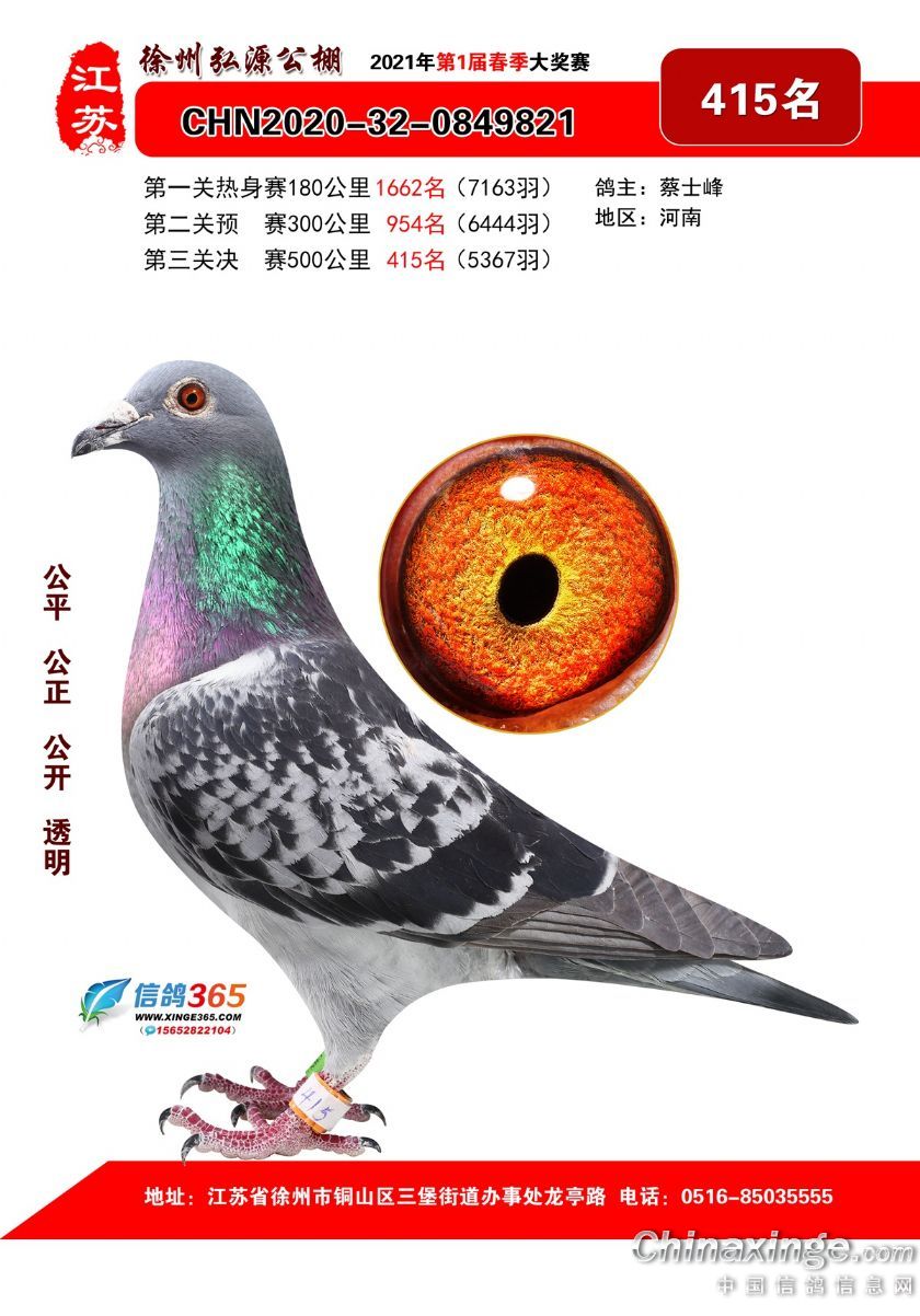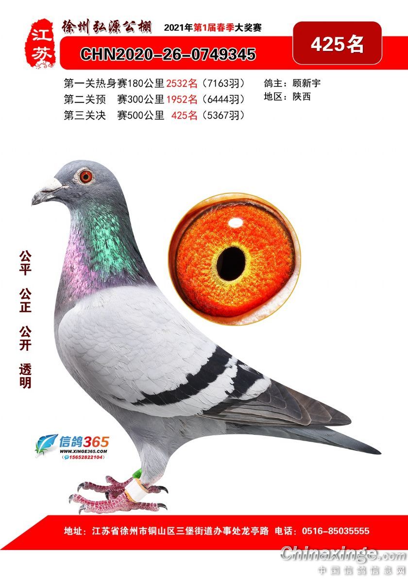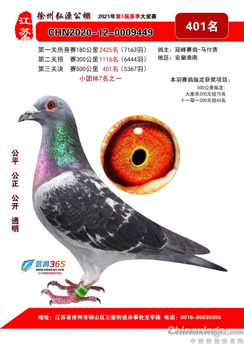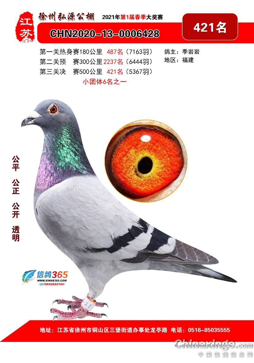 徐州弘源春棚2021年决赛获奖鸽401-425名