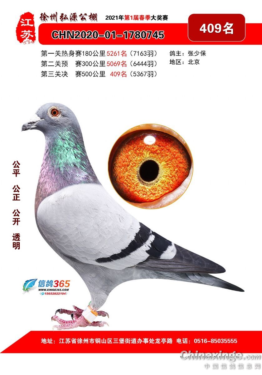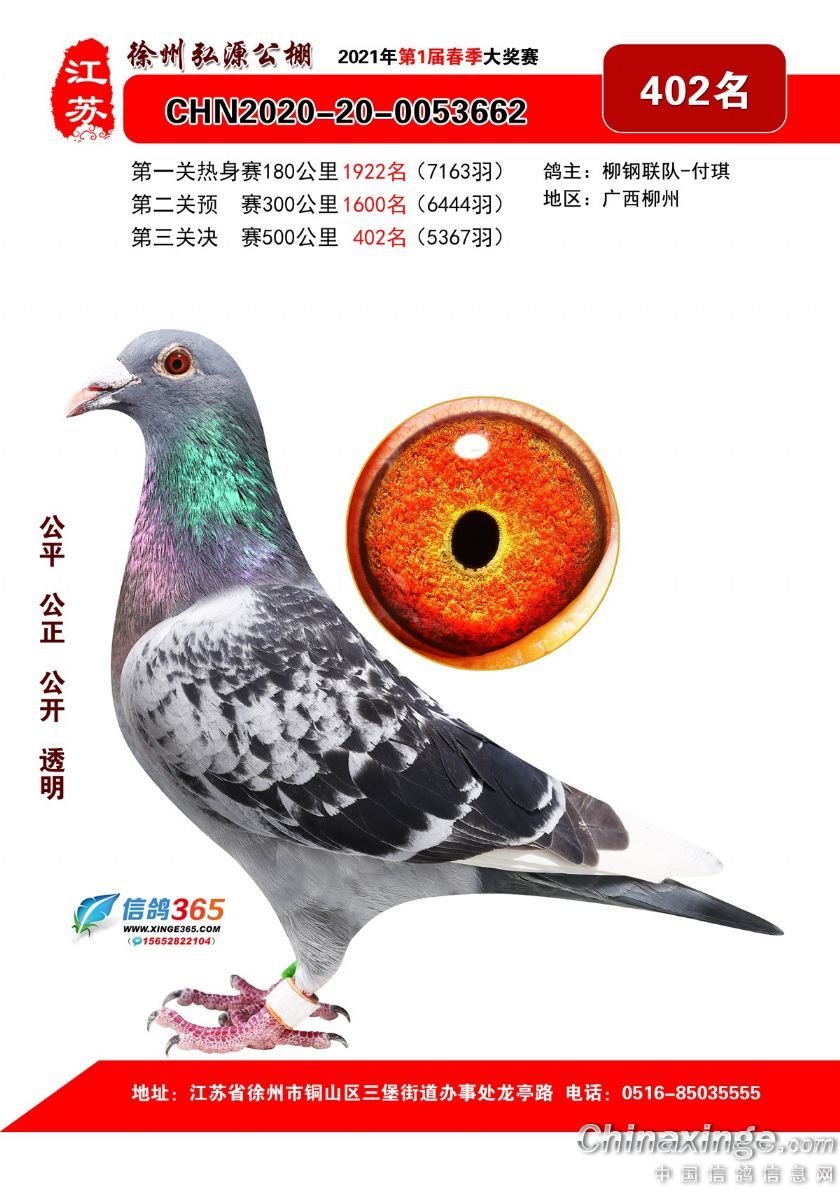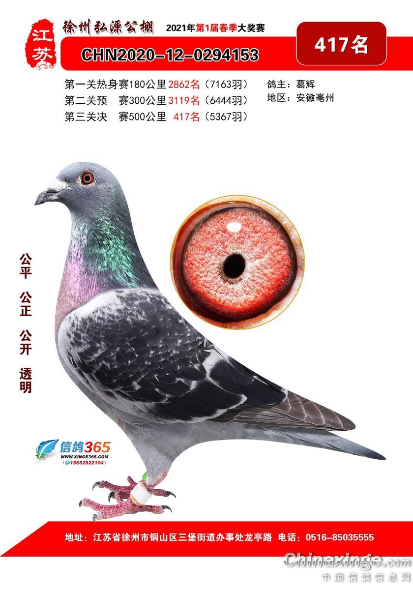 作品说明: 徐州弘源春棚2021年决赛获奖鸽401-425名