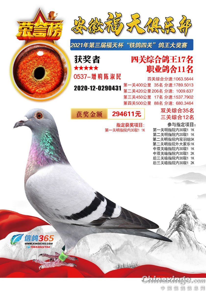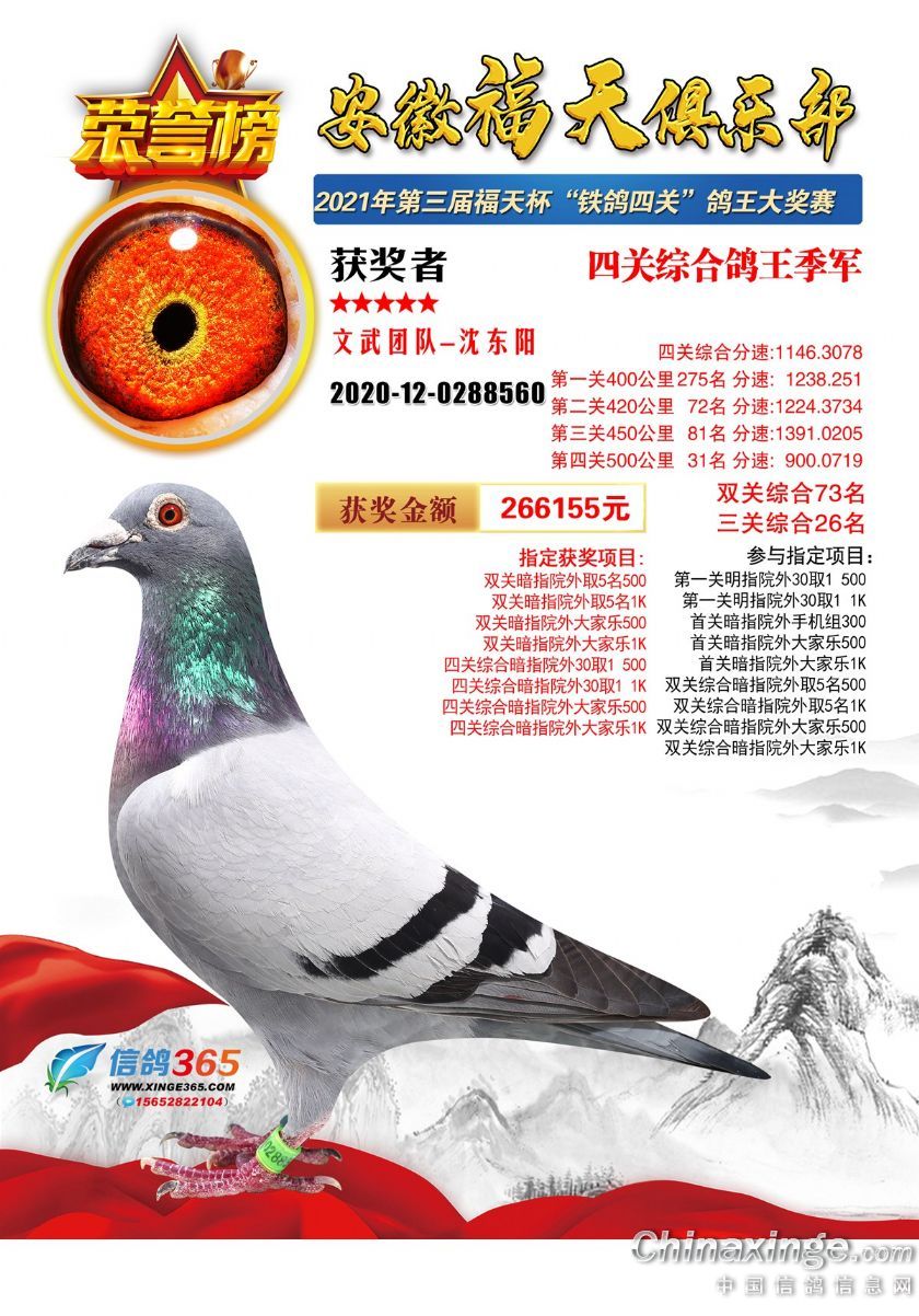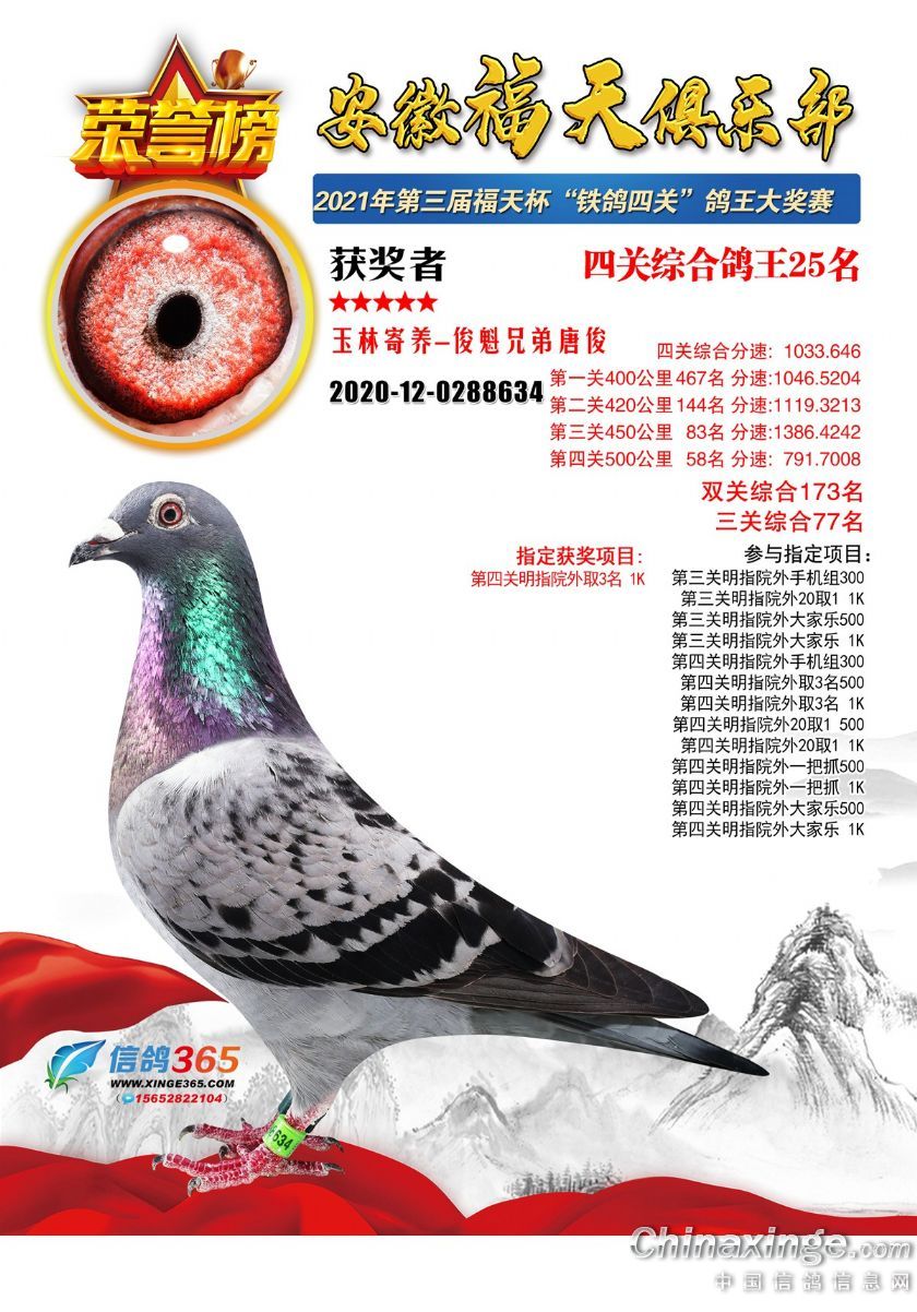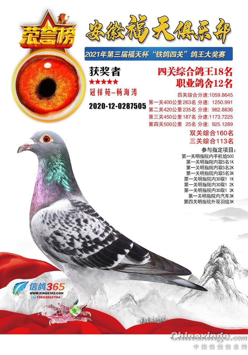 安徽福天俱乐部2021年春四关鸽王欣赏1-30名