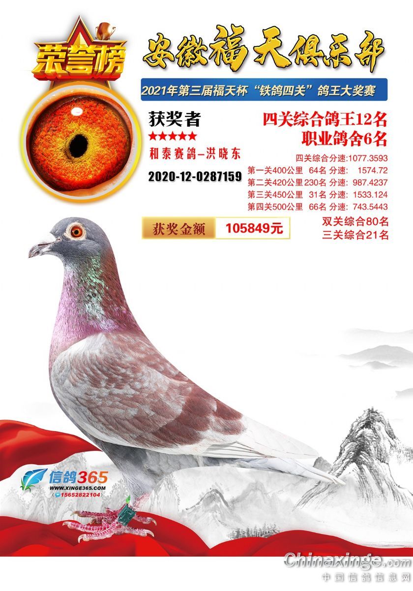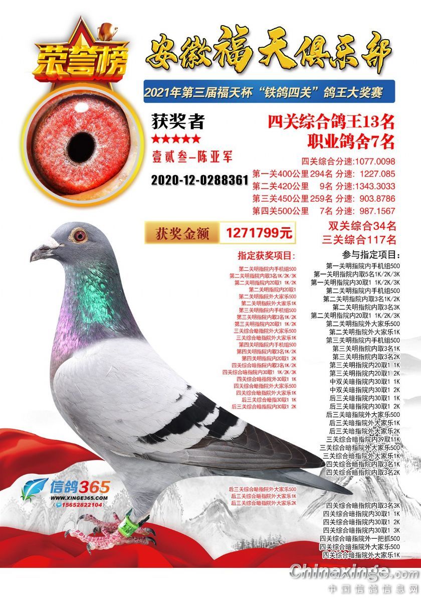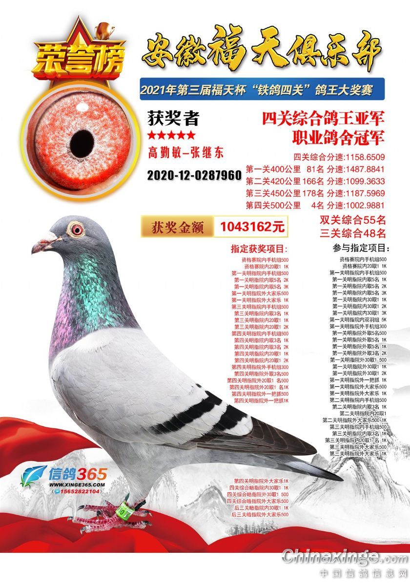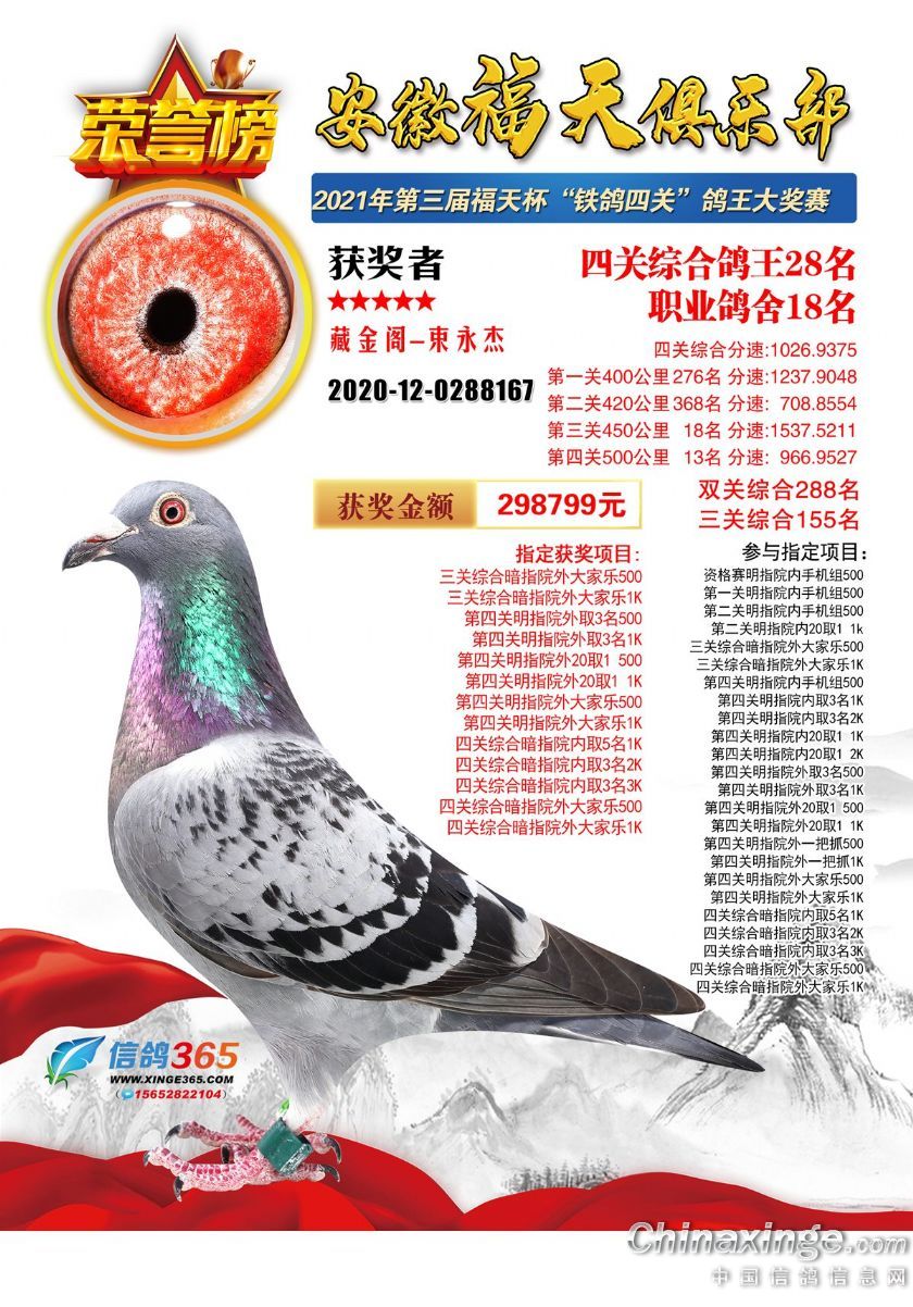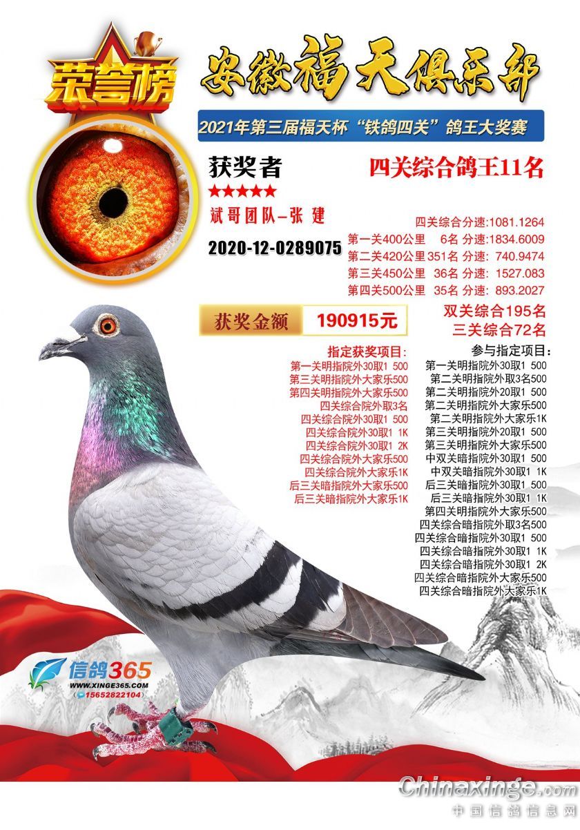 安徽福天俱乐部2021年春四关鸽王欣赏1-30名
