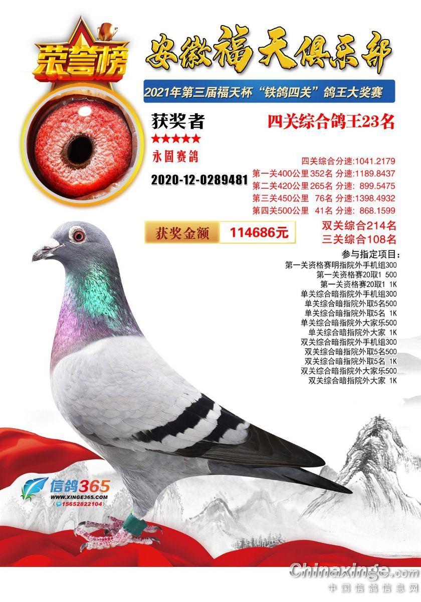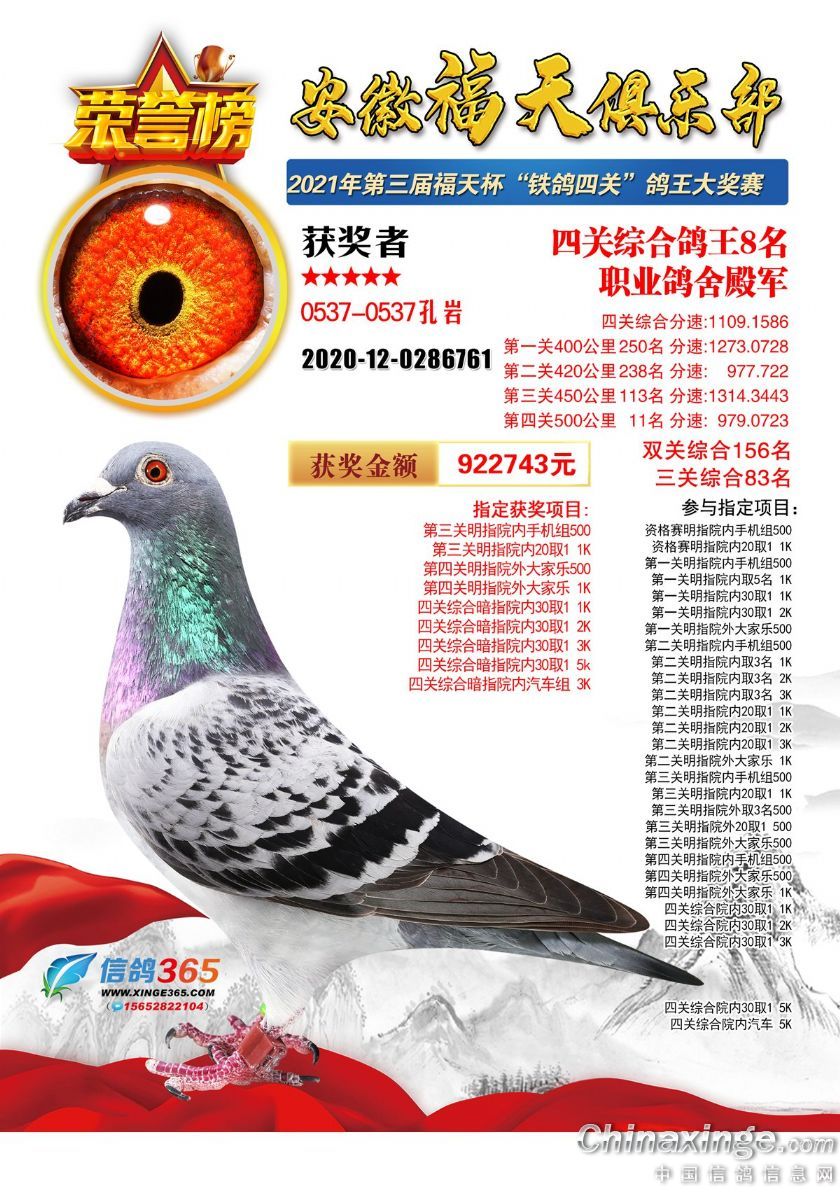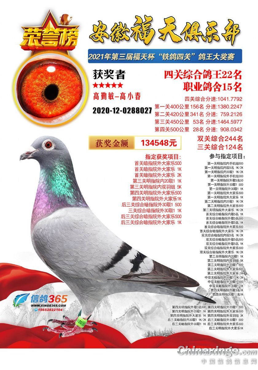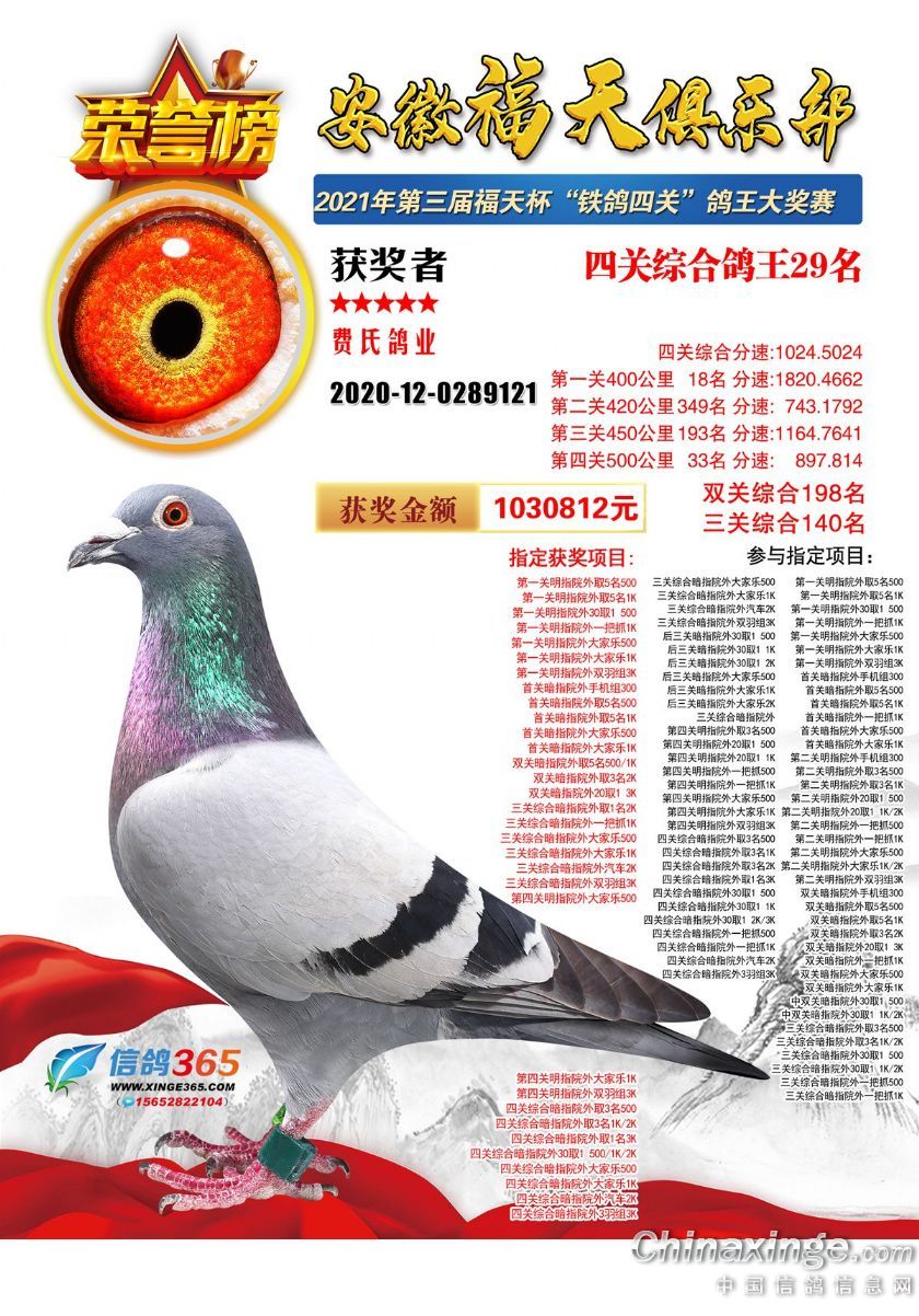 安徽福天俱乐部2021年春四关鸽王欣赏1-30名