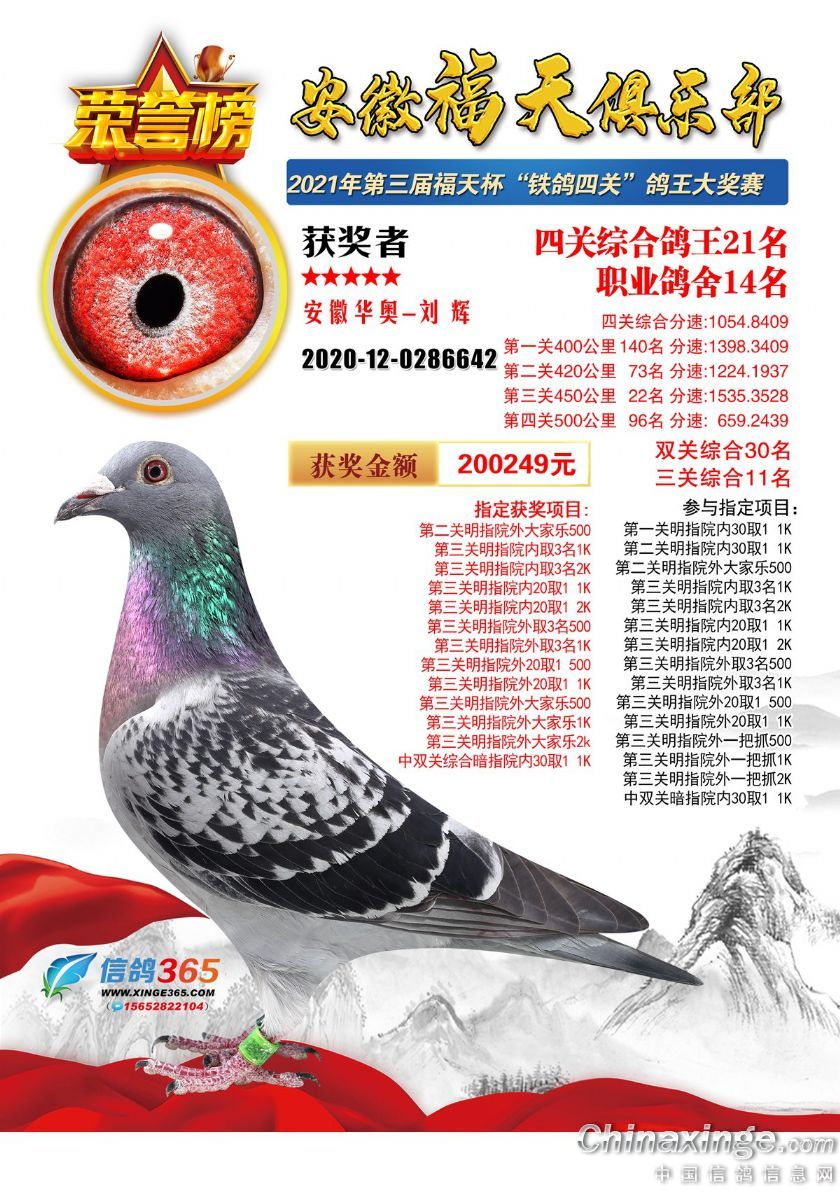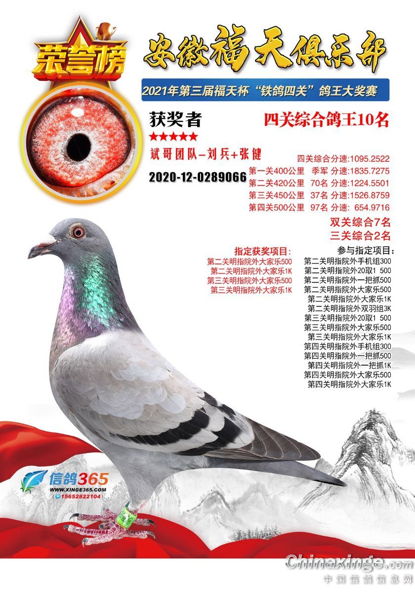 作品说明: 安徽福天俱乐部2021年春四关鸽王欣赏1-30名
