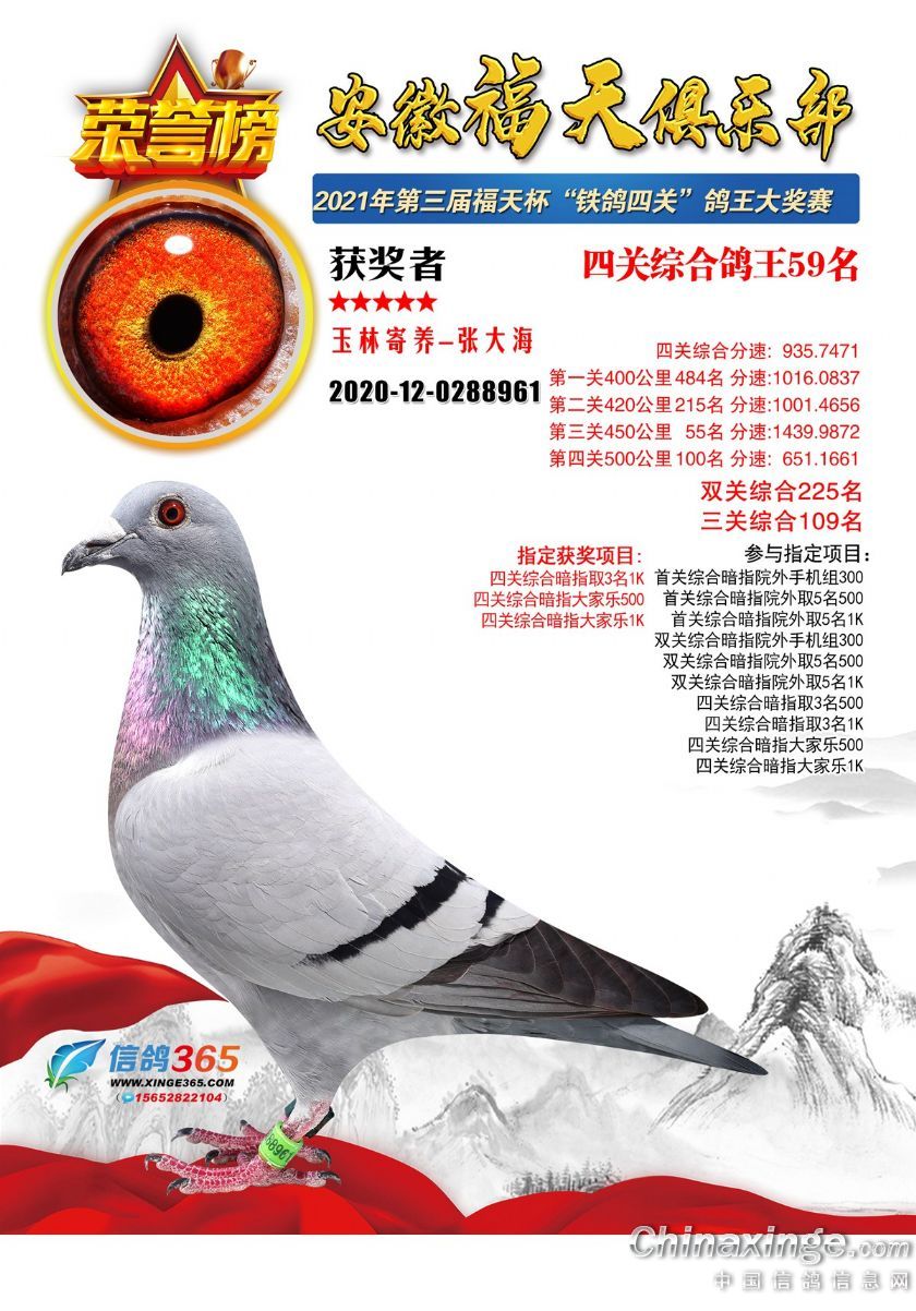 安徽福天俱乐部2021年春四关鸽王欣赏31-60名