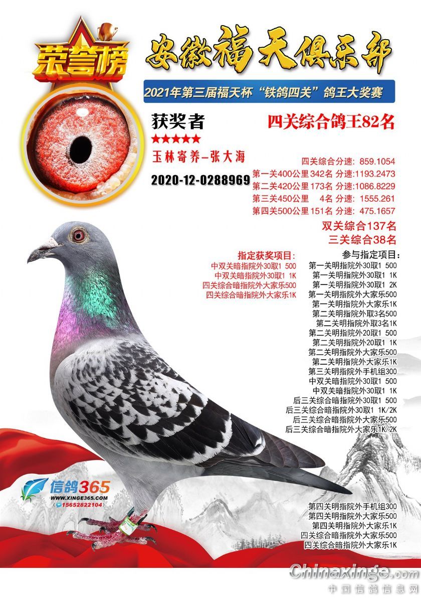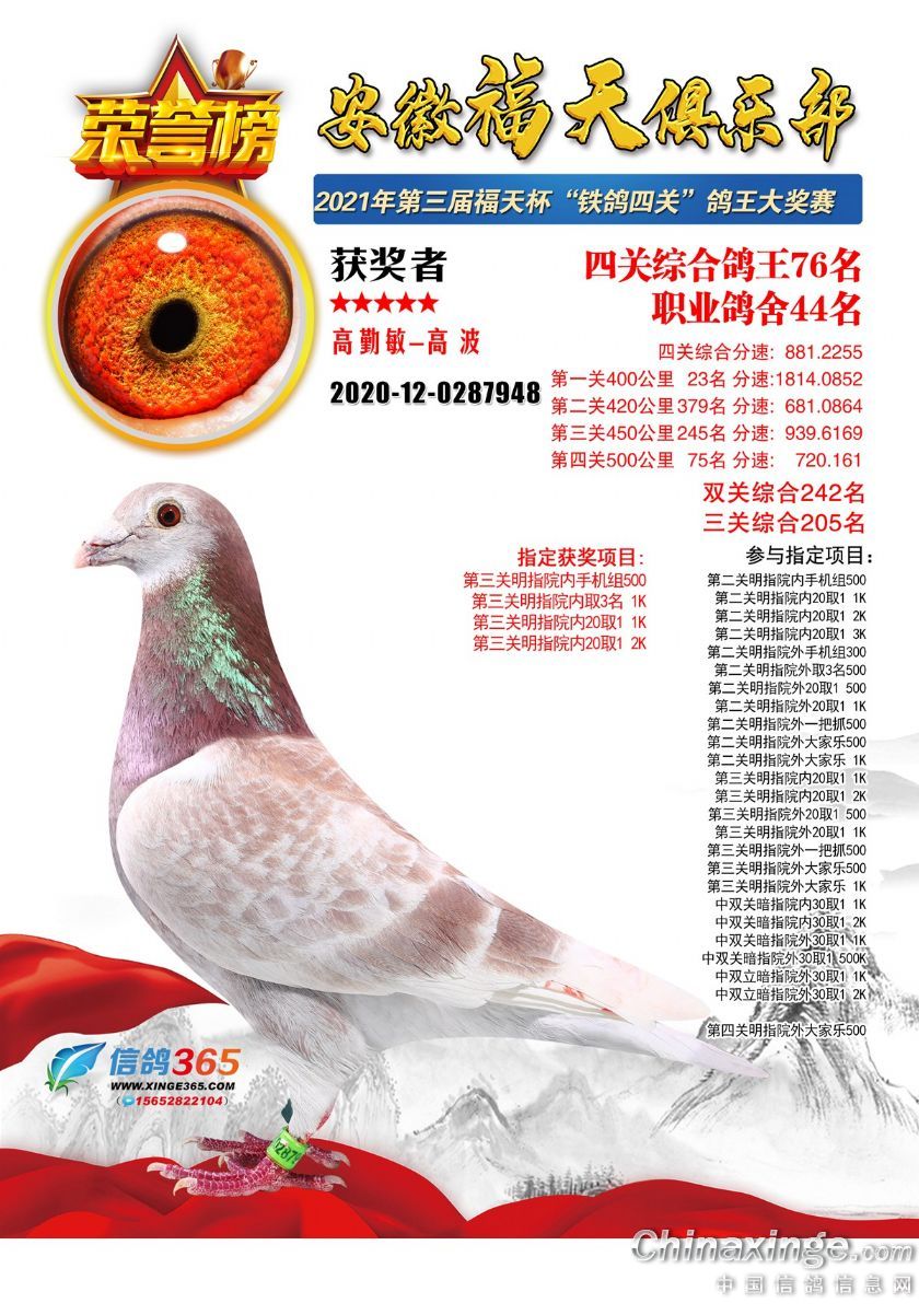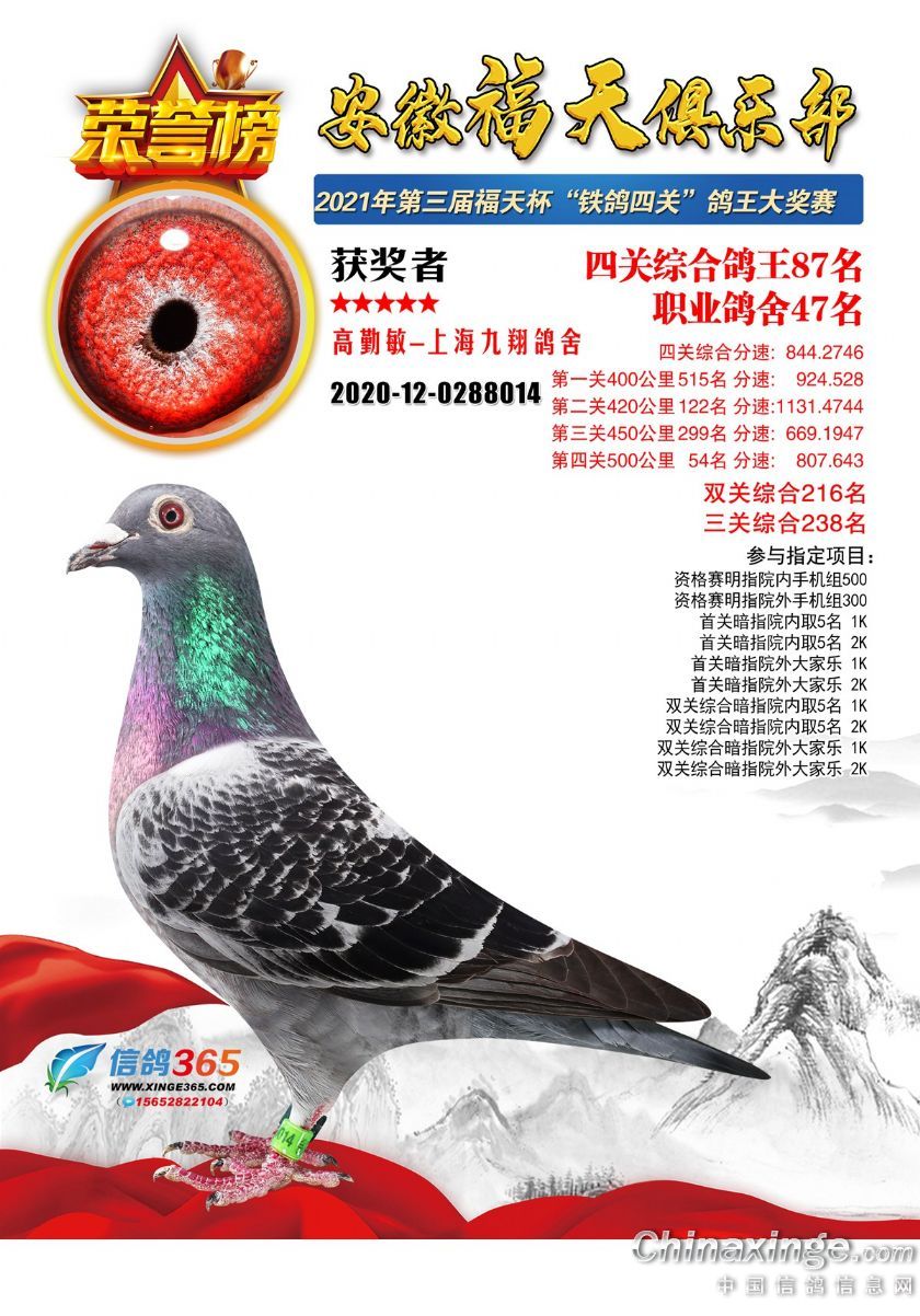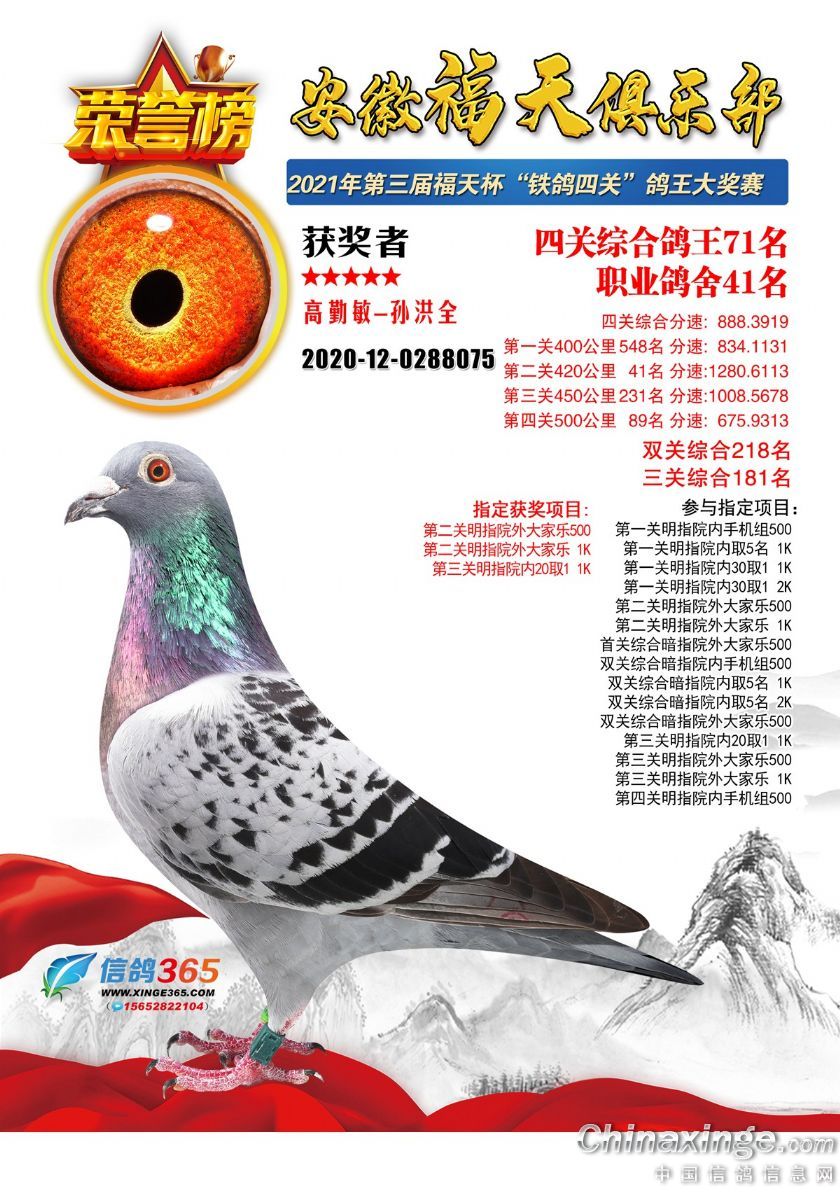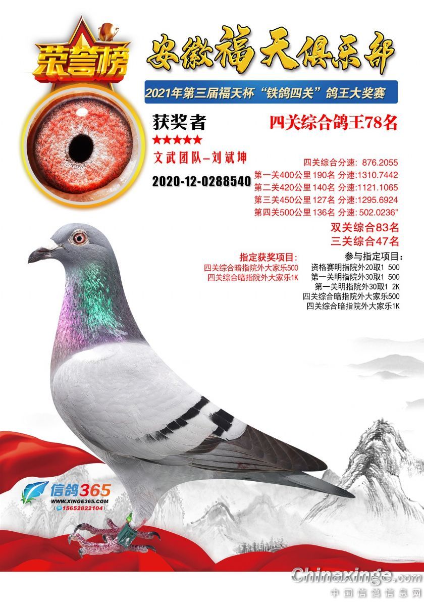作品说明: 安徽福天俱乐部2021年春四关鸽王欣赏61-90名