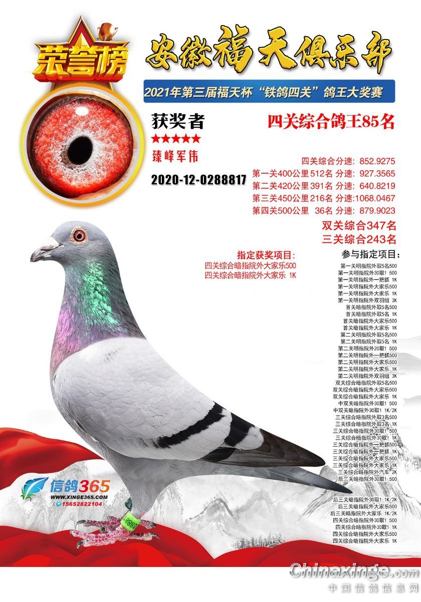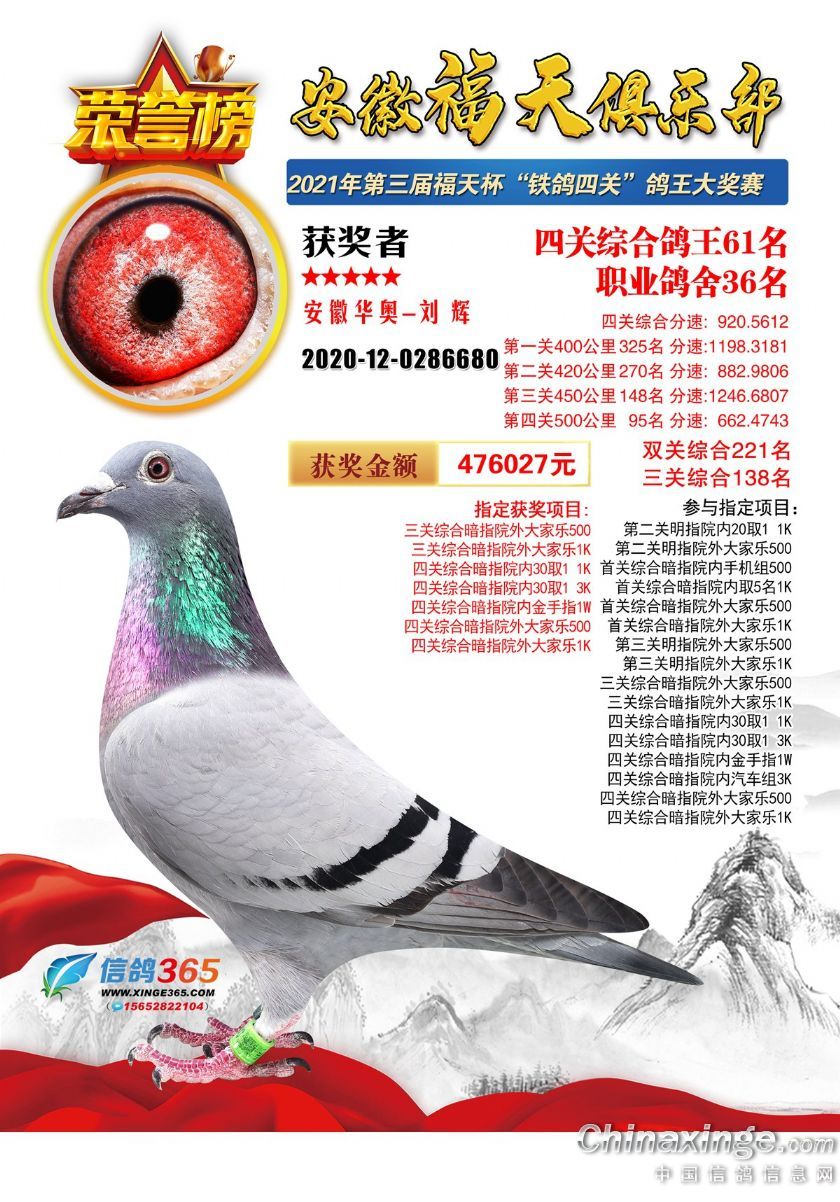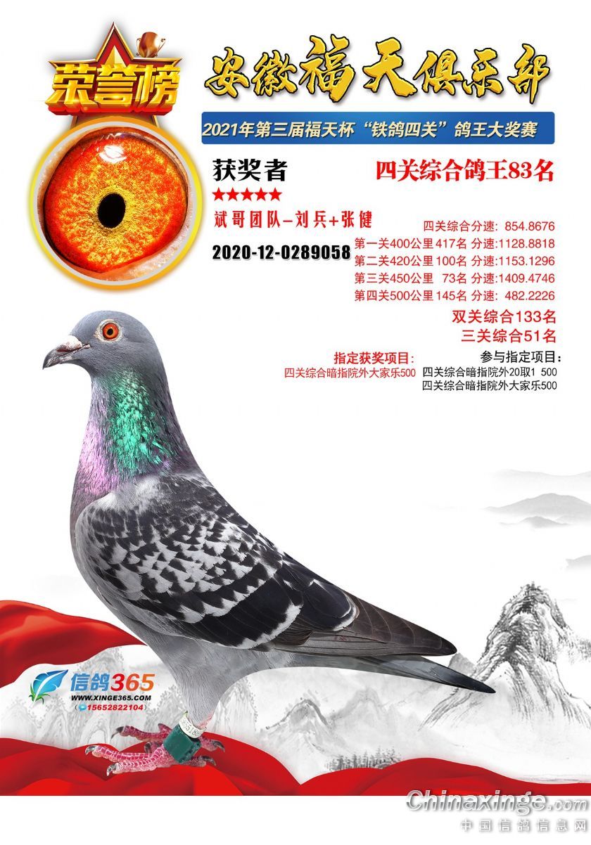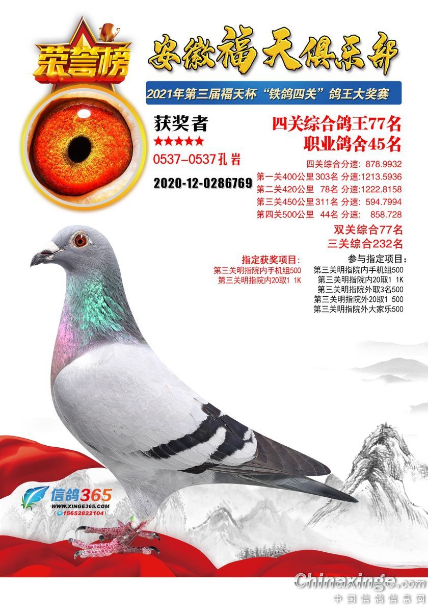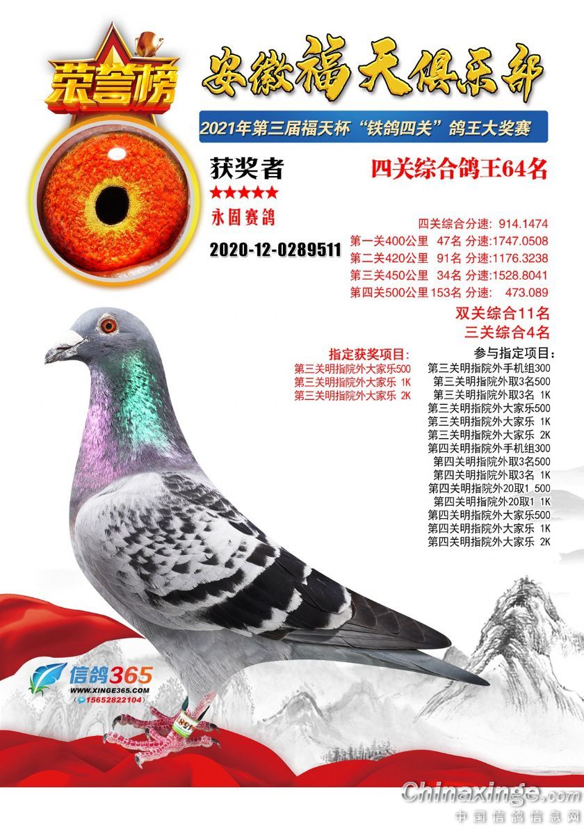作品说明: 安徽福天俱乐部2021年春四关鸽王欣赏61-90名