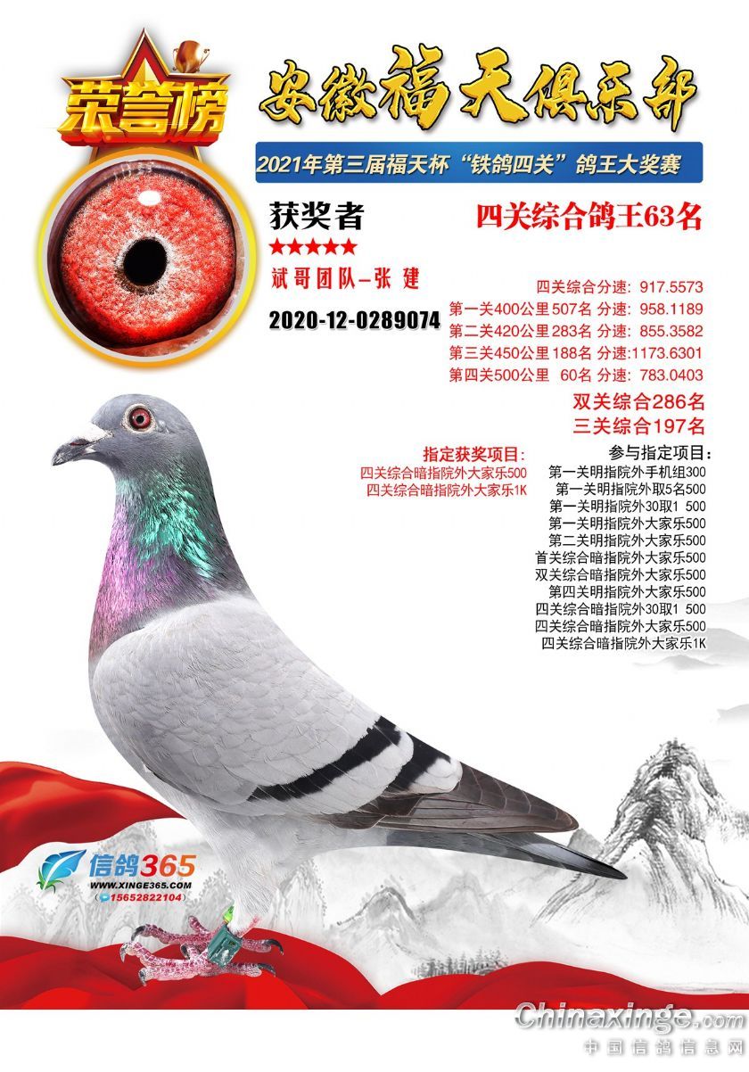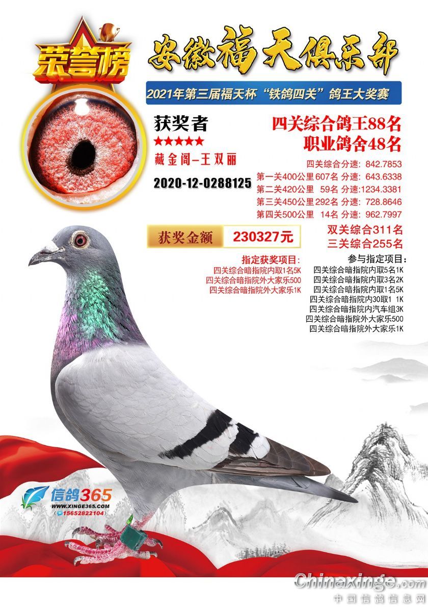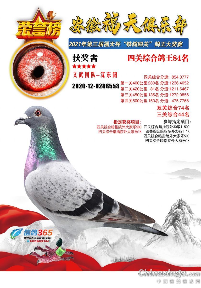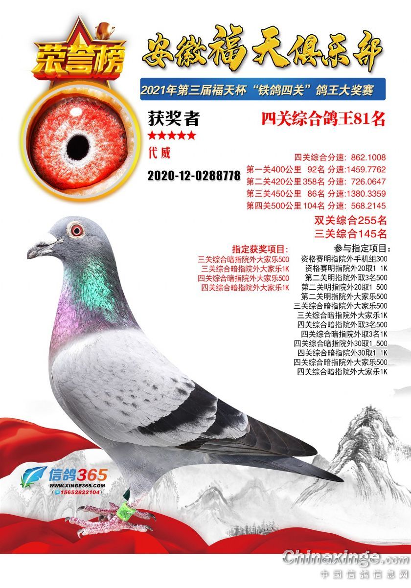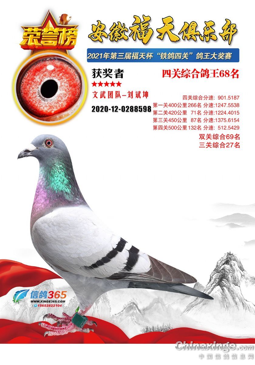 作品说明: 安徽福天俱乐部2021年春四关鸽王欣赏61-90名
