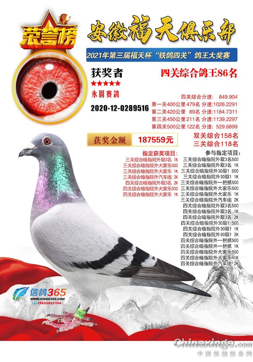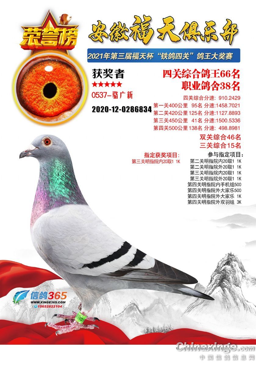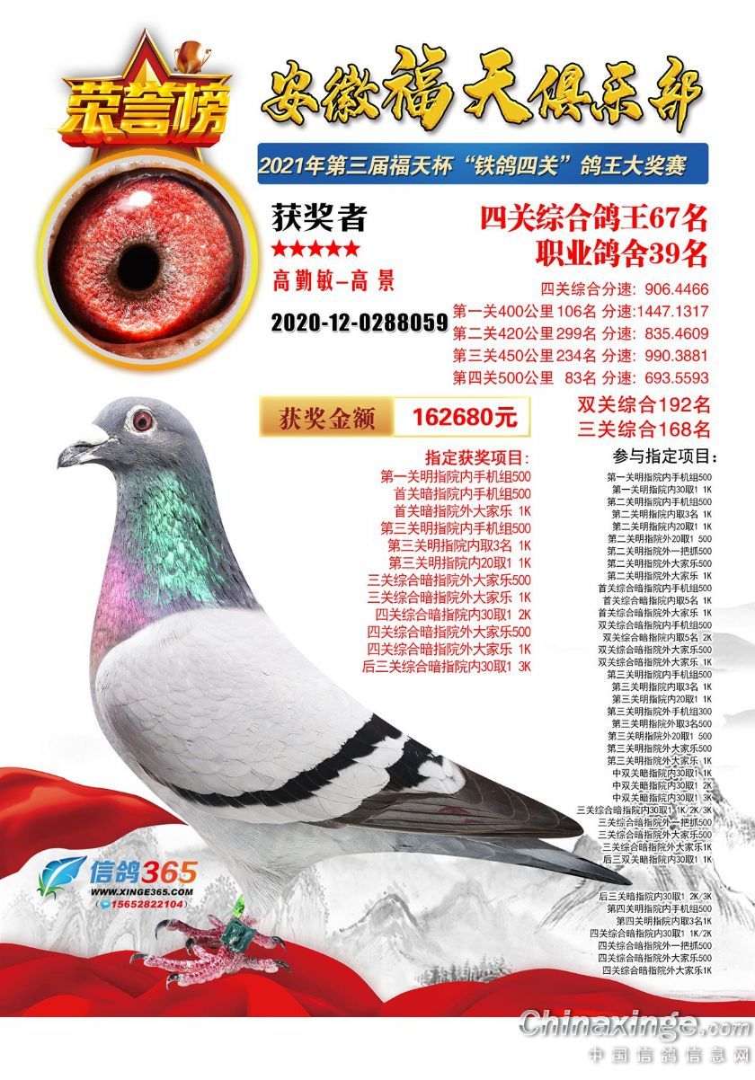 安徽福天俱乐部2021年春四关鸽王欣赏61-90名