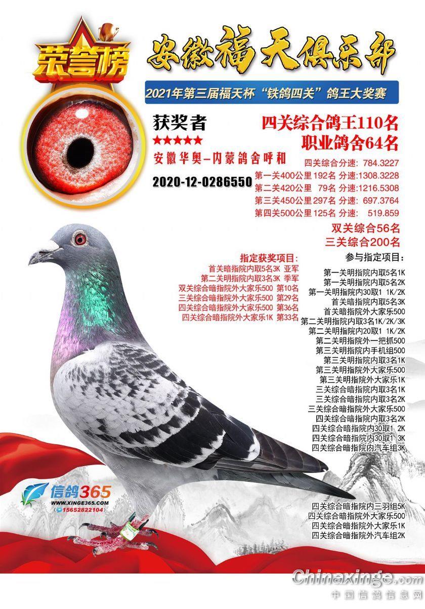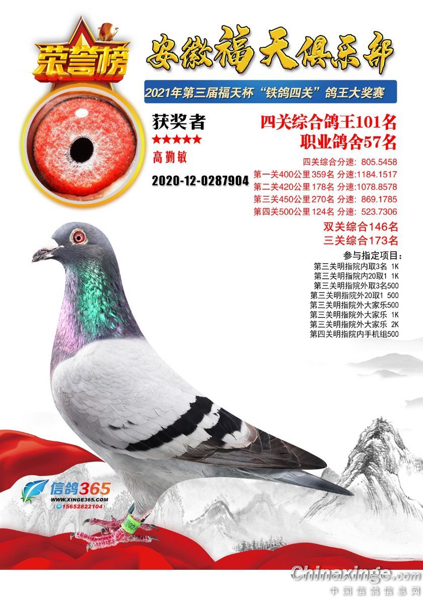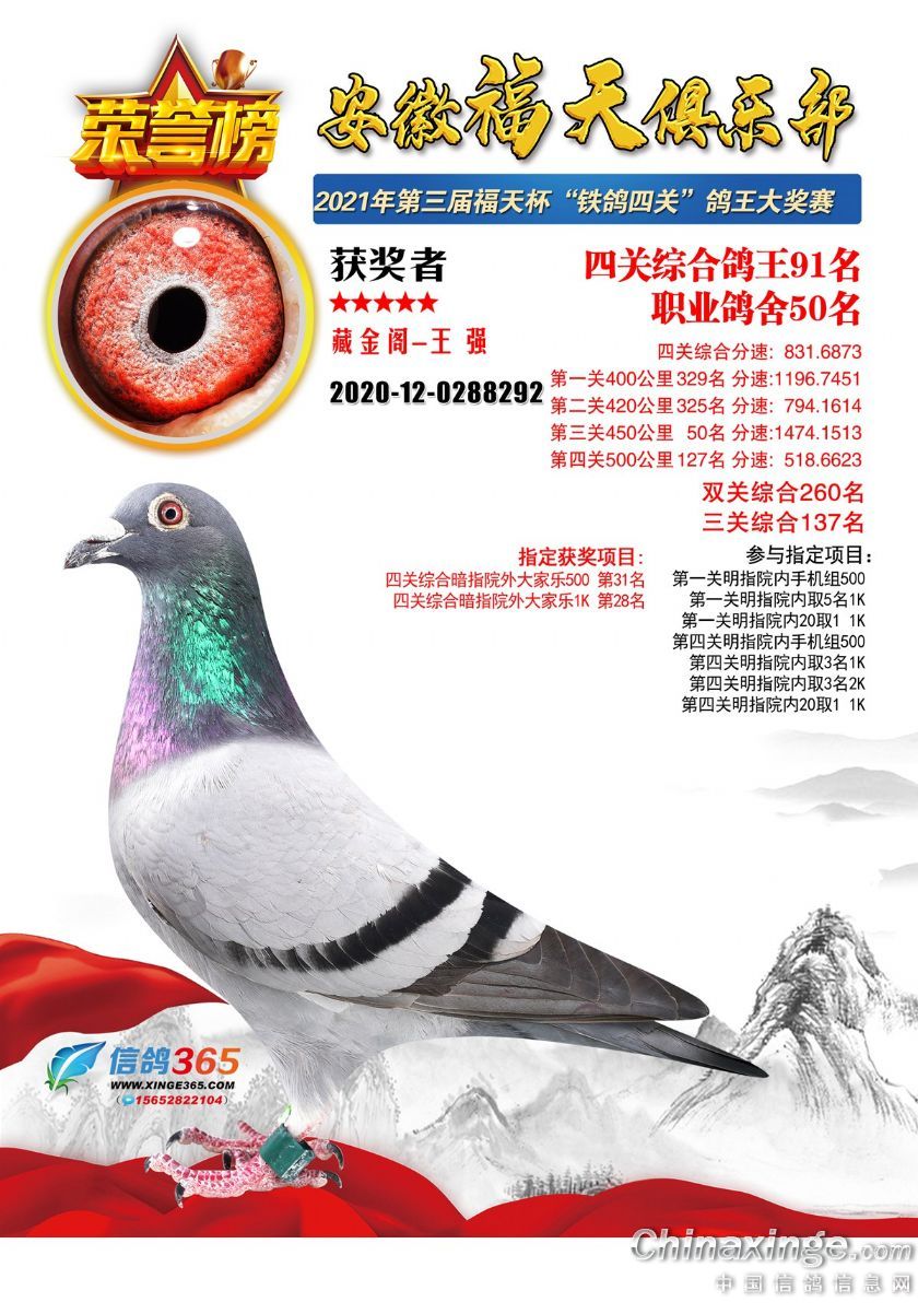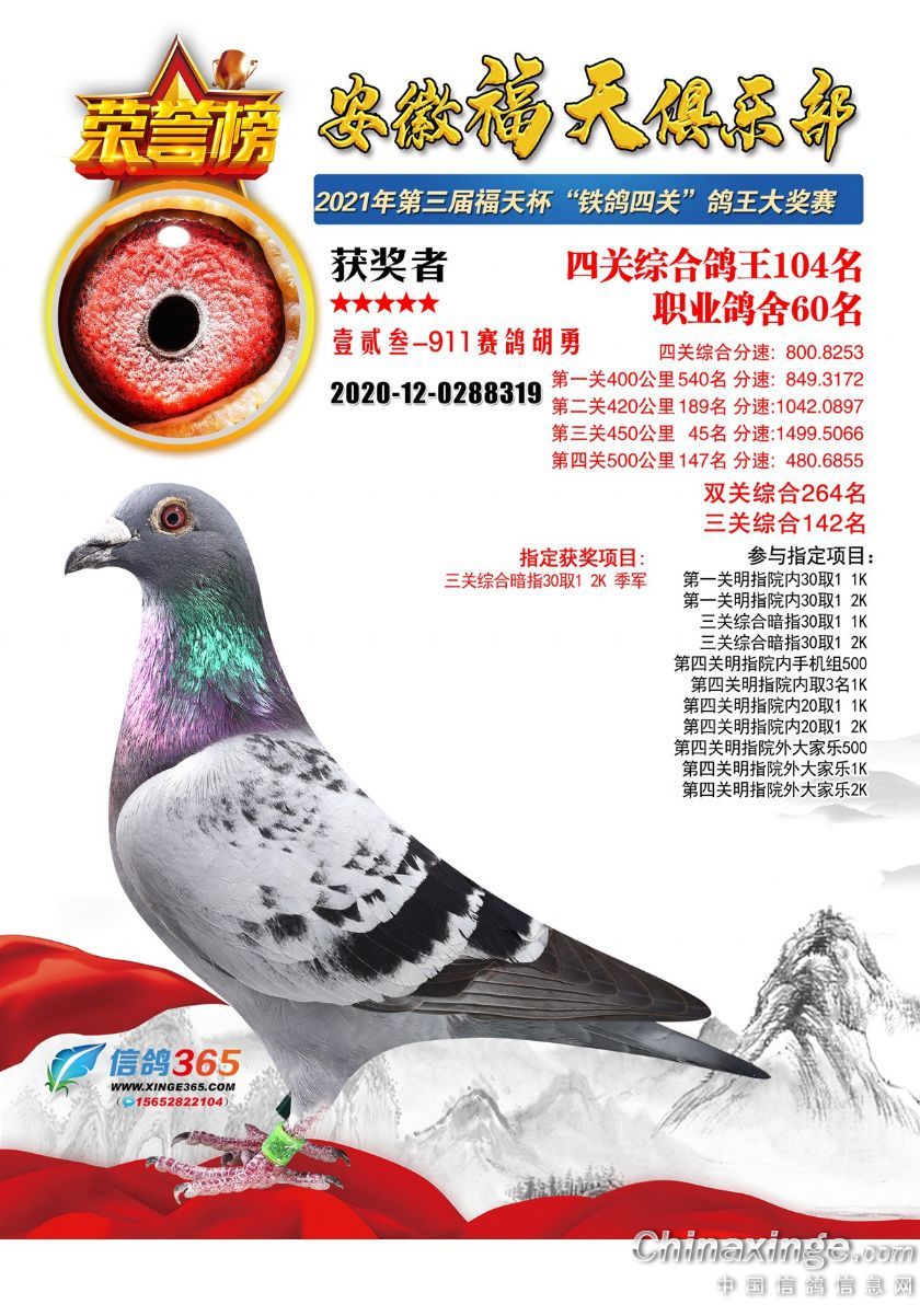 安徽福天俱乐部2021年春四关鸽王欣赏91-120名