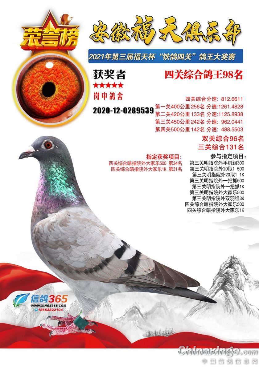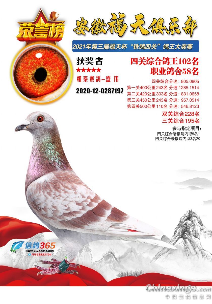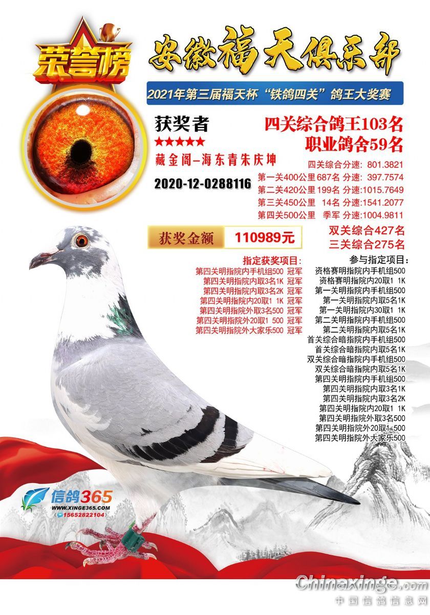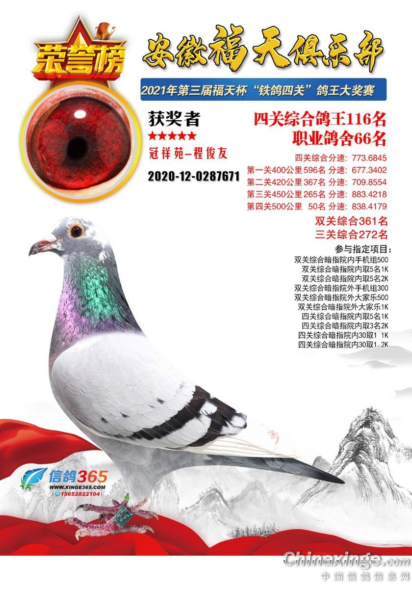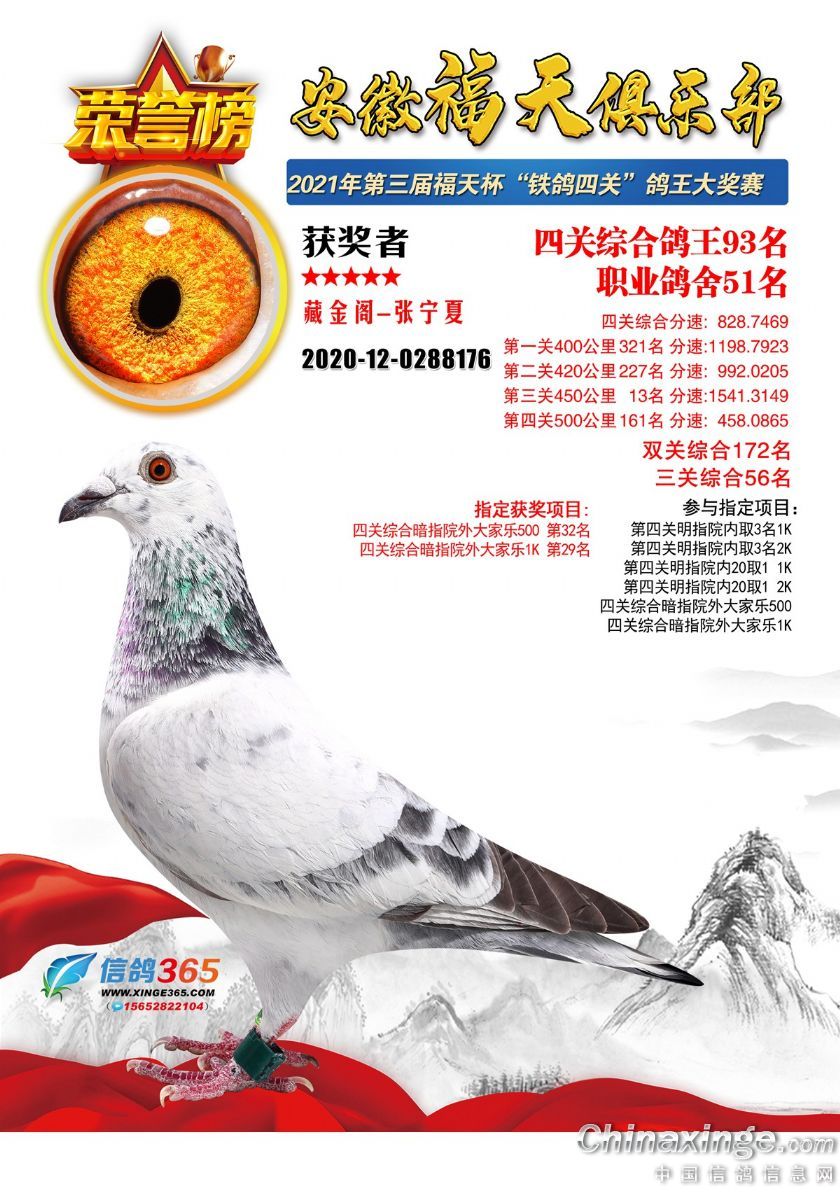 安徽福天俱乐部2021年春四关鸽王欣赏91-120名