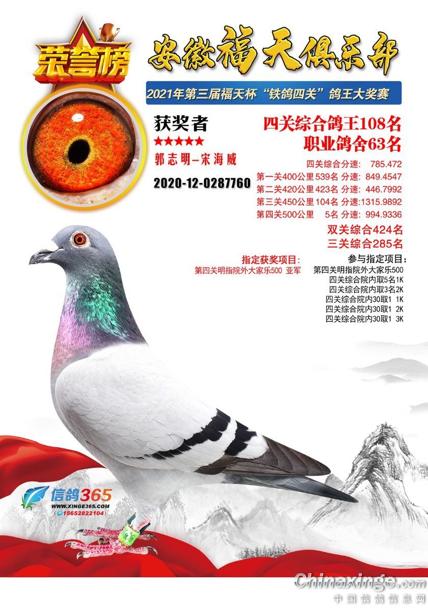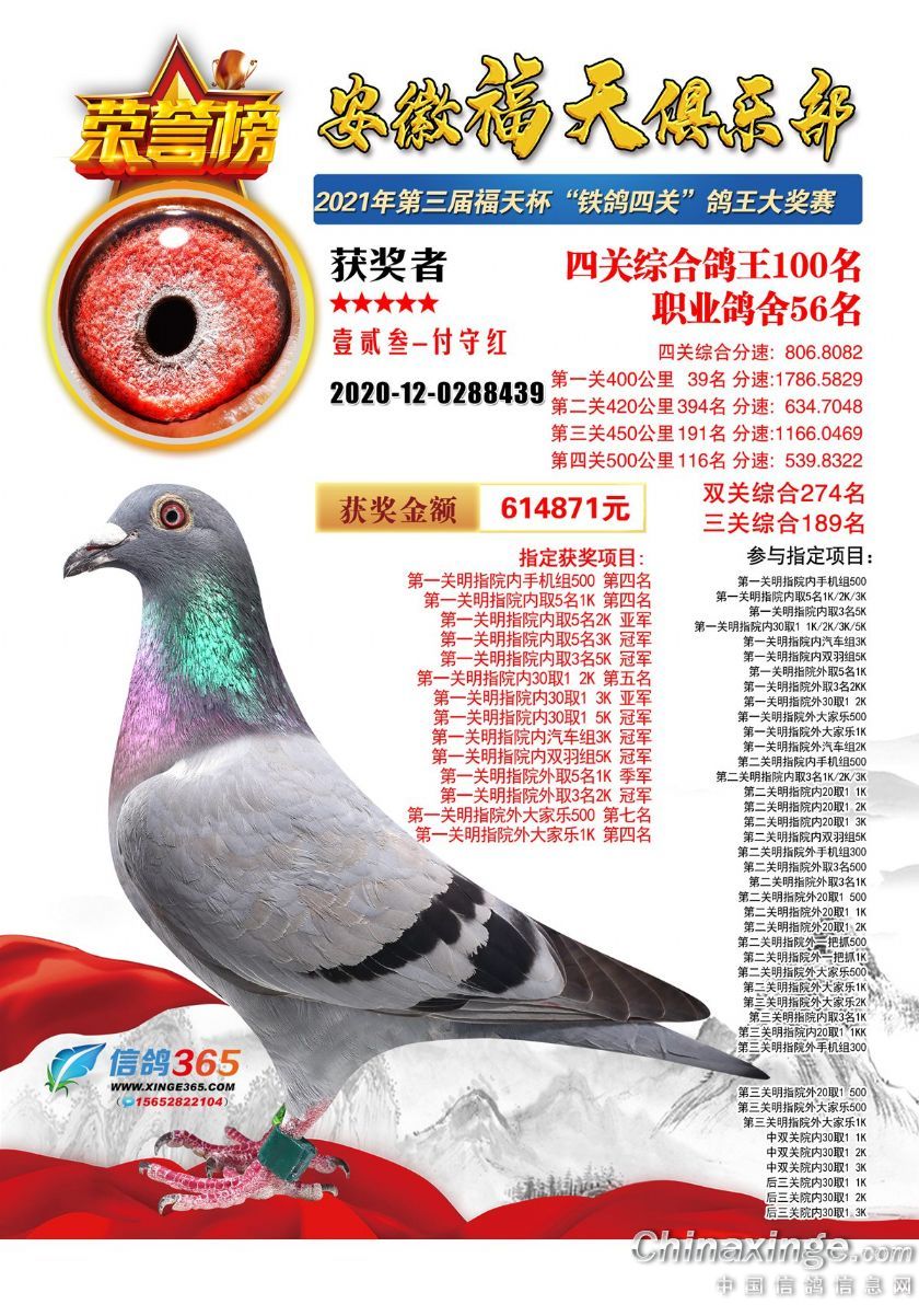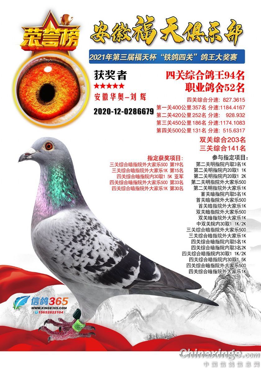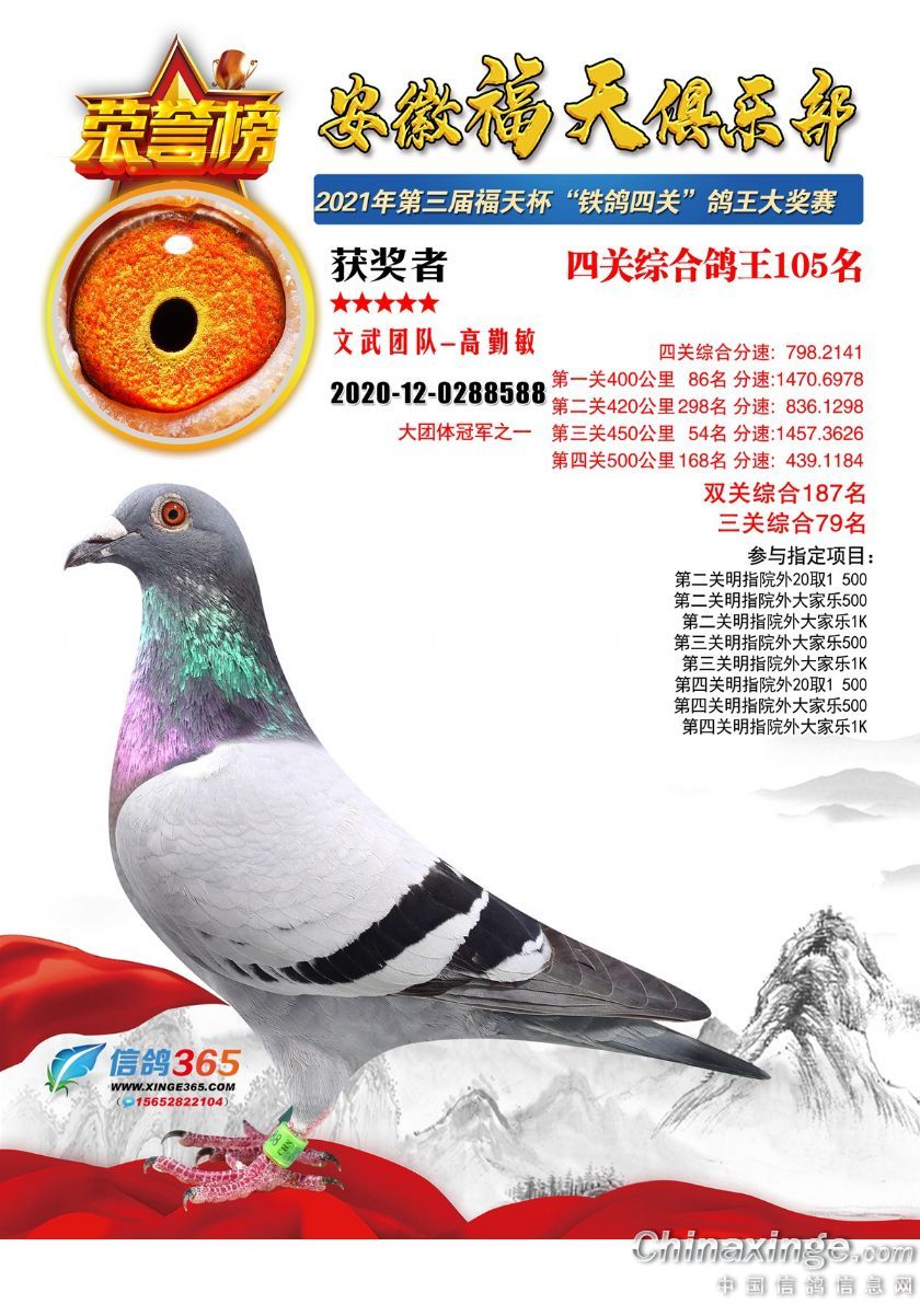 安徽福天俱乐部2021年春四关鸽王欣赏91-120名