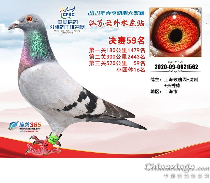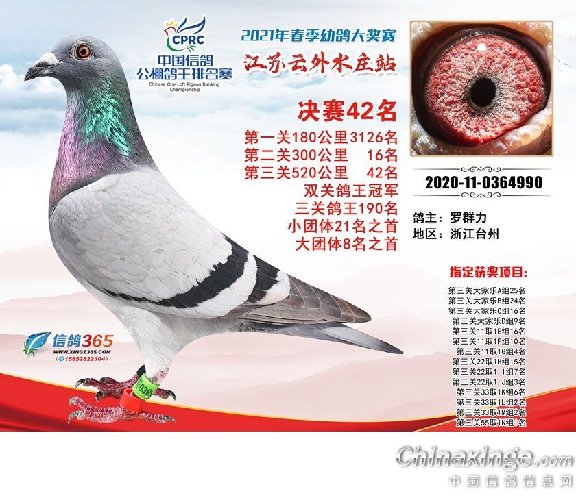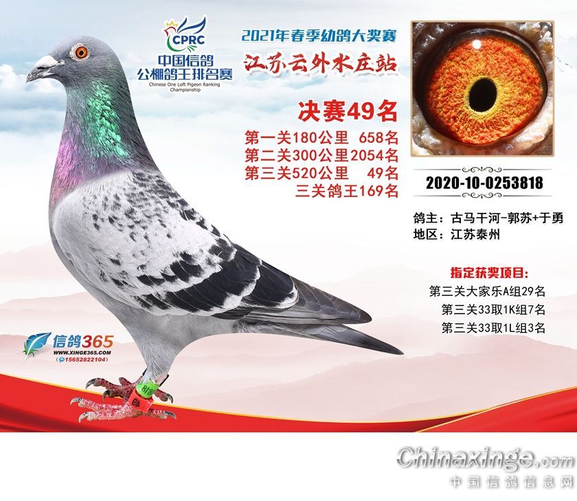 作品说明: 江苏云外水庄赛鸽中心2021年获奖鸽31-60名