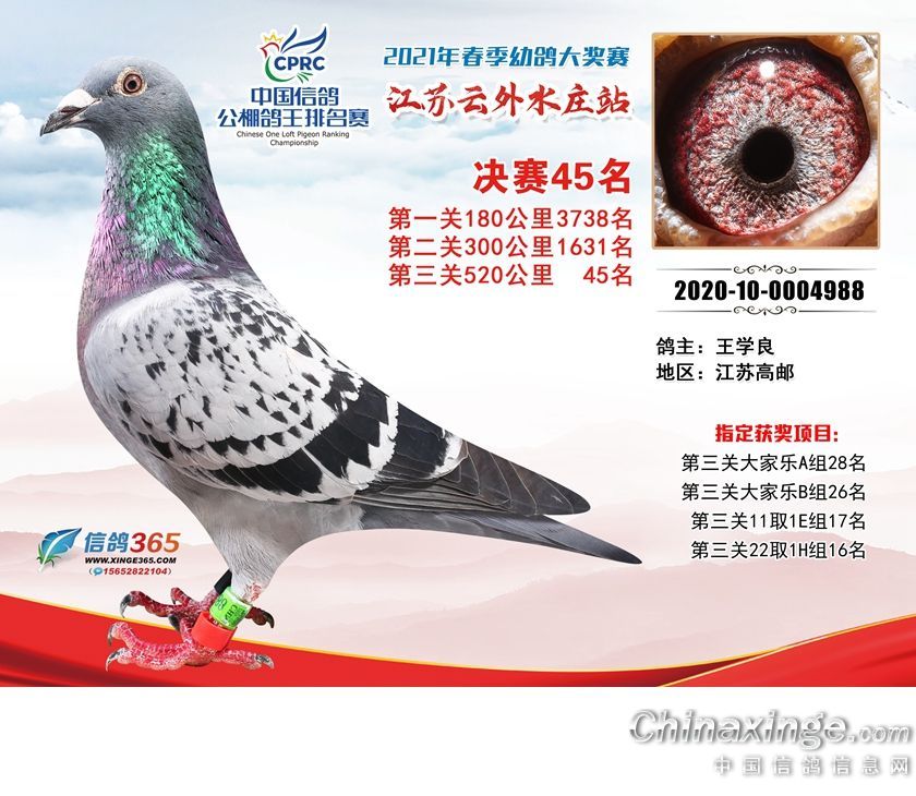 江苏云外水庄赛鸽中心2021年获奖鸽31-60名